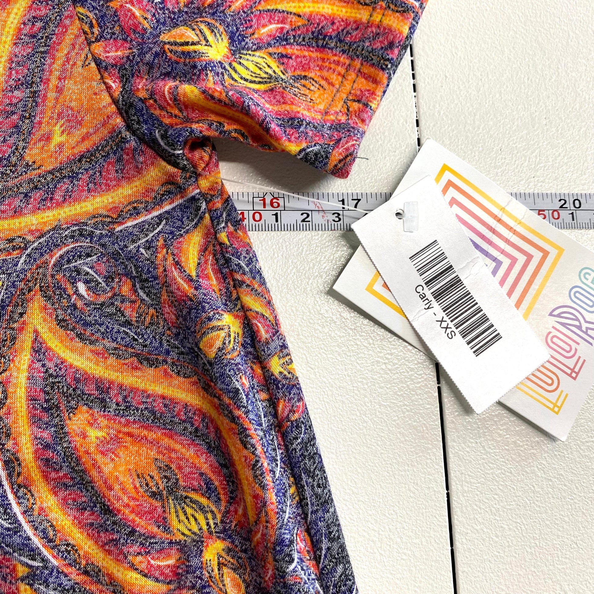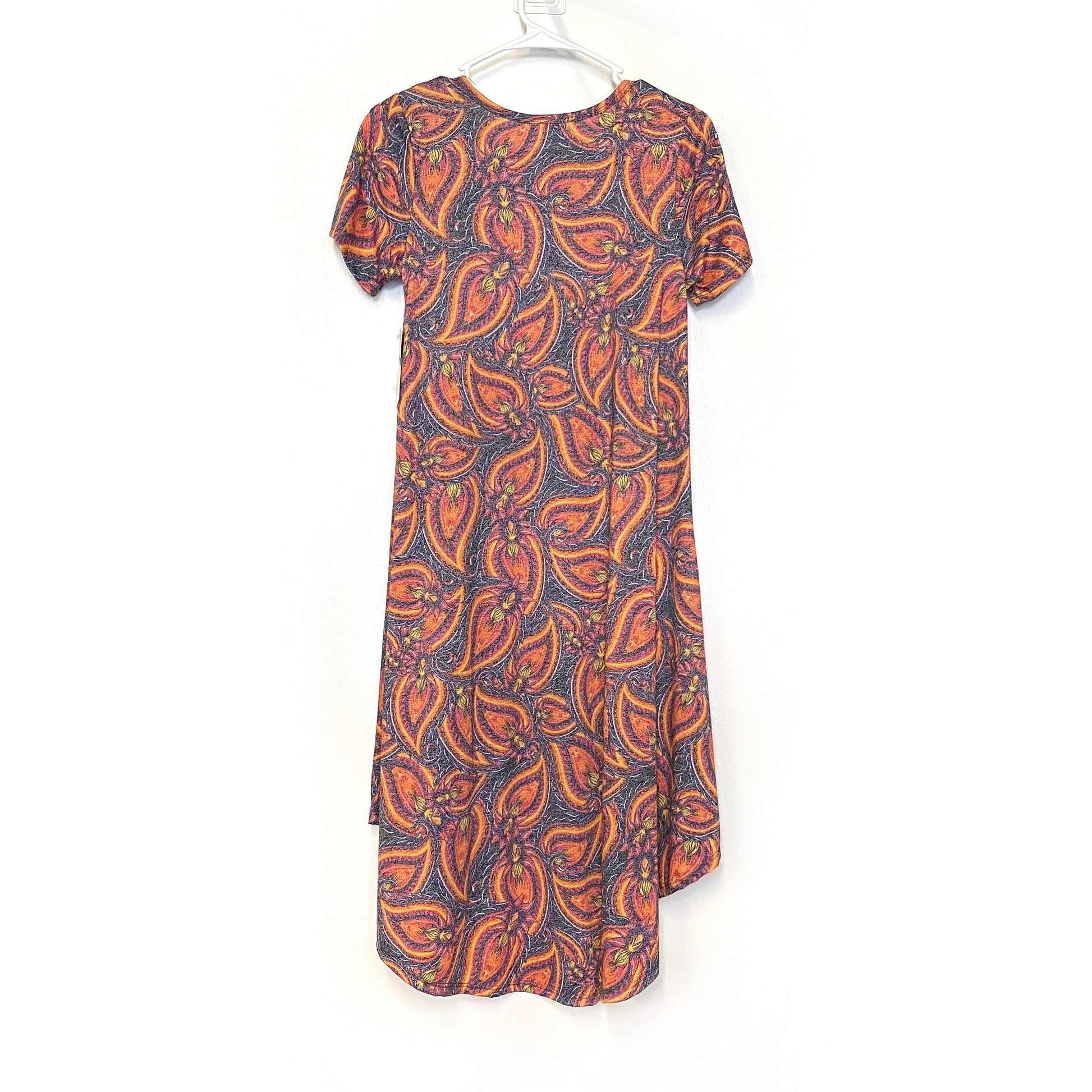 LuLaRoe Womens XXS Blue/Red/Orange Botanical-Paisley 'Carly' S/s Swing Dress NWT