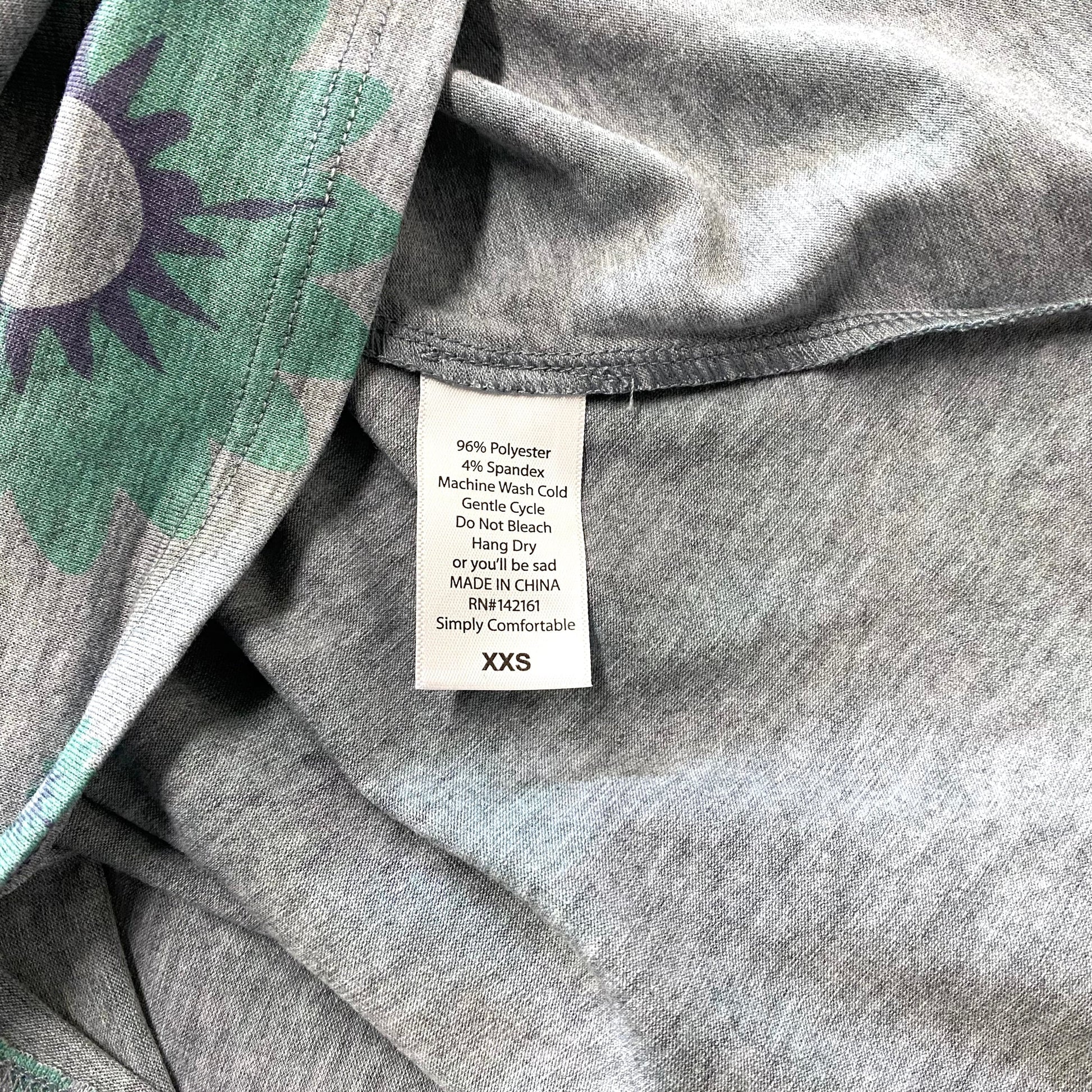 LuLaRoe Womens XXS Gray/Green Retro Floral 'Carly' S/s Swing Dress NWT