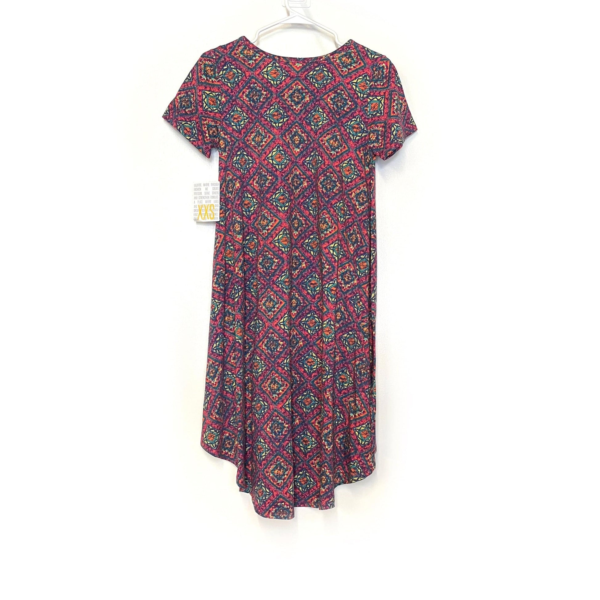 LuLaRoe Womens XXS Red/Orange/Blue Mandala 'Carly' S/s Swing Dress NWT
