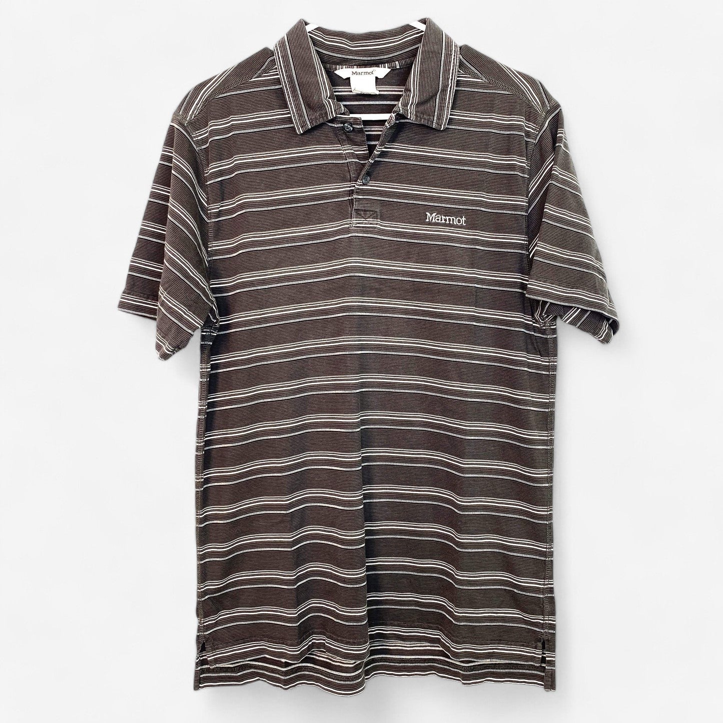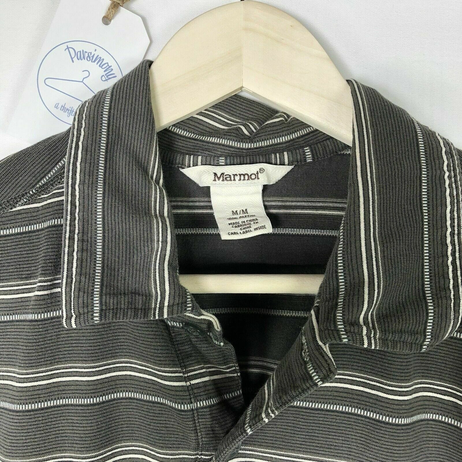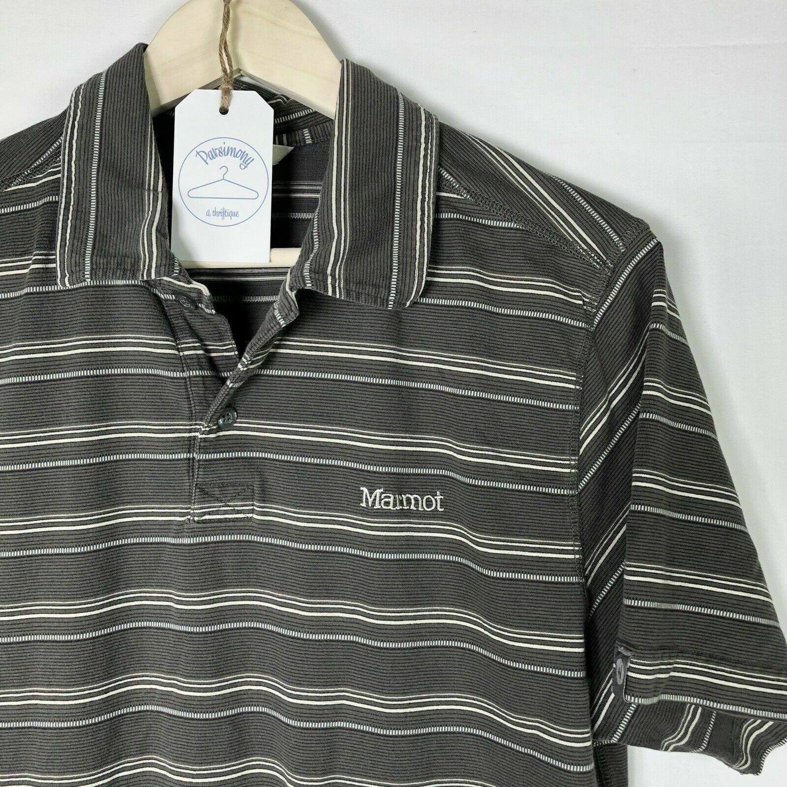 Marmot Men's Classic Fit Gray Striped Short Sleeve Polo Shirt - Size M - Pre-Owned