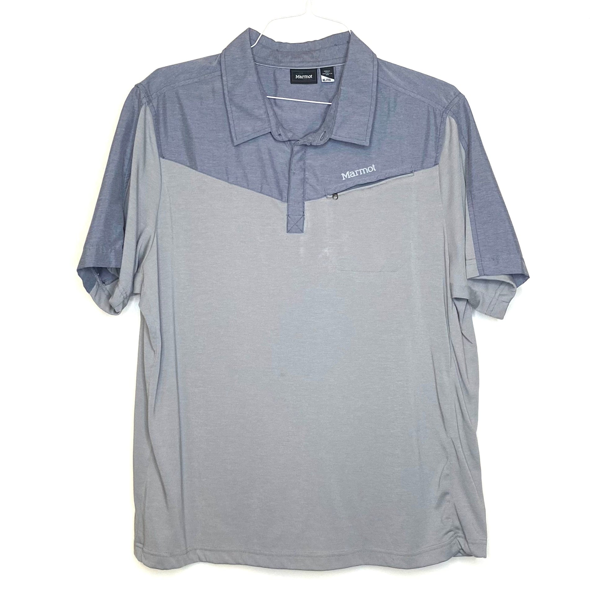 Upgrade your wardrobe with this stylish Marmot Men's Gray Colorblock Polo Shirt. Made with excellent quality cotton, it offers comfort and style. Perfect for any occasion, this shirt is a must-have for every fashion-forward man.