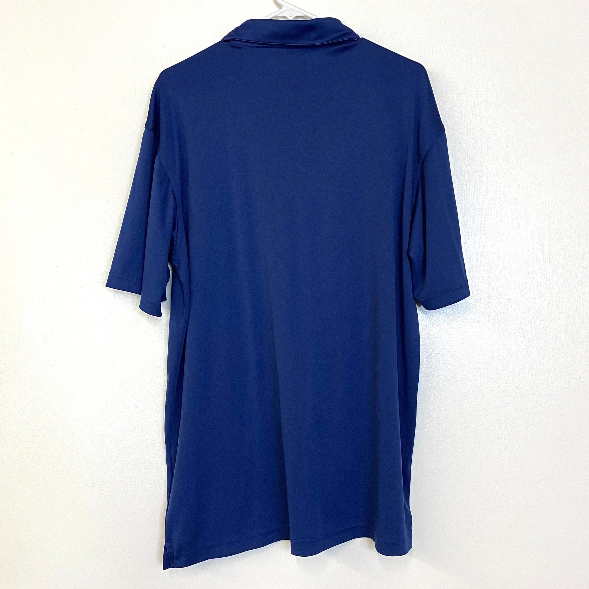 This Masters Performance men's polo golf shirt is a solid blue color and has been pre-loved in excellent condition, perfect for the golfer looking for a stylish addition to their wardrobe. Size large.