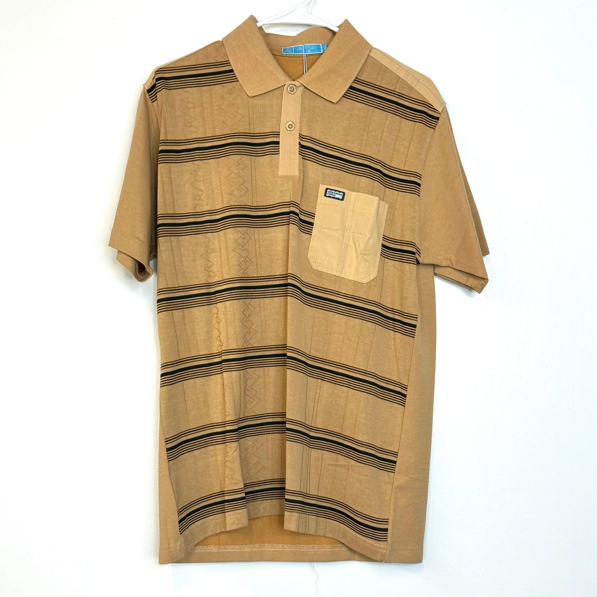 Mens Fashion Golf Shirt M Beige/Brown/Black Striped S/s Polo Shirt NWT