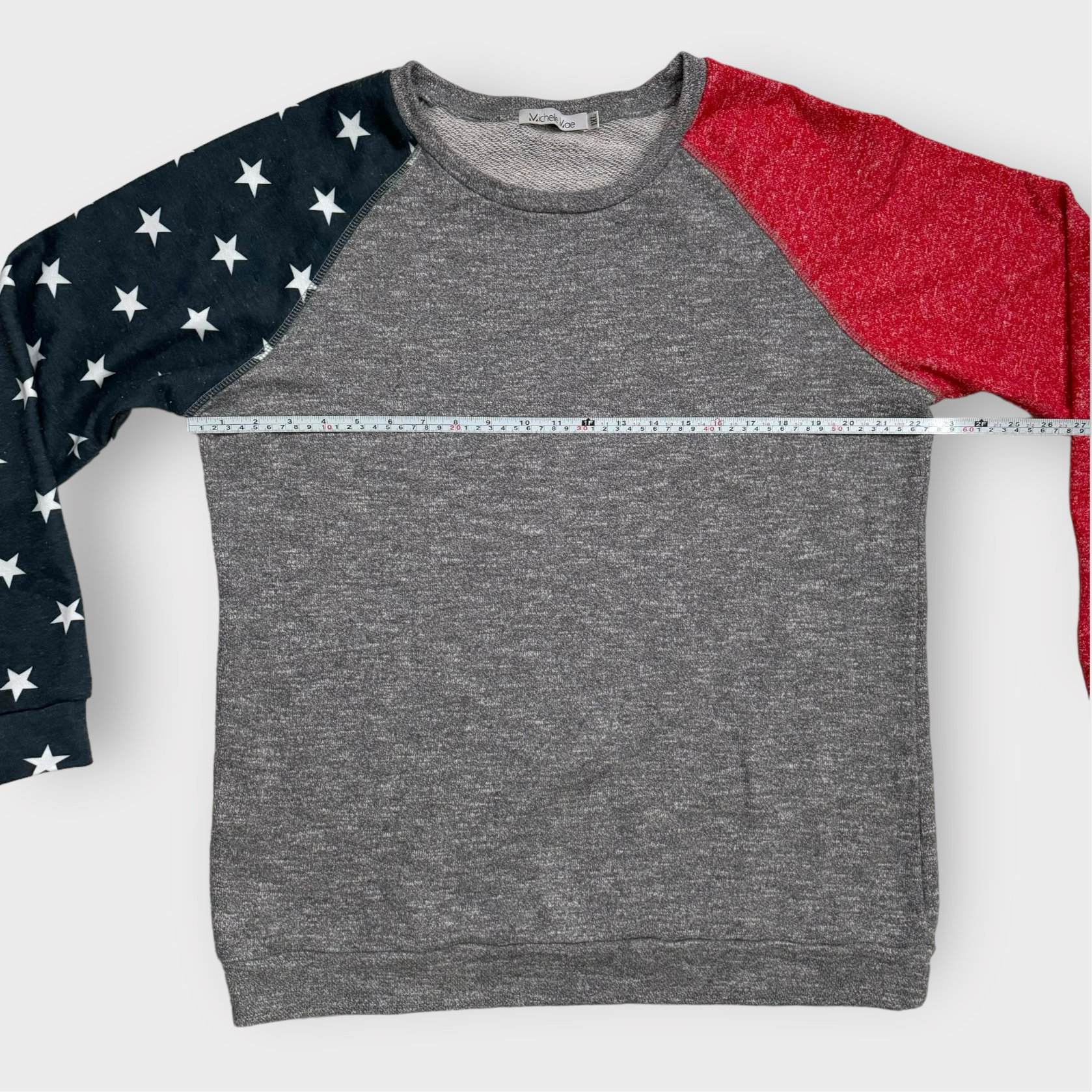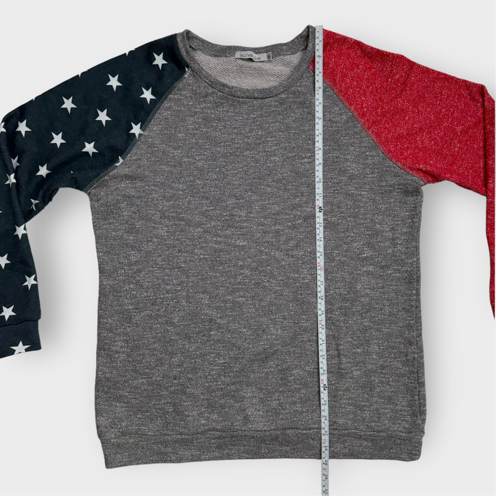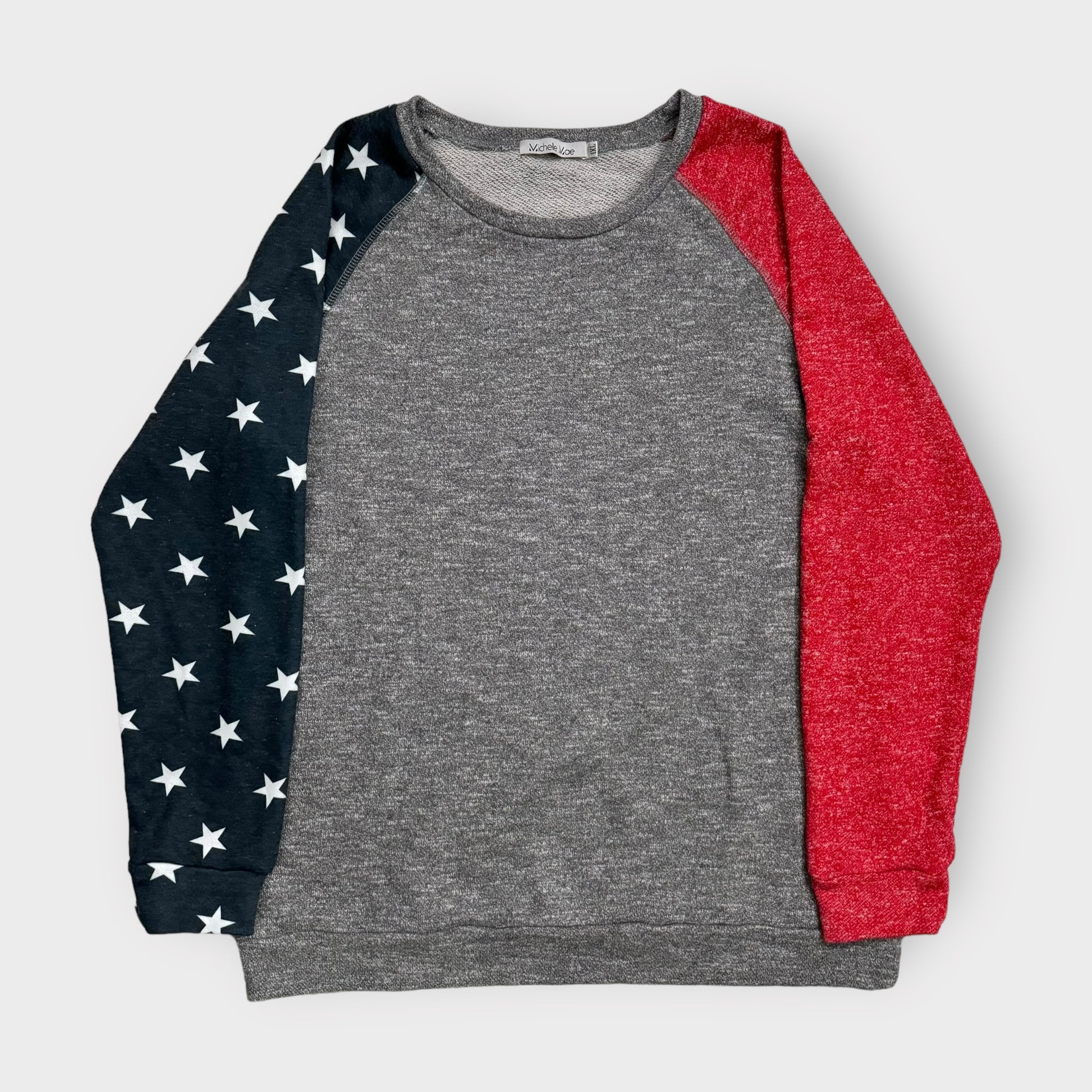 Michelle Mae Pullover Sweatshirt | 1XL | Gray/Red/Blue Stars | GUC