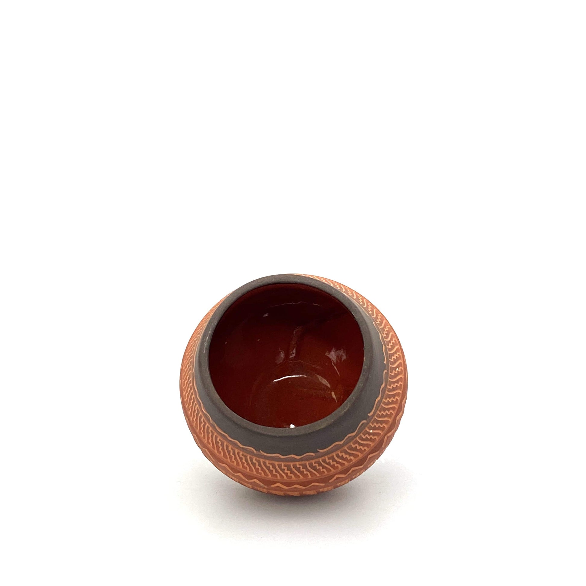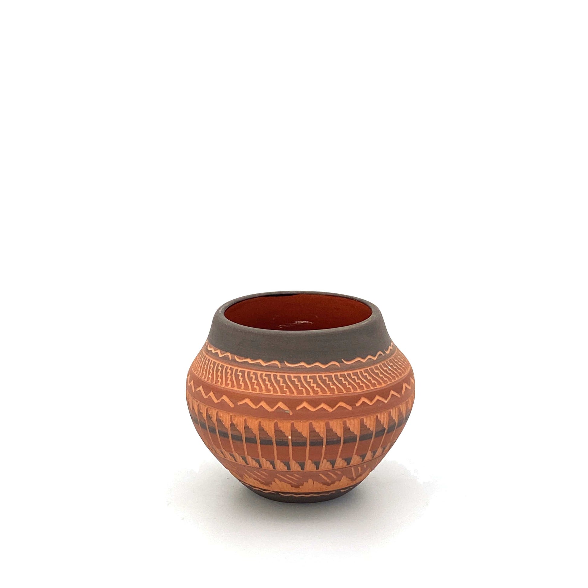 Navajo Pottery by Anna Tsosie Terra Cotta Hand Etched Small Pot 3” Orange Brown