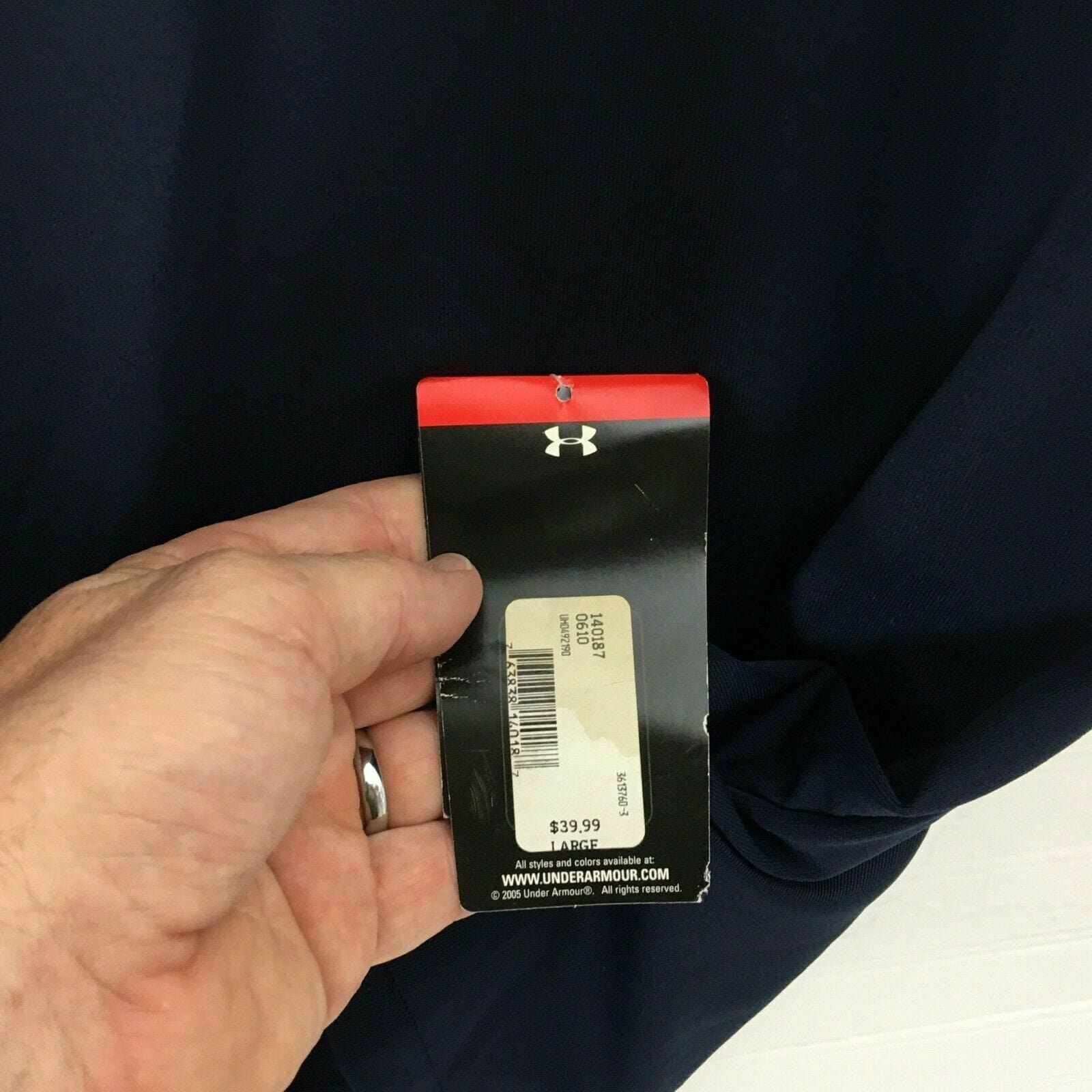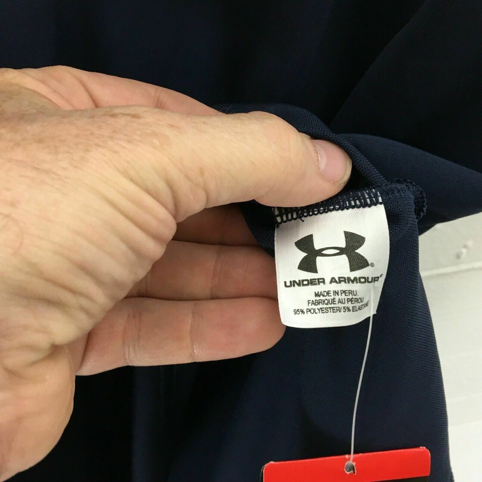 Show your support with this Under Armour men's navy blue polo shirt, featuring an embroidered 'US Navy Hawaii' logo that adds a touch of patriotism to your attire. This new, size L polo combines comfort and style, making it a versatile addition to your wardrobe.