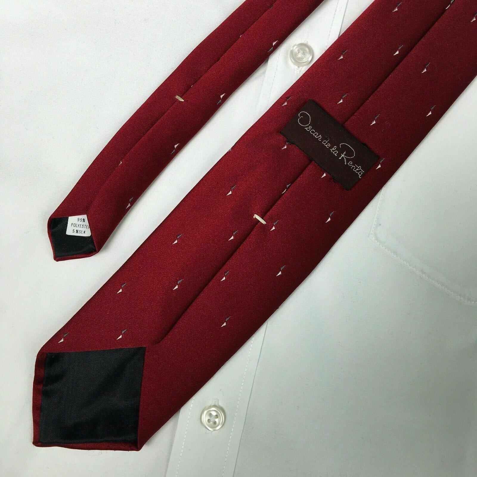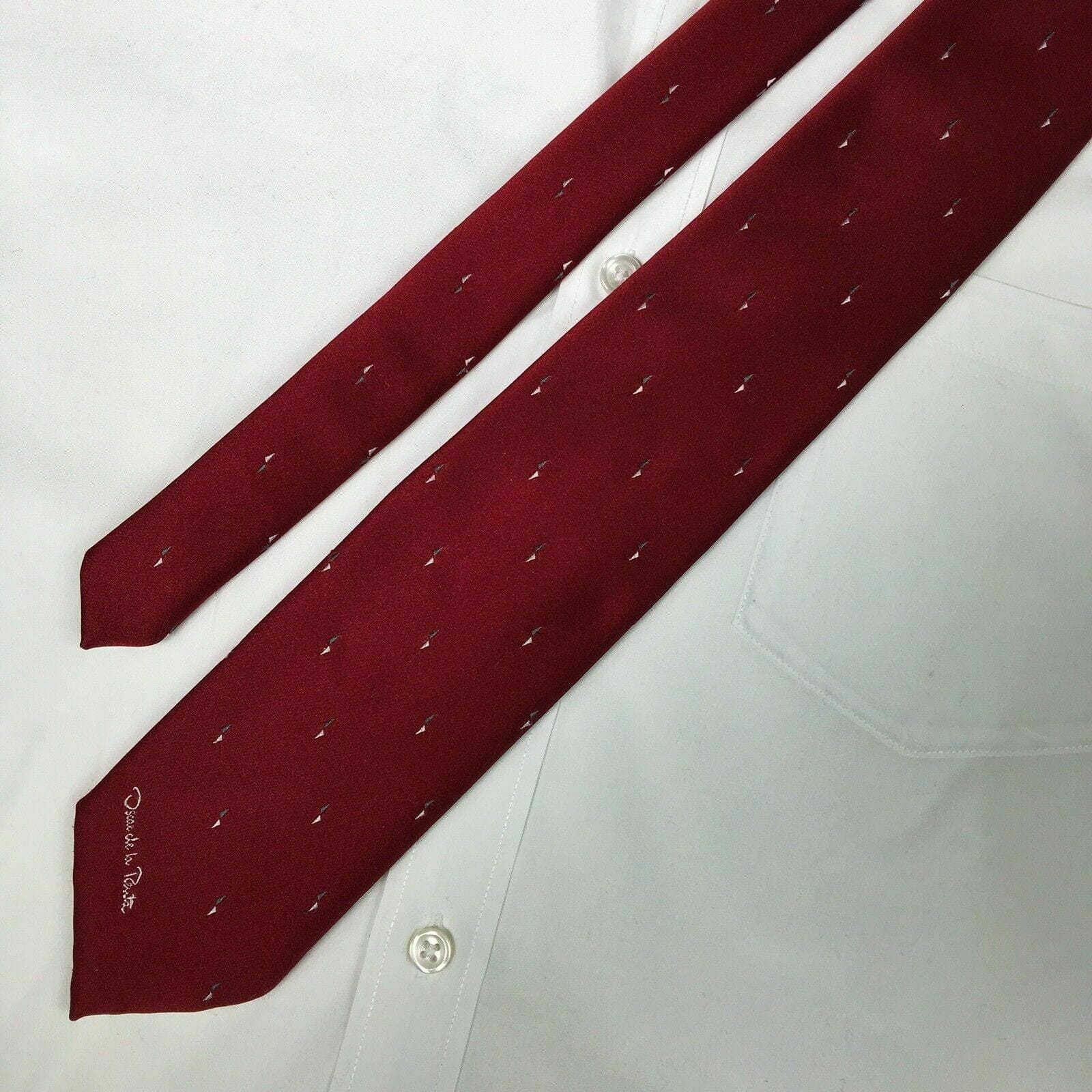 Trendy Oscar de la Renta Mens Red Polyester & Silk Neck Tie