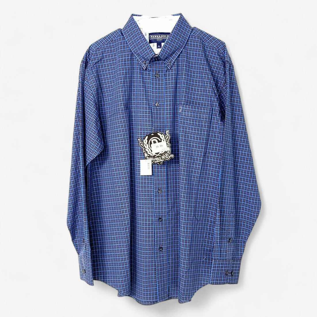 Panhandle Select Men's Button-Down Long Sleeve Dress Shirt - Blue Check - Size XL