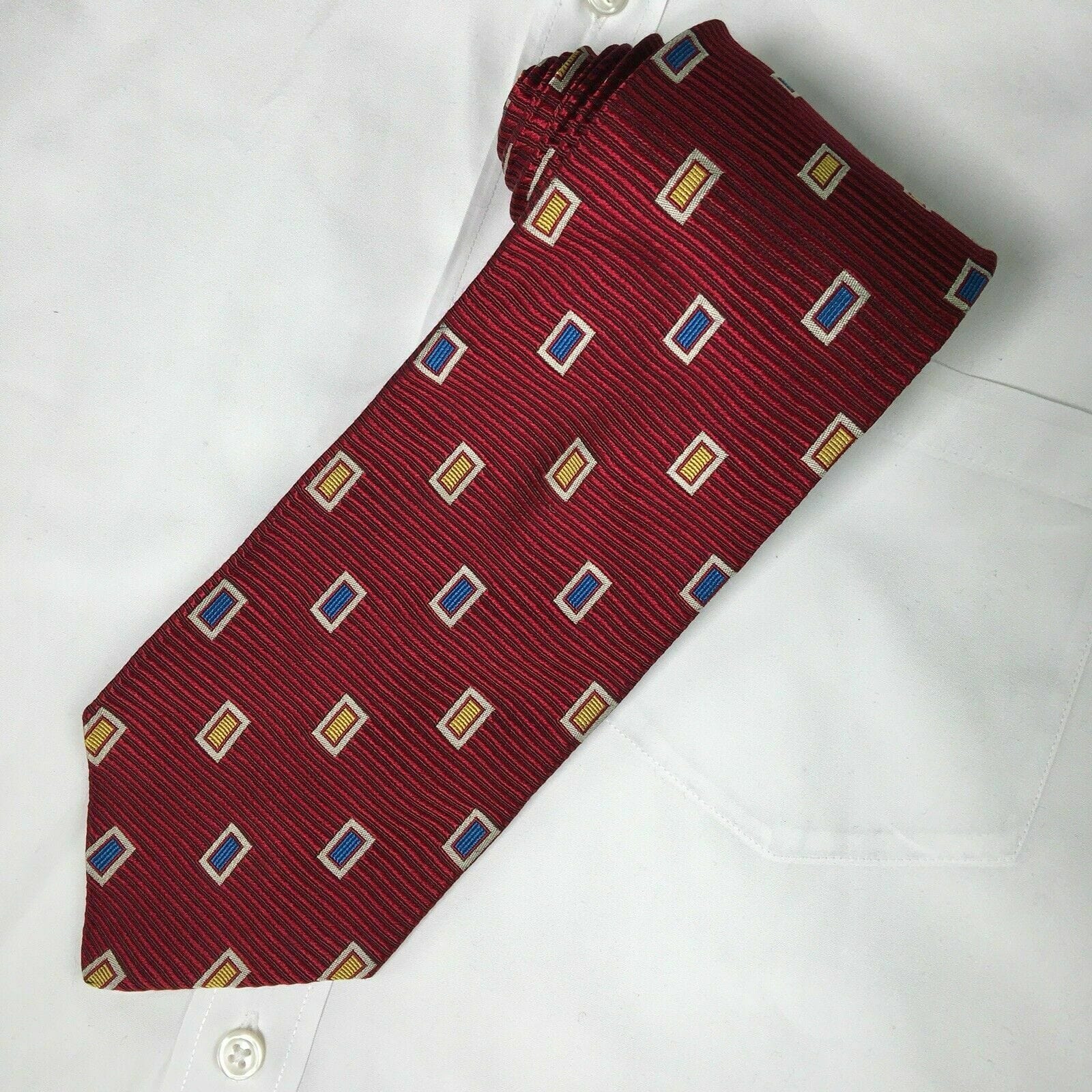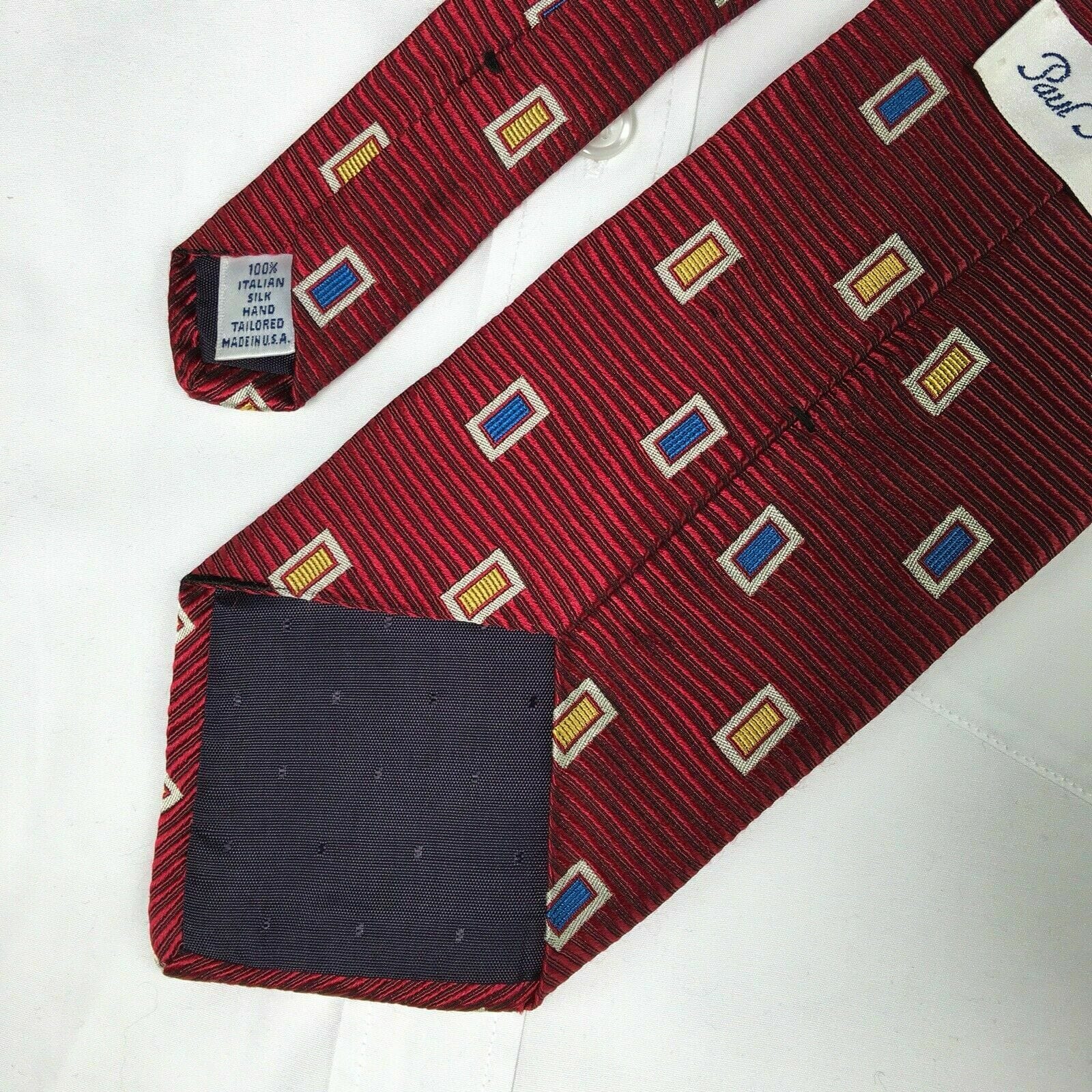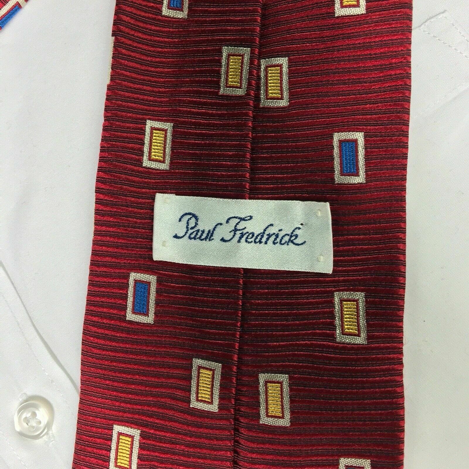Paul Fredrick Mens Red Textured Stripe W/ Blue & Gold Block Italian Silk Tie