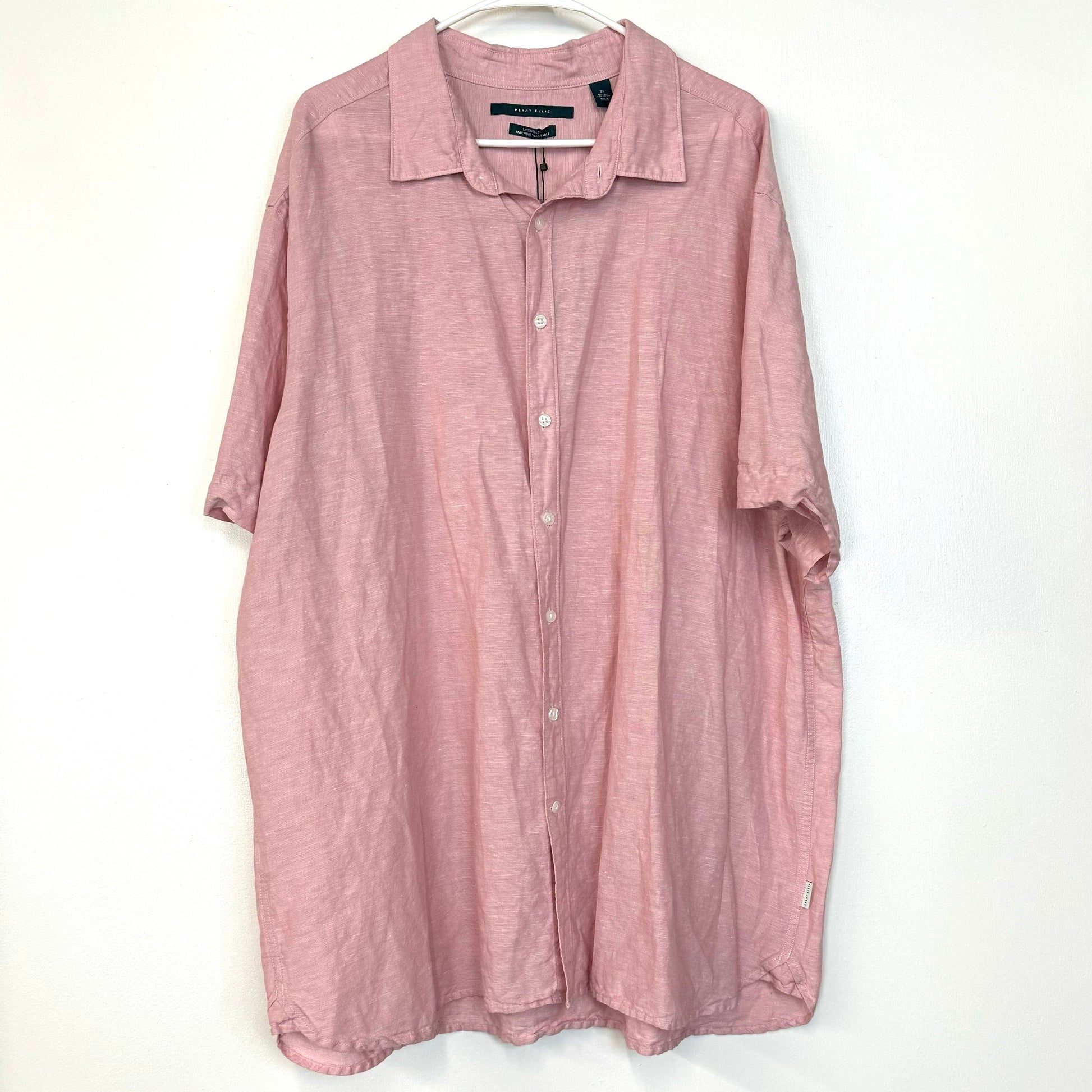 Perry Ellis Mens Size 2X Salmon Pink Linen Blend Shirt Button-Up S/s NWT