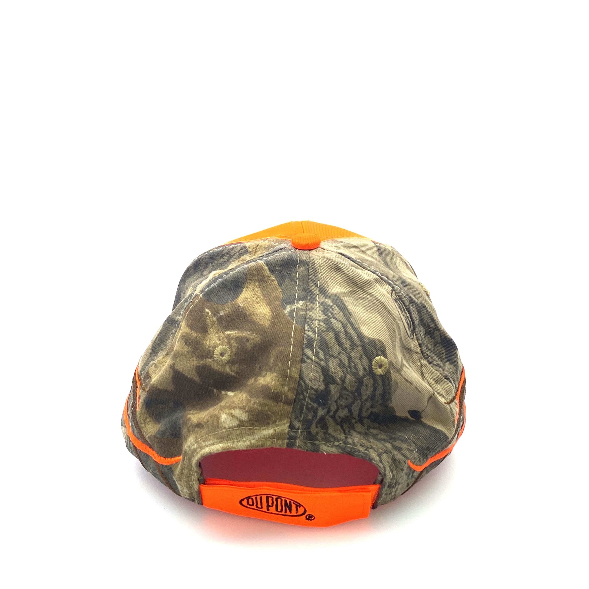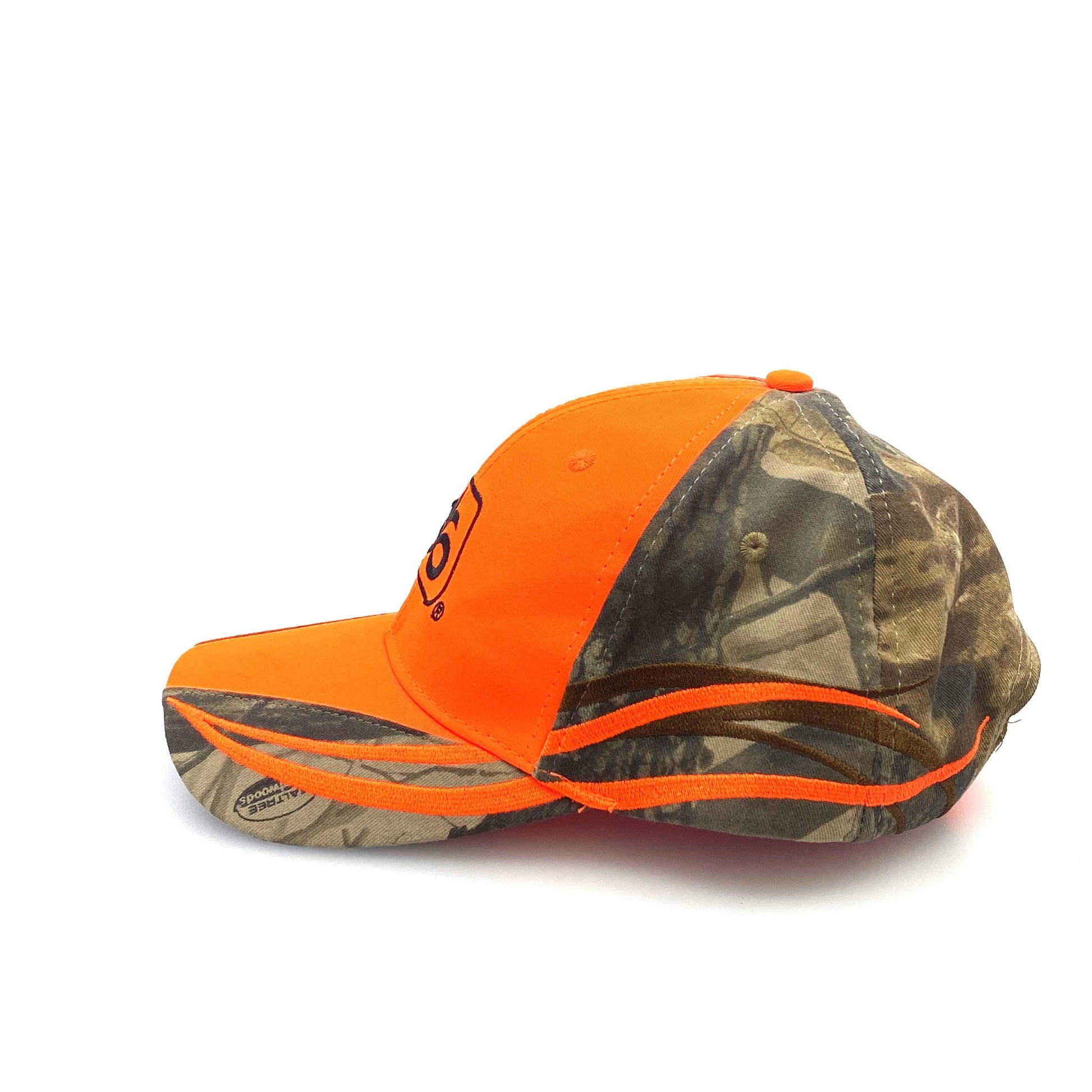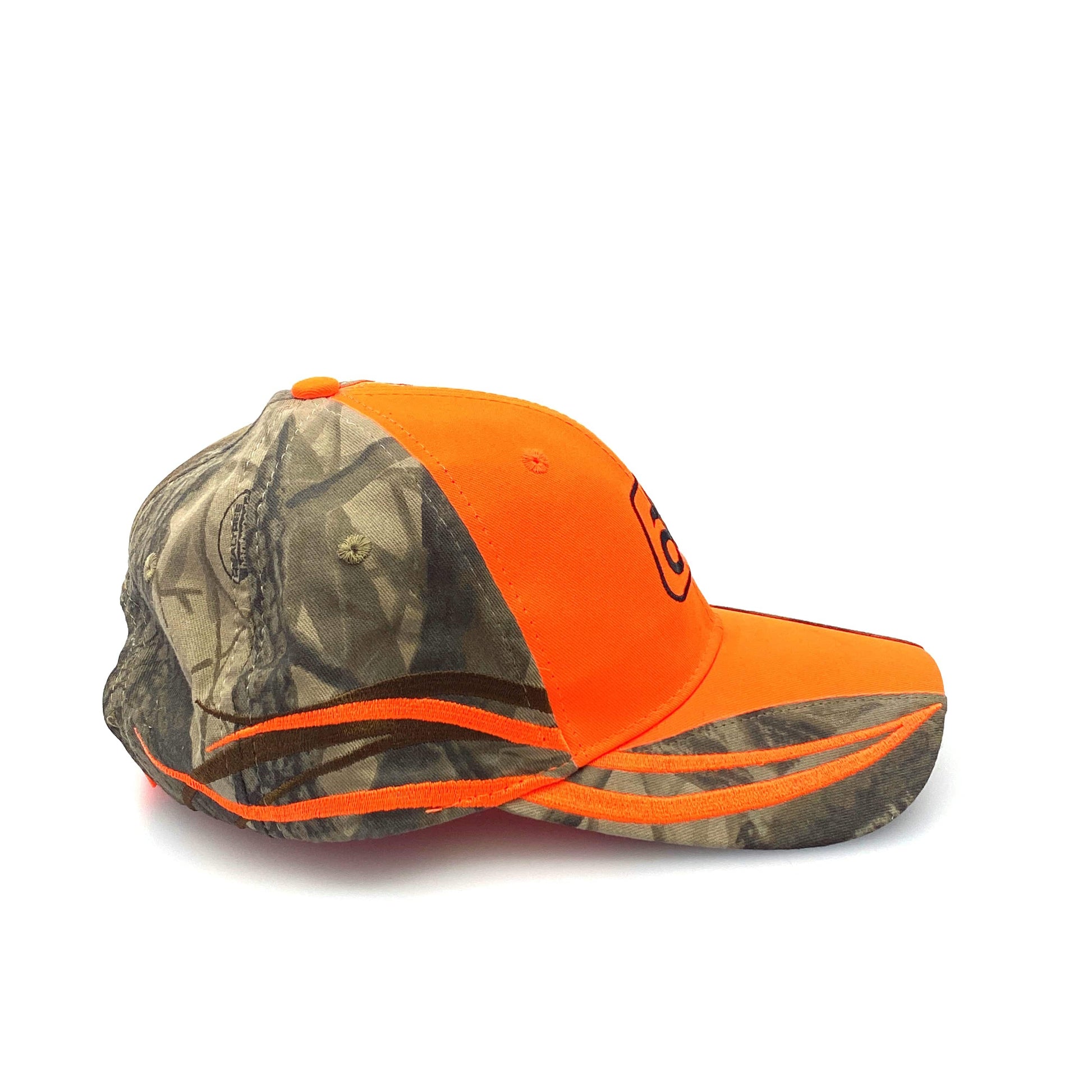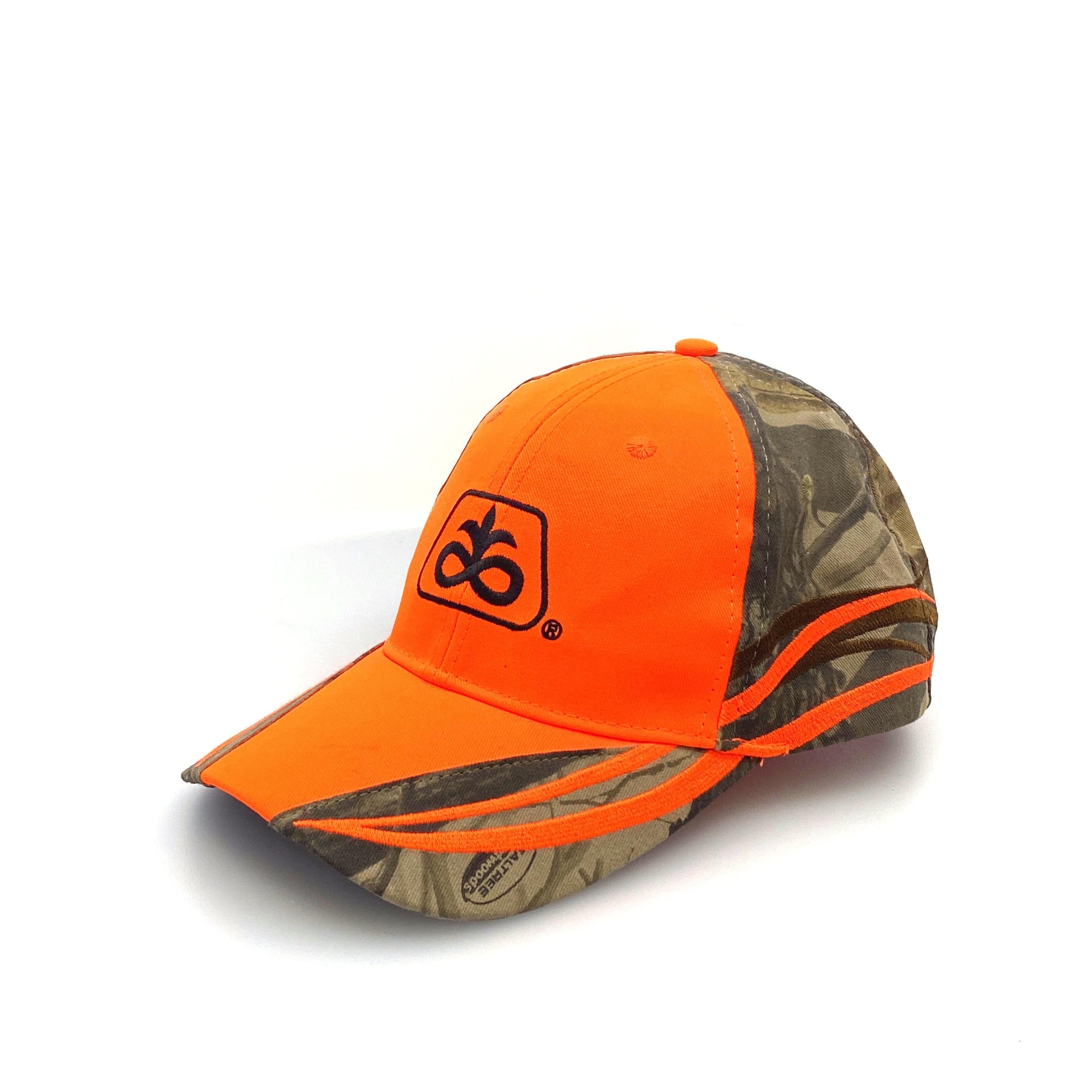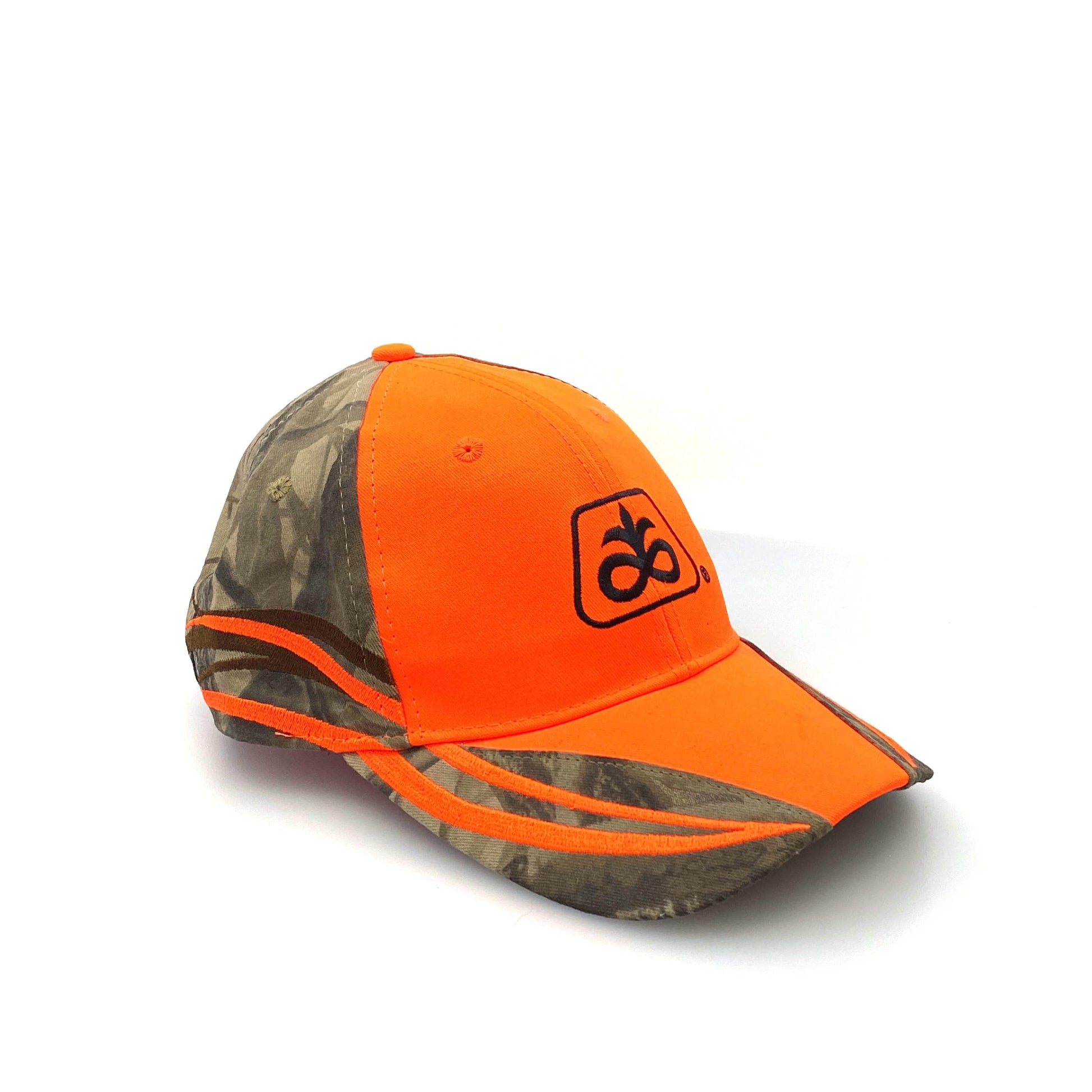 Pioneer Seed Mens Adjustable Baseball Hat Safety Orange and Camouflage