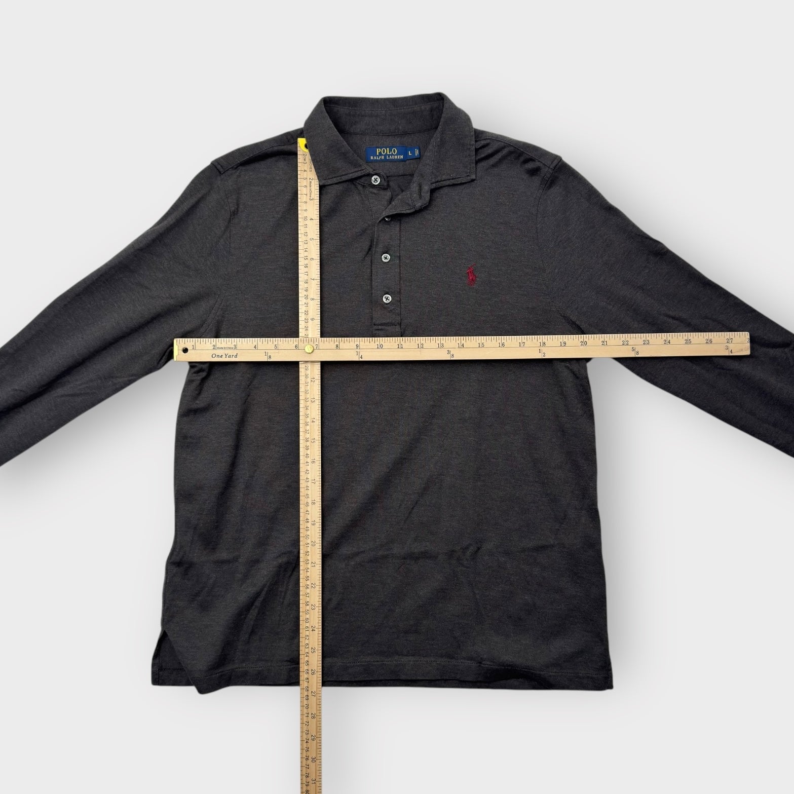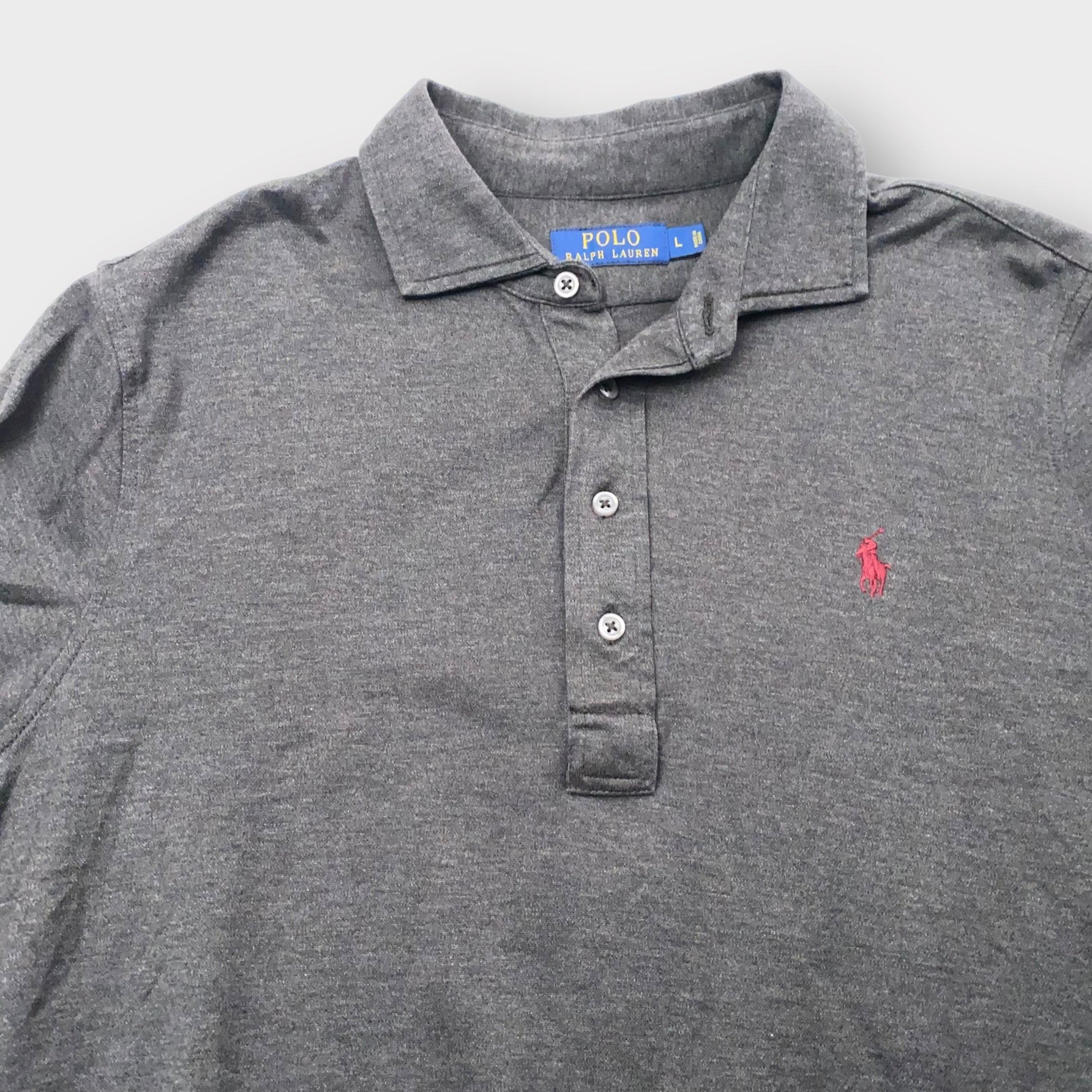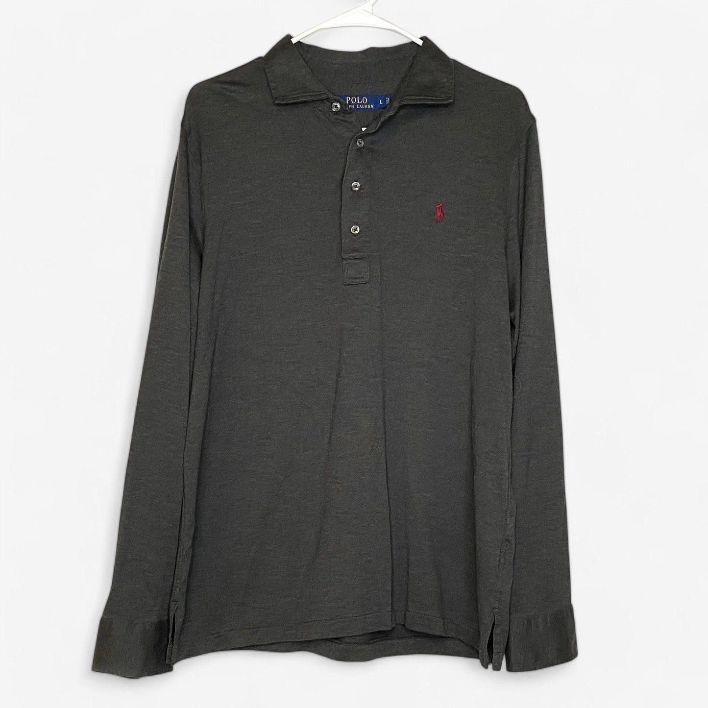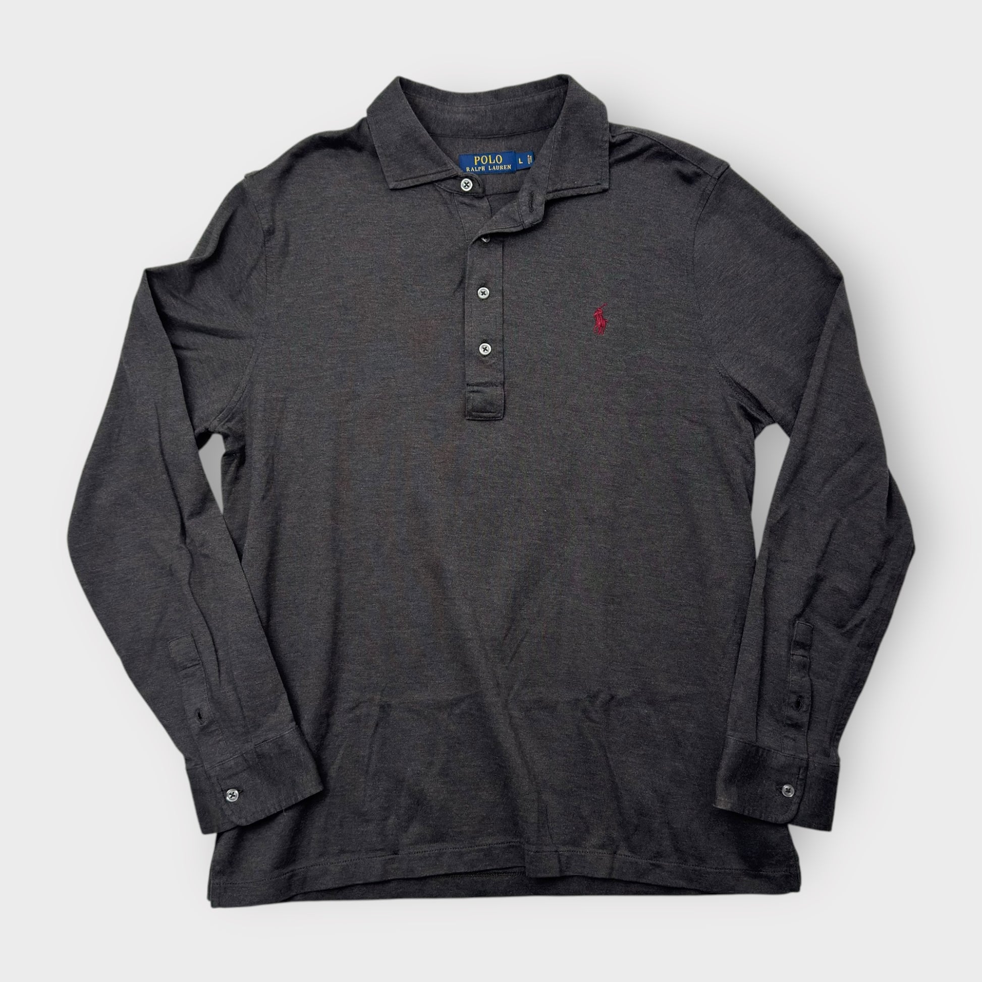 Polo by Ralph Lauren Men's Gray Classic Fit Long Sleeve Polo Shirt - Size L - Excellent Used Condition