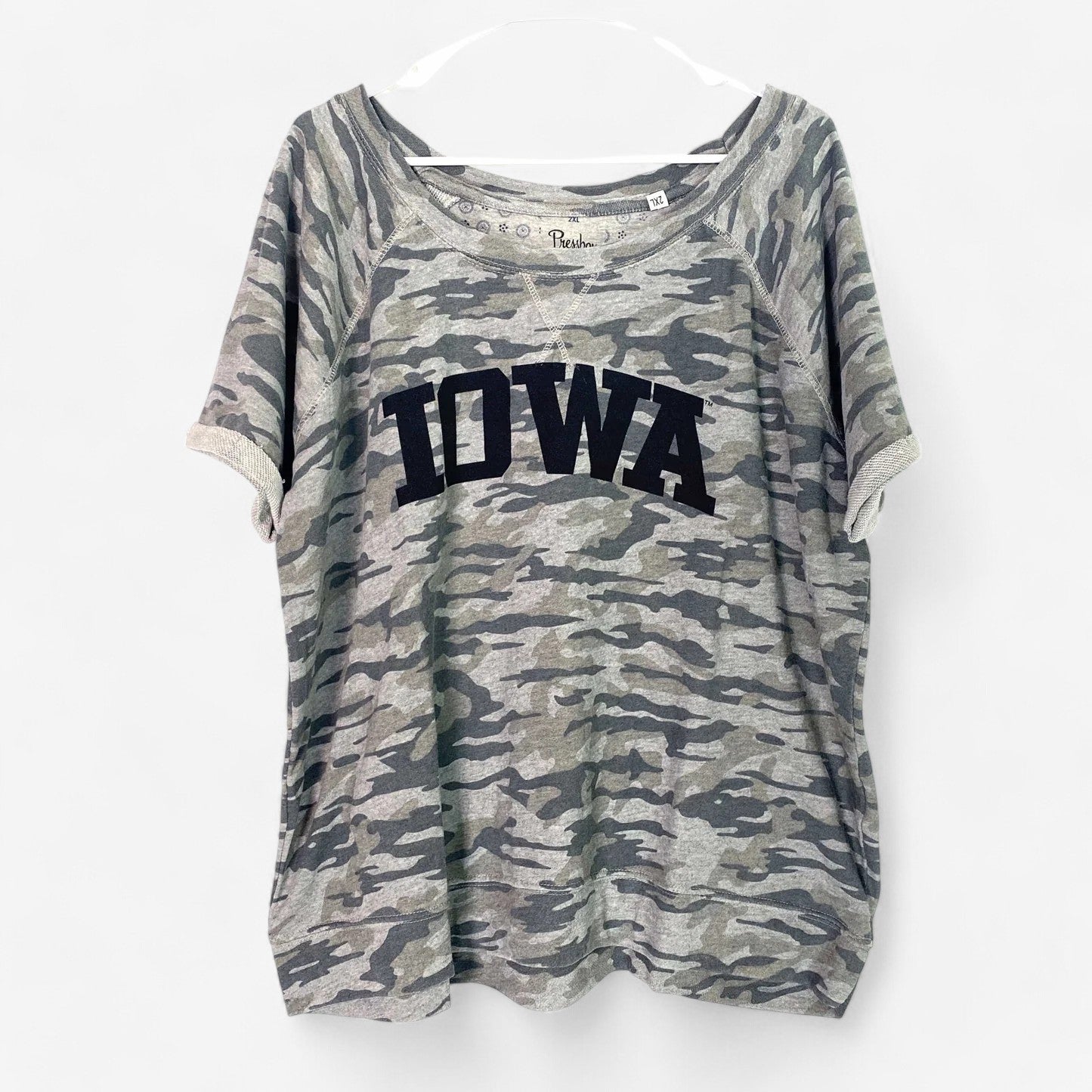 Pressbox Women's Gray Camouflage Iowa Short Sleeve Sweatshirt - Size 2XL