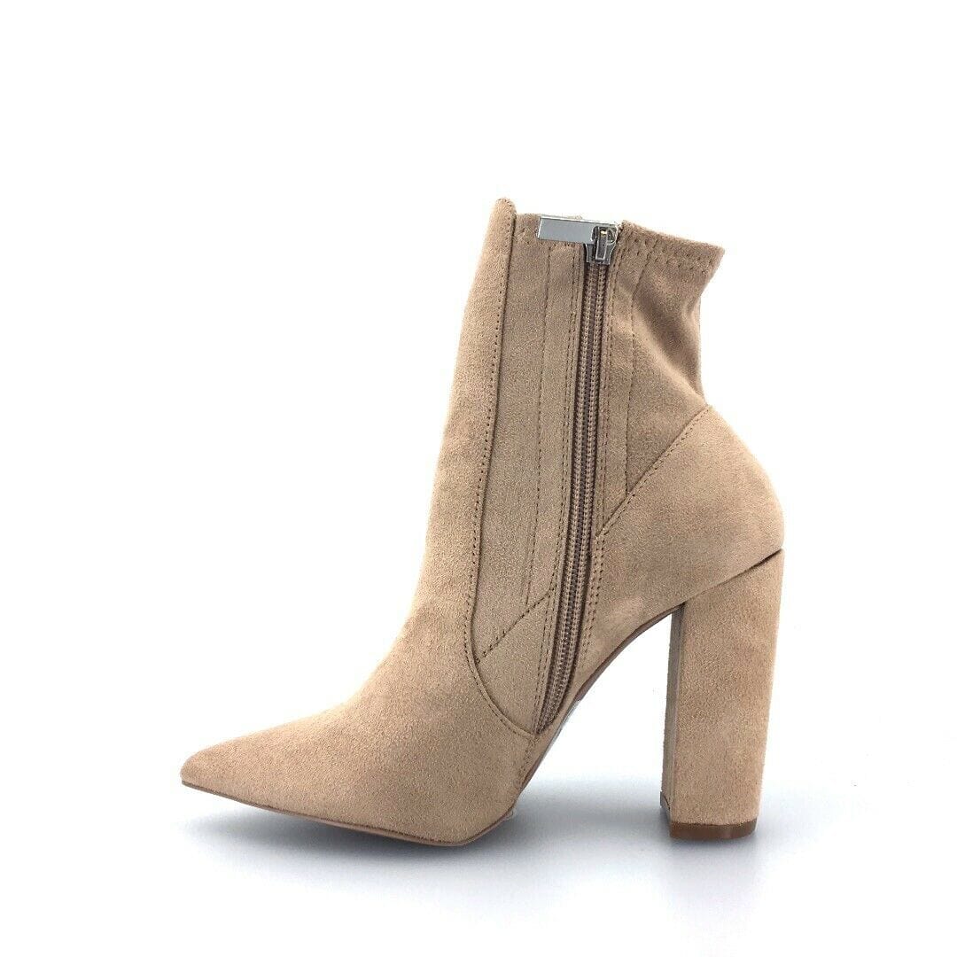 Qupid Womens Signal-99X Size 8.5 Warm Taupe Beige Booties Boots Stretch Suede