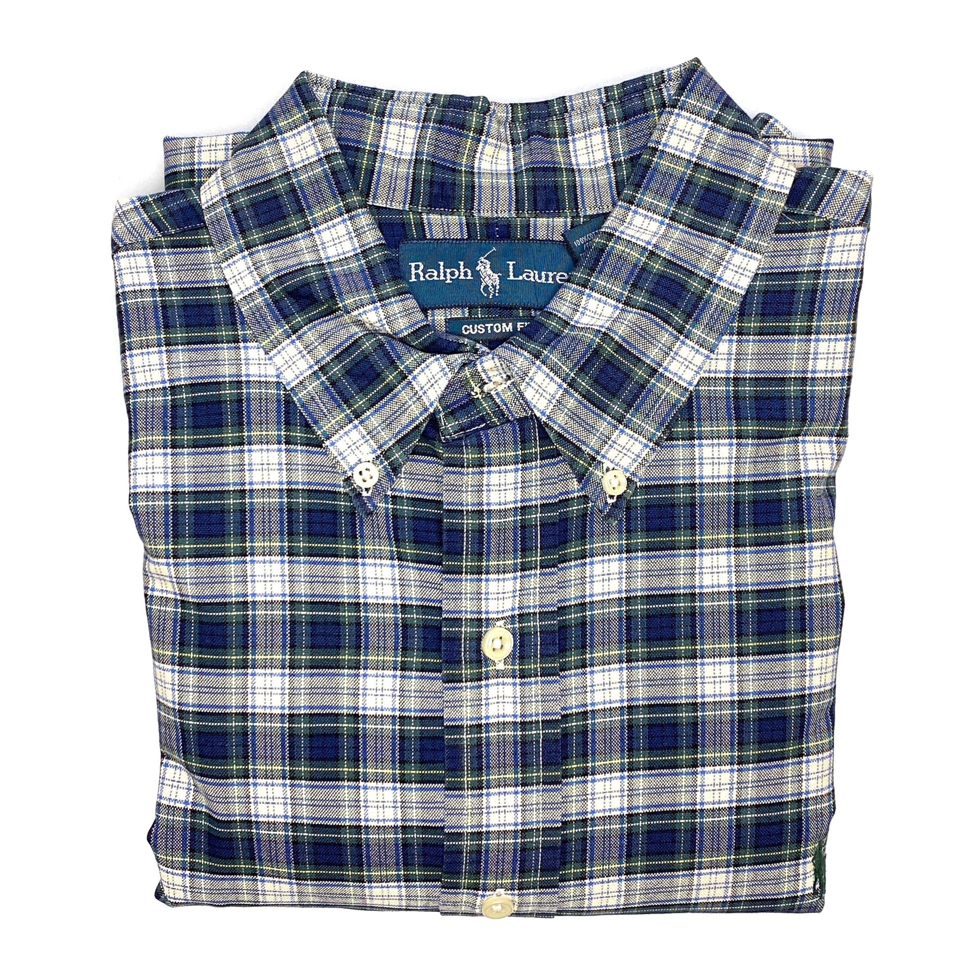 Ralph Lauren Men's Custom Fit Plaid Dress Shirt - Size L - Blue/White/Green - 100% Cotton