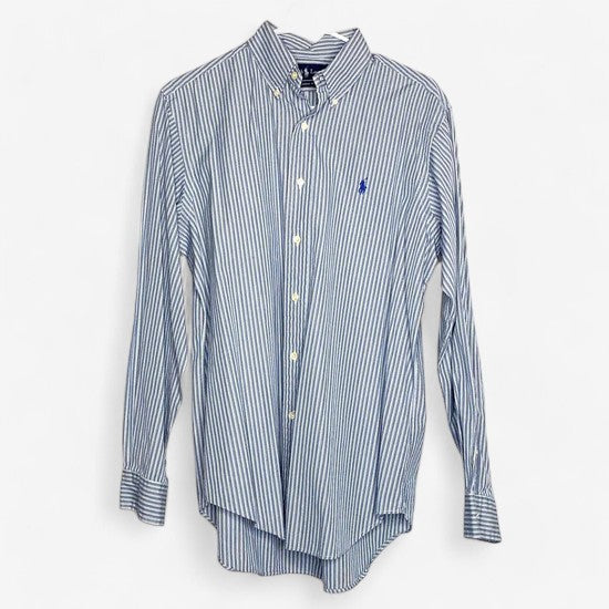 Ralph Lauren Men's Blue & White Striped Classic Fit Dress Shirt - Size M