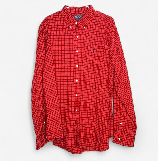 Ralph Lauren Men's Red & Black Box Check Blake Dress Shirt - Size XL