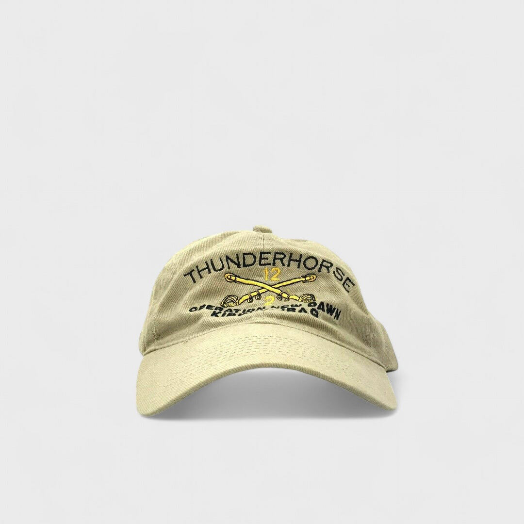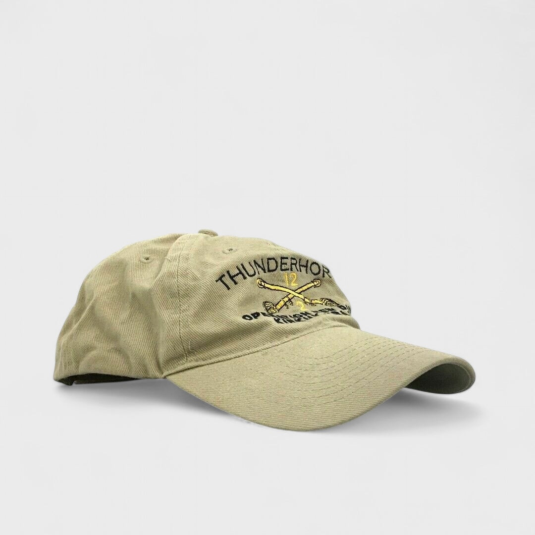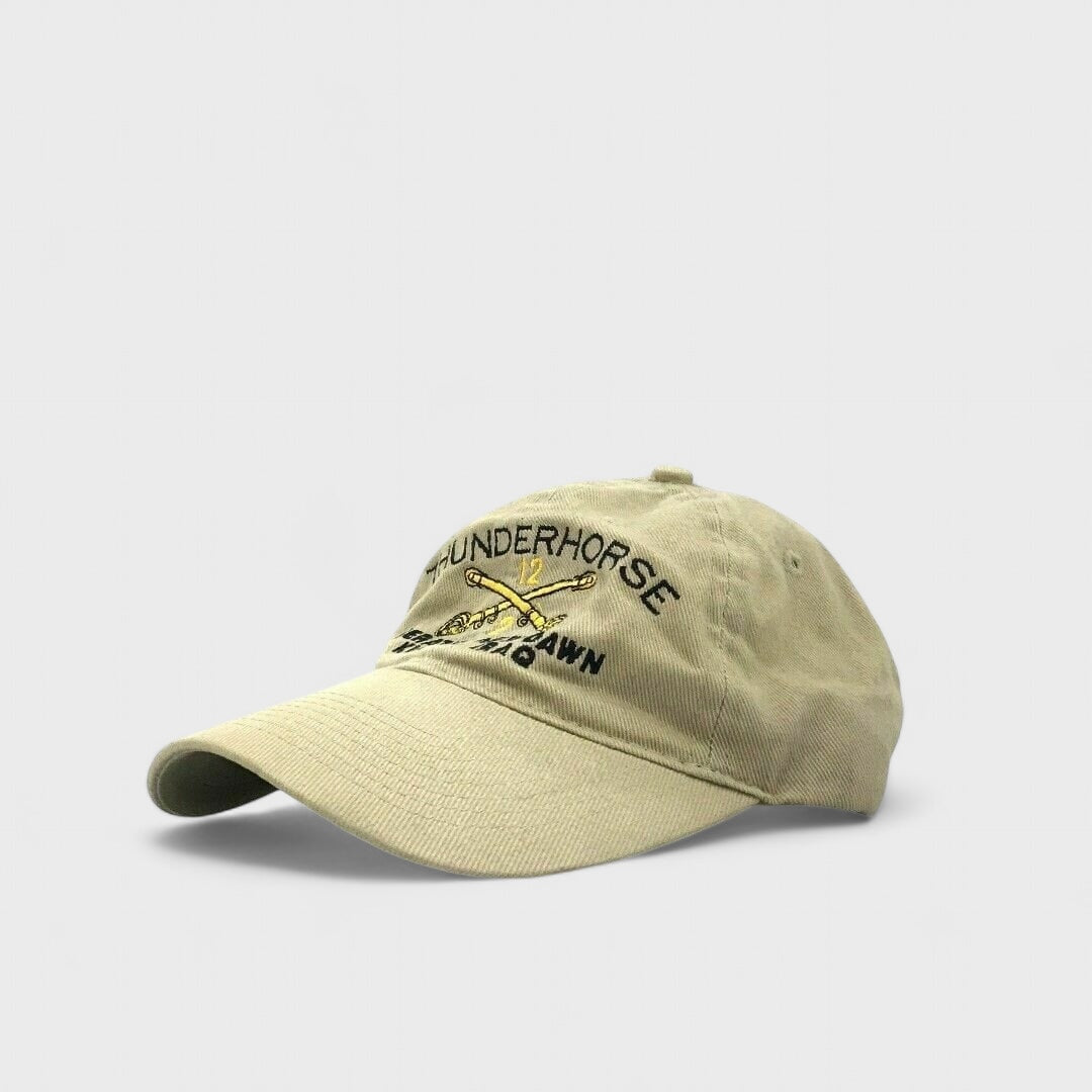 Resilient Thunderhorse 12th Battalion 2nd Cavalry Regiment Hat | Beige | Embroidered Cotton Twill | Adjustable Fit | Pre-Owned