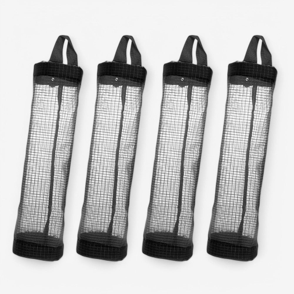 Keep your space organized with these Rubbish Bags Dispensers. This set includes four black nylon mesh organizers, perfect for storing and dispensing plastic bags efficiently.