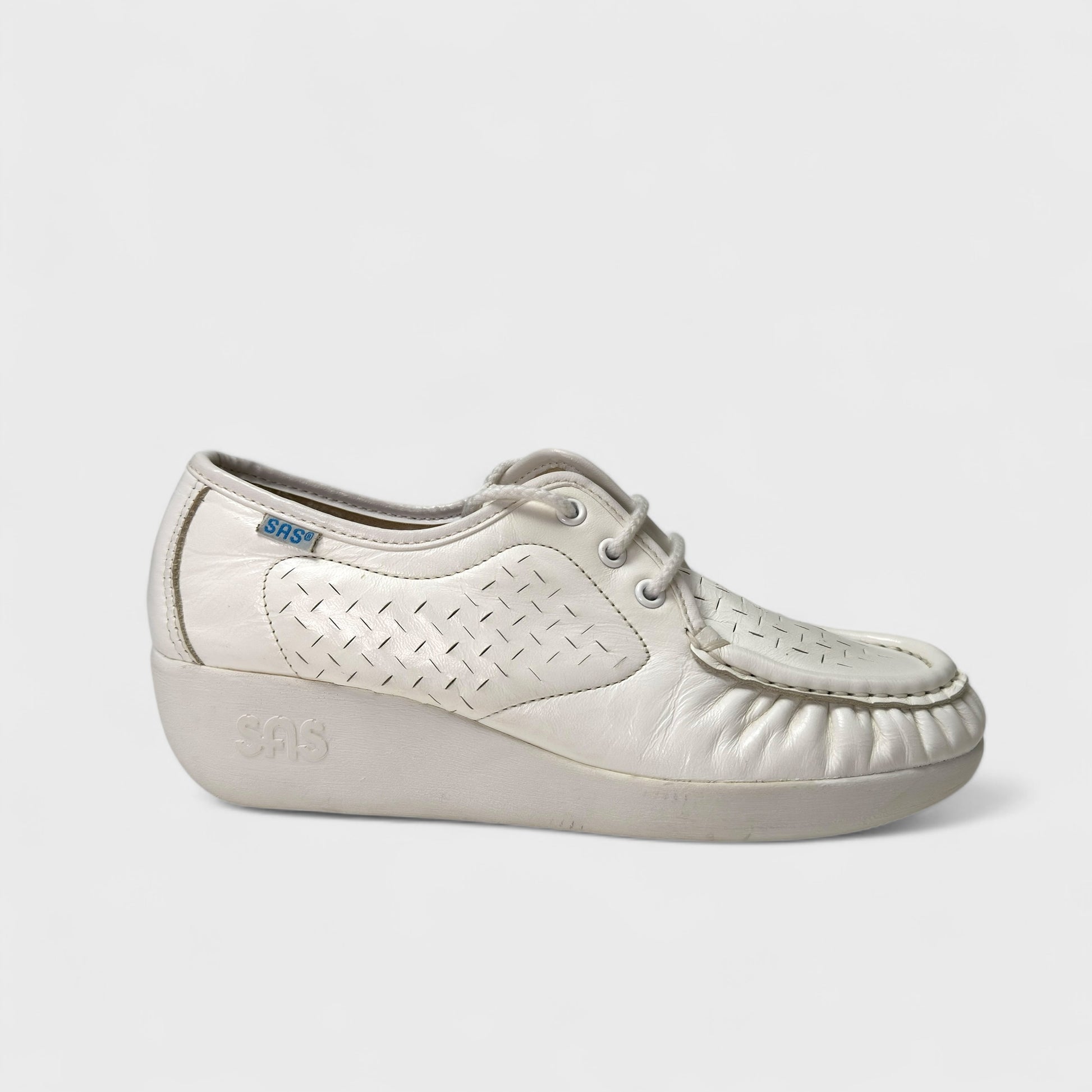 SAS Leather Nursing Lattice SS - Womens Wedge Oxfords | 6 | White | Comfort Shoes | NIB