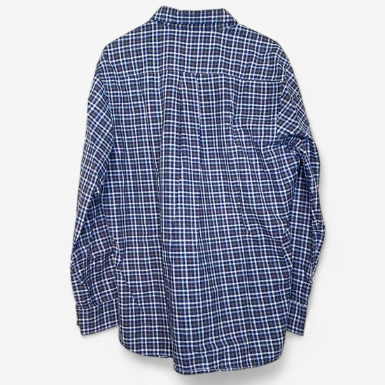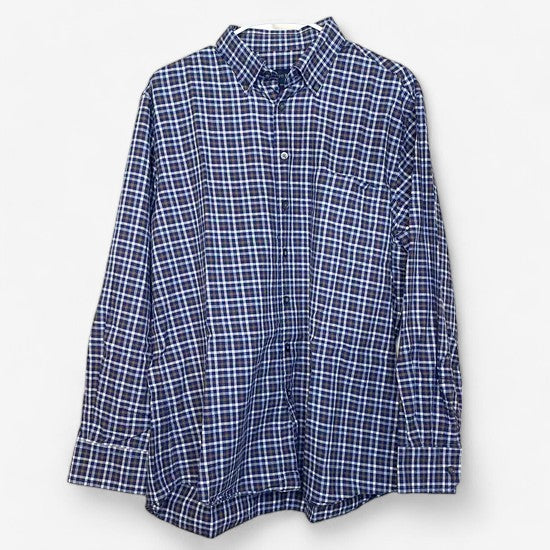 Scott Barber Men's Brown, Blue, and White Plaid Button-Up Dress Shirt - Size L