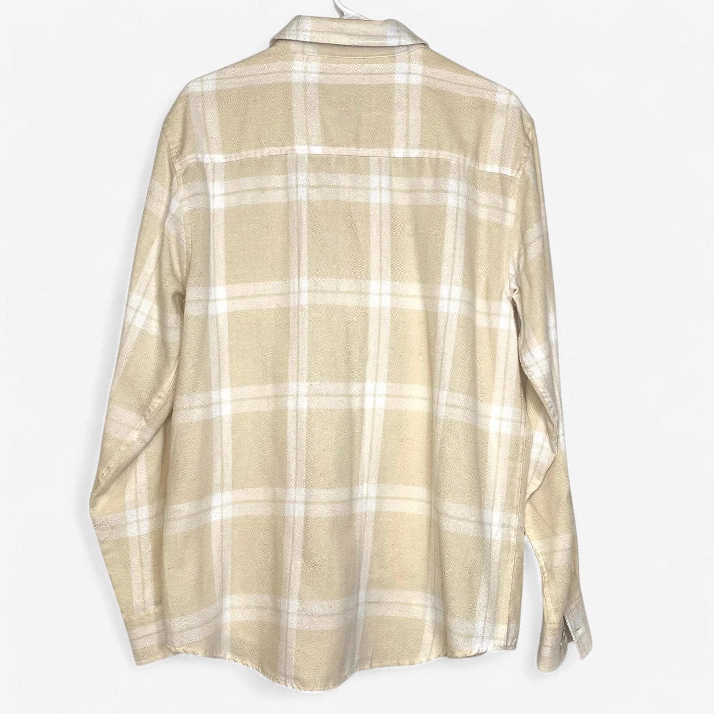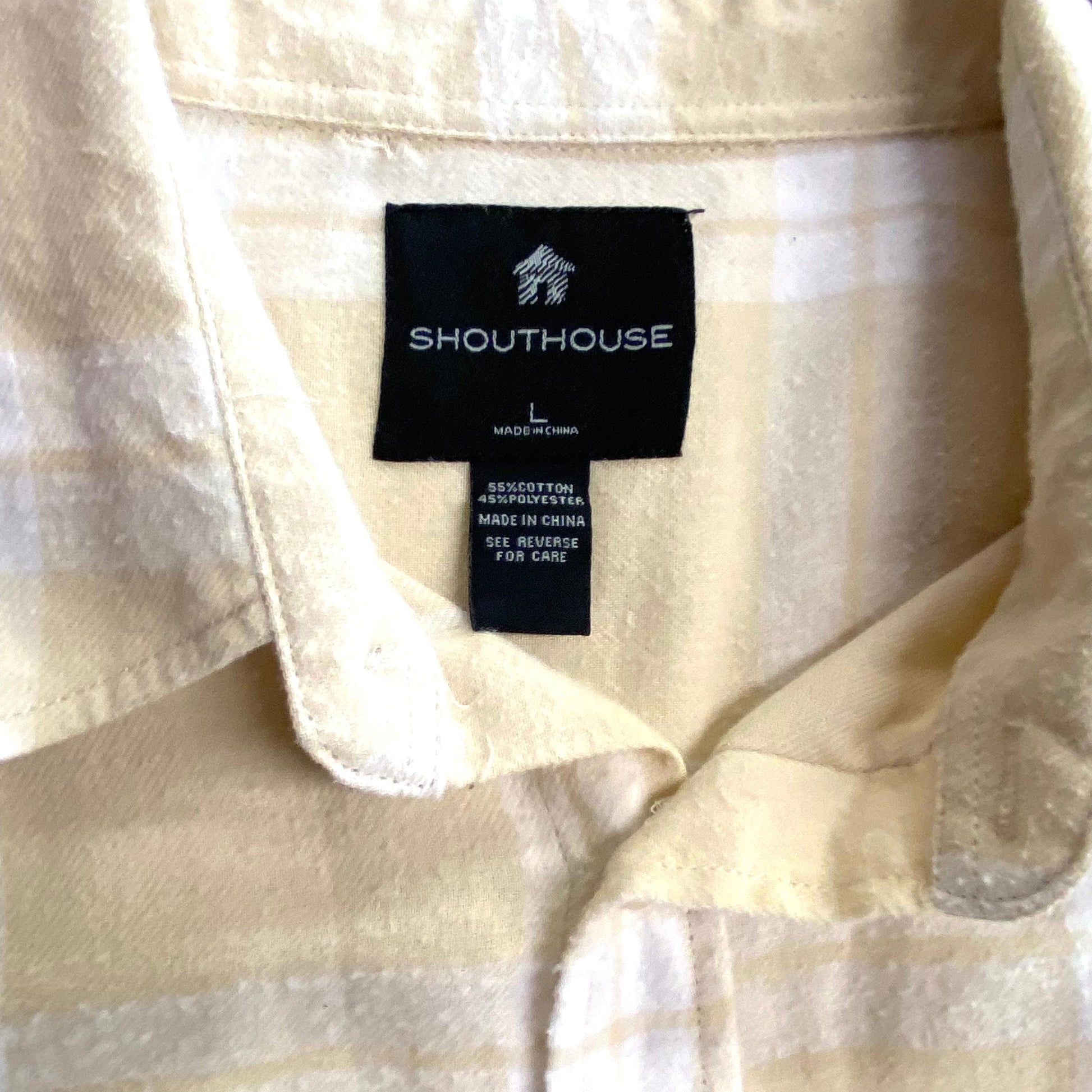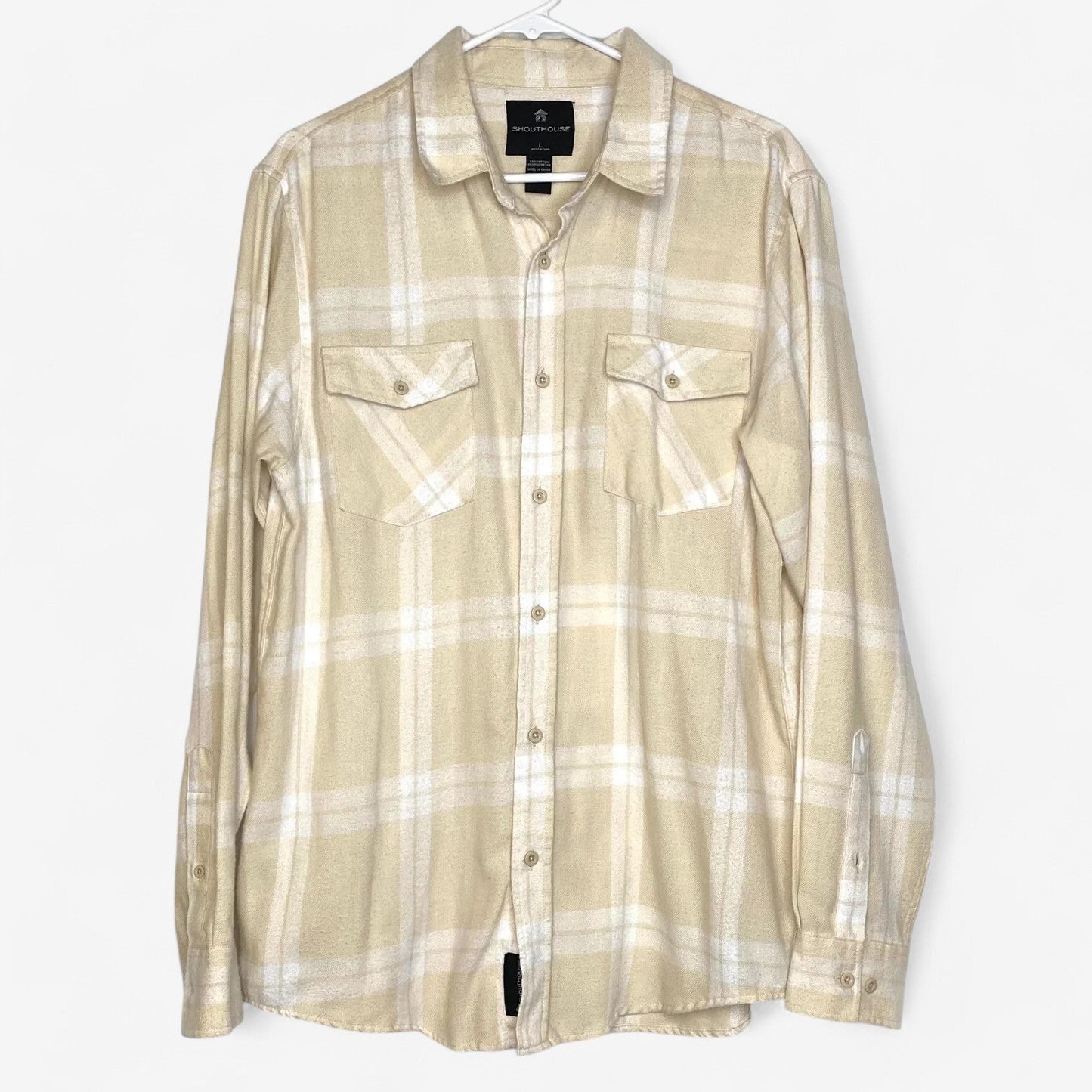 Shouthouse Men's Cream/White Plaid Soft Flannel Long Sleeve Shirt - Size L - Excellent Condition