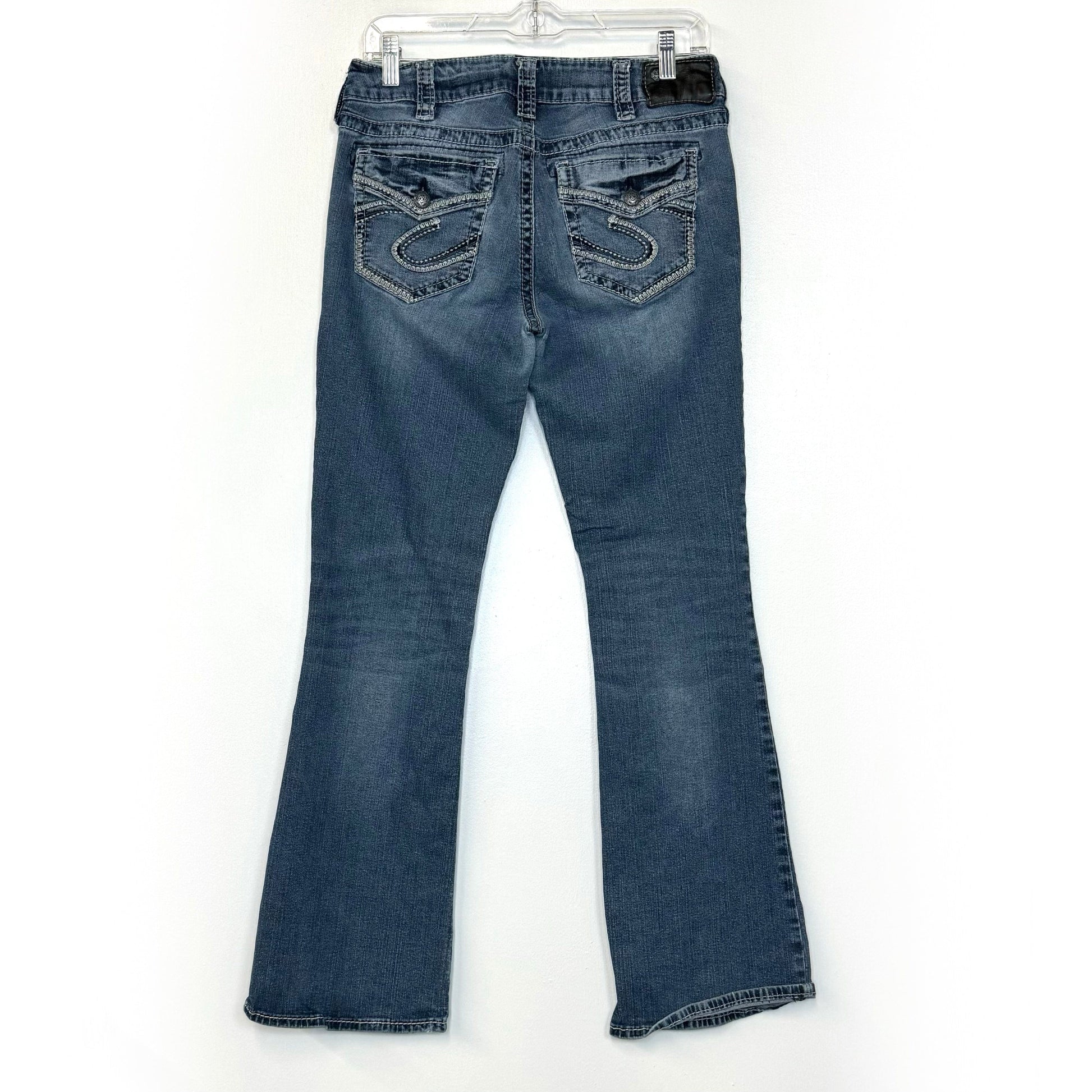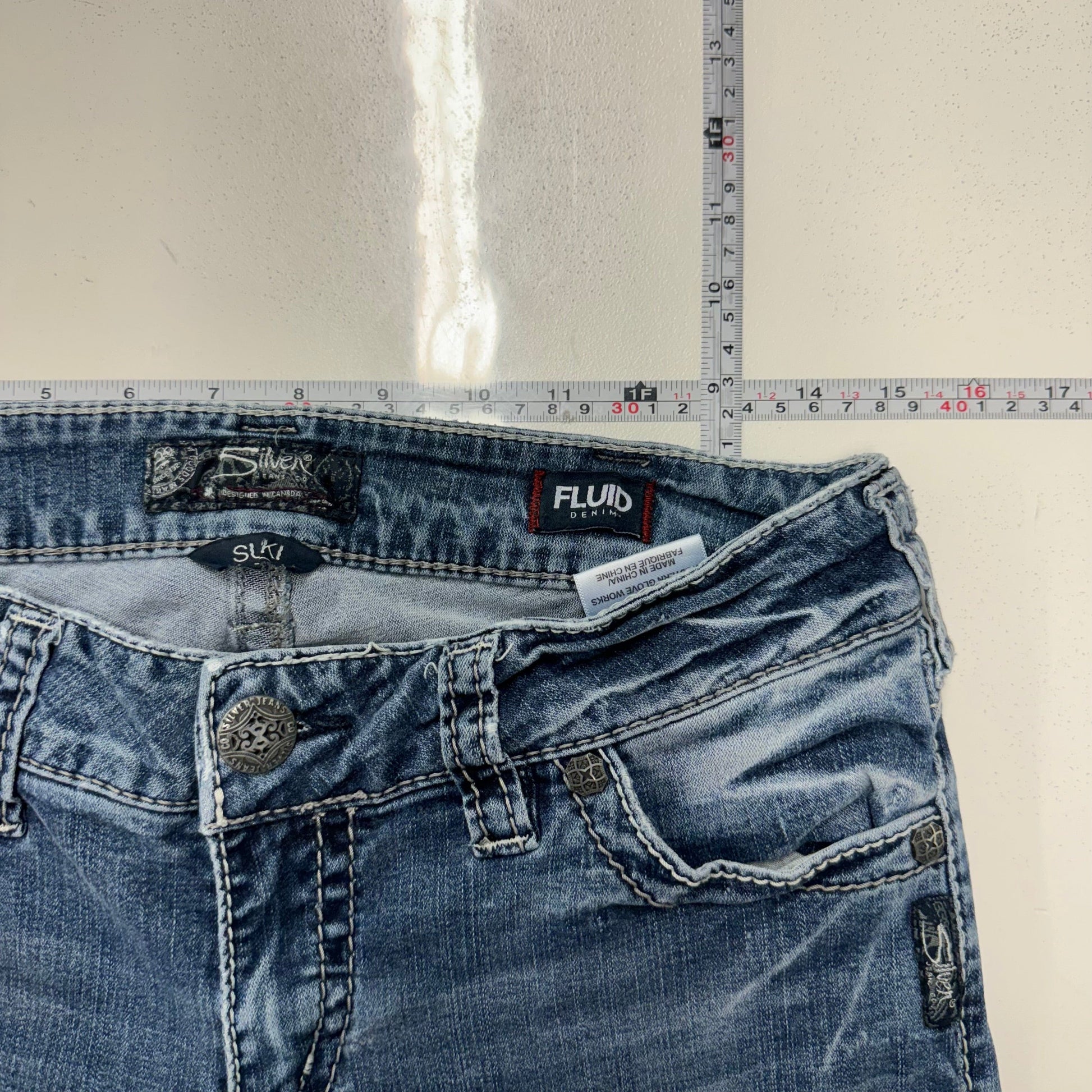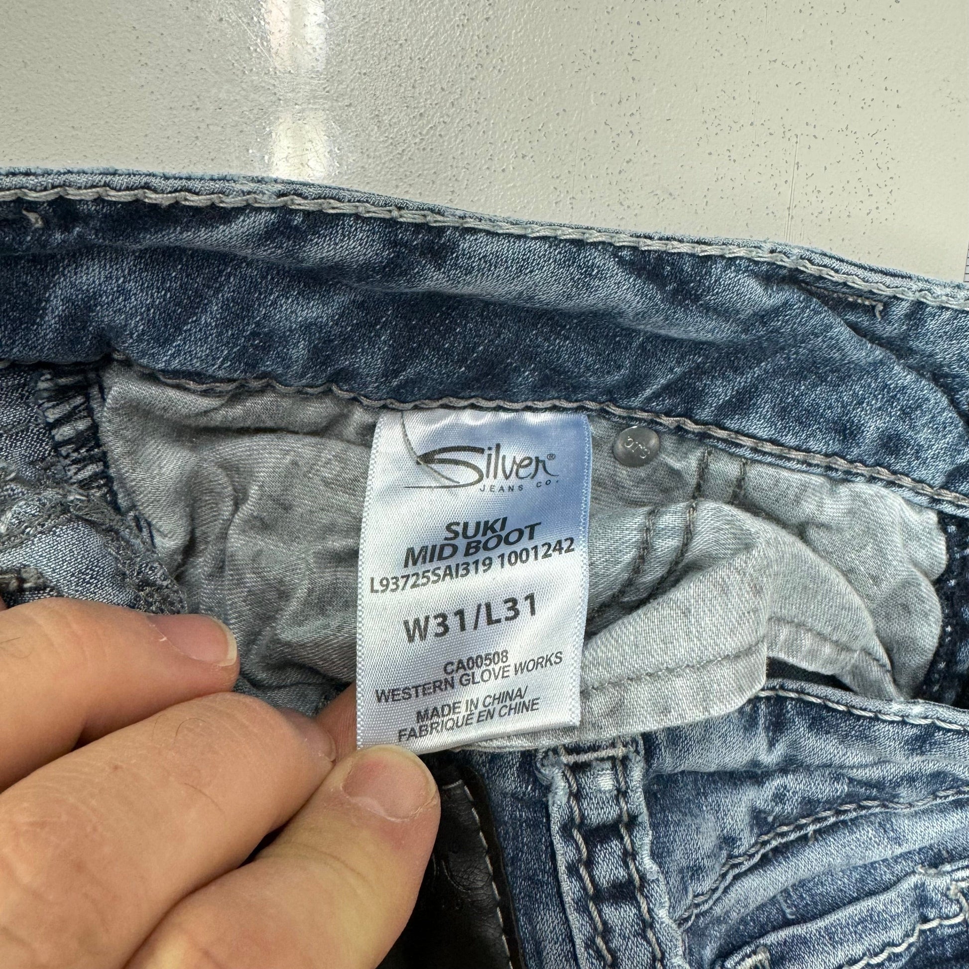 Silver Jeans Suki Mid Boot Fluid Denim – Pre-Owned Quality for Women – Available in Blue – Size 31/31