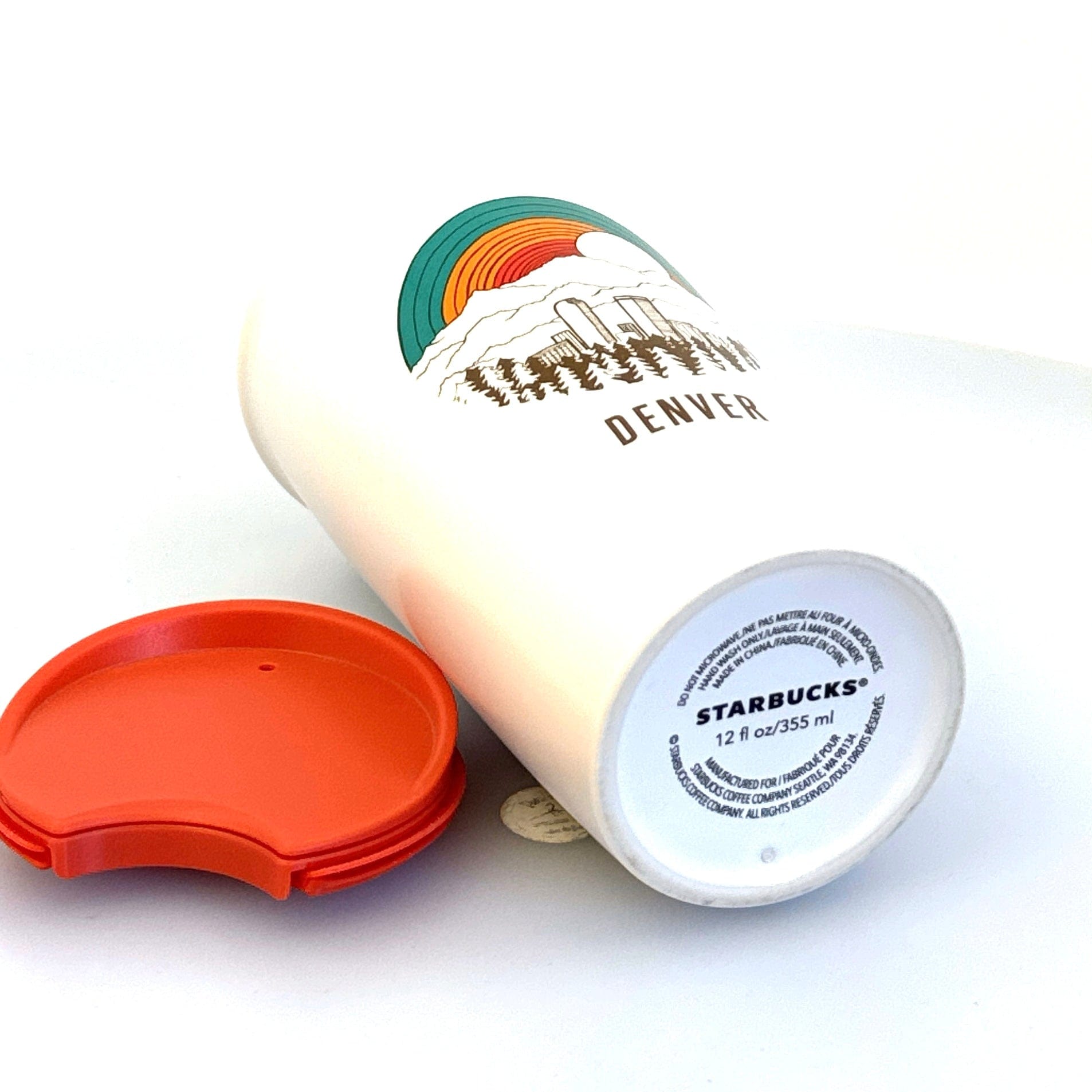 Starbucks | Denver Colorado Rainbow Mug w/Lid | Color: White/Orange | Size: 12 fl oz | Pre-Owned