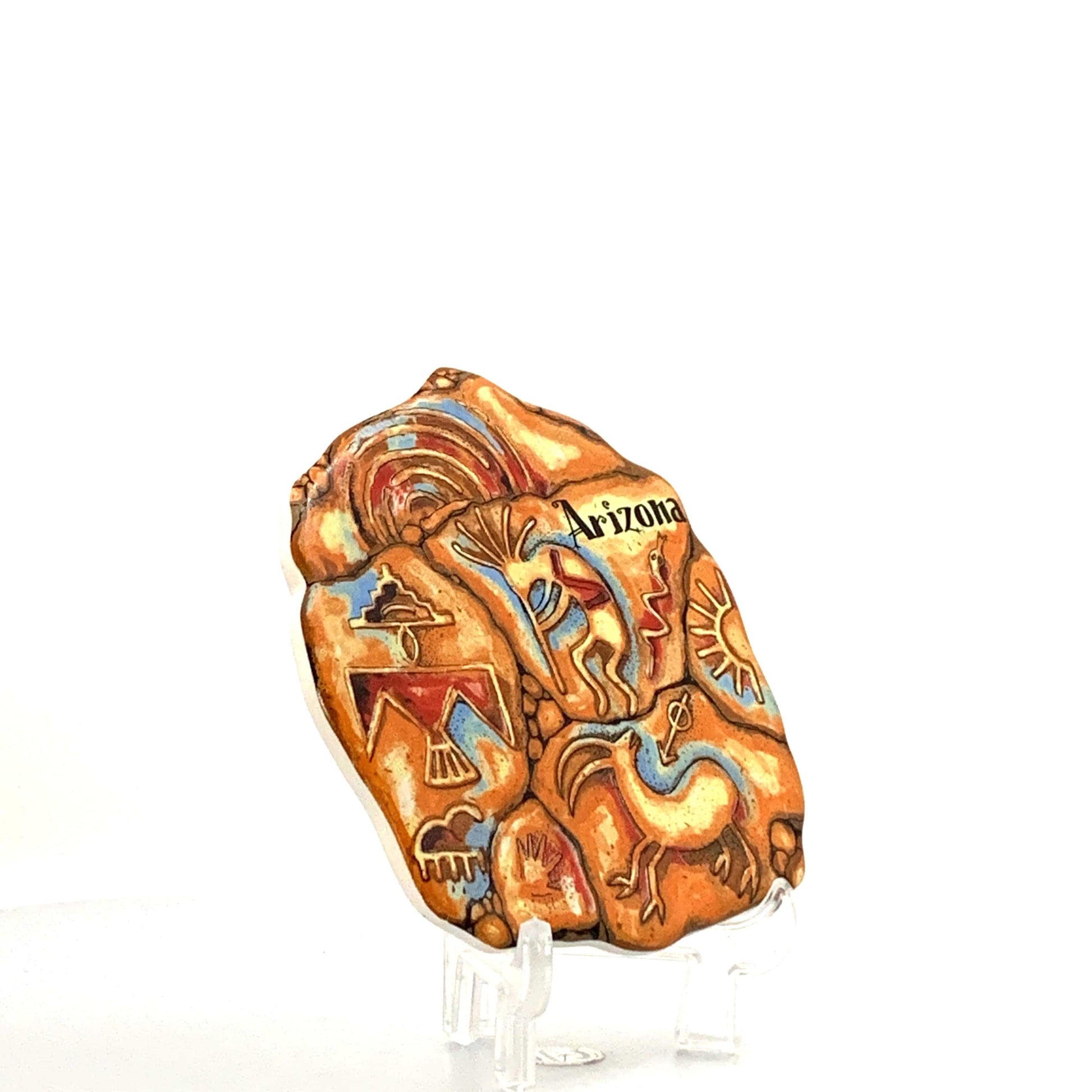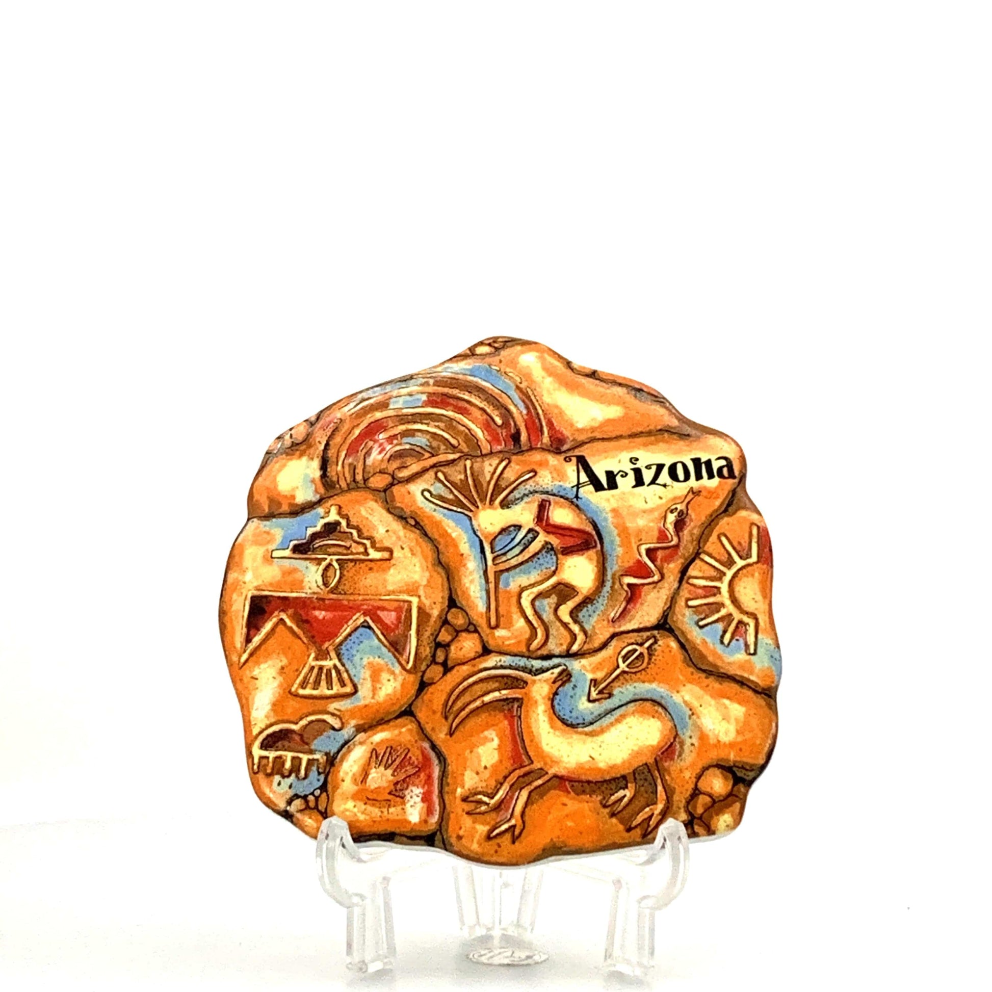 Bring a piece of Arizona's beauty into your home with this collectible trivet. Crafted with care, it showcases the state's iconic landmarks and is perfect for any travel enthusiast. Add a touch of charm to your kitchen or dining area with this unique souvenir.