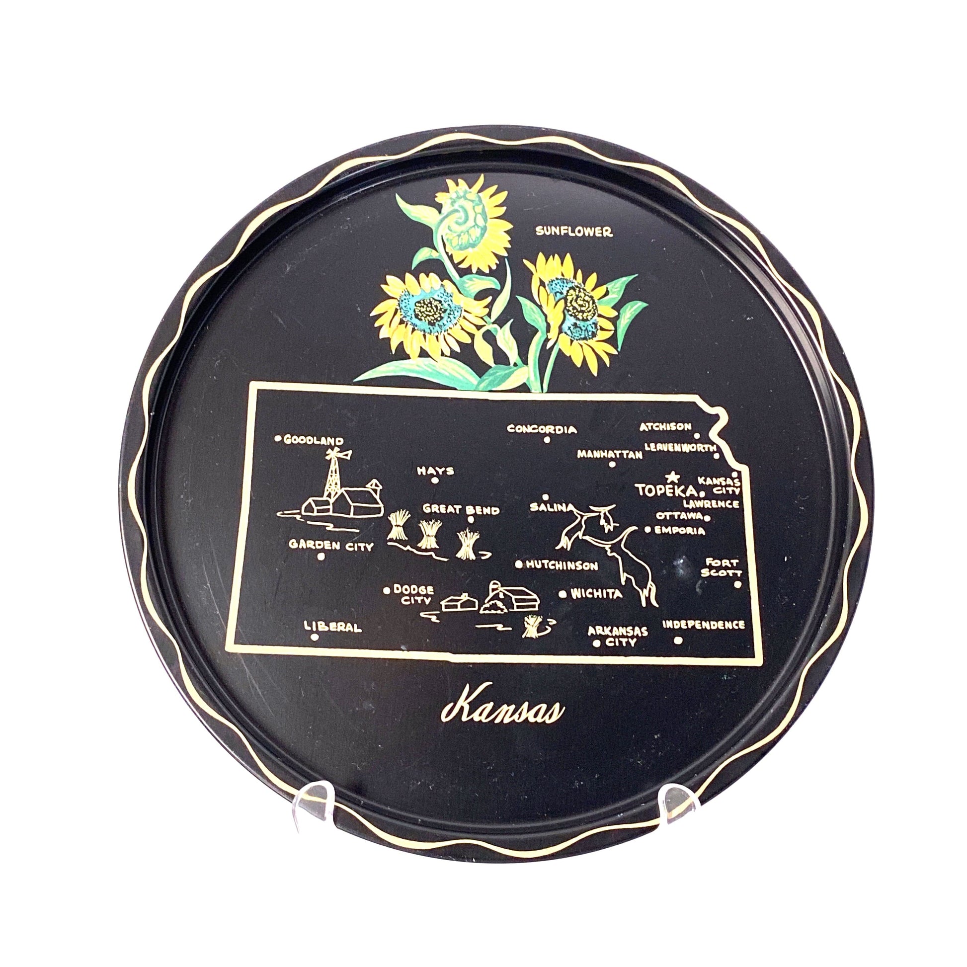 State of Kansas Decorative Serving Tray Black Map Points of Interest