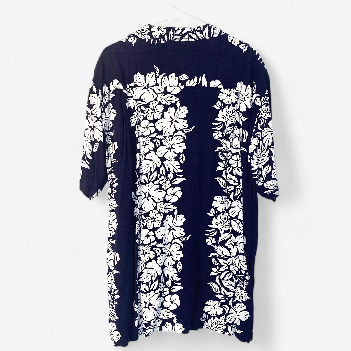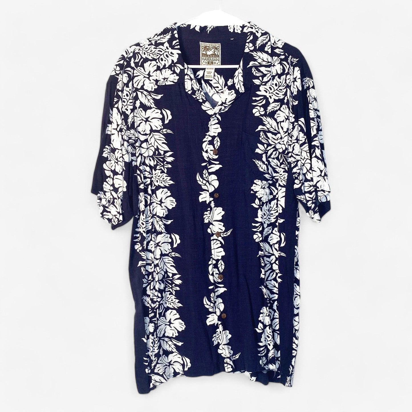 Steve & Barry's Men's Blue & White Floral Hawaiian Shirt - Short Sleeve - Size XL