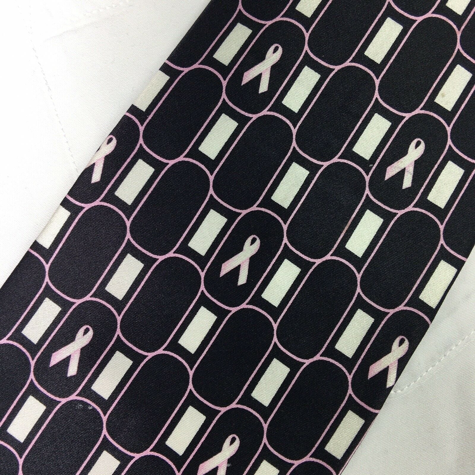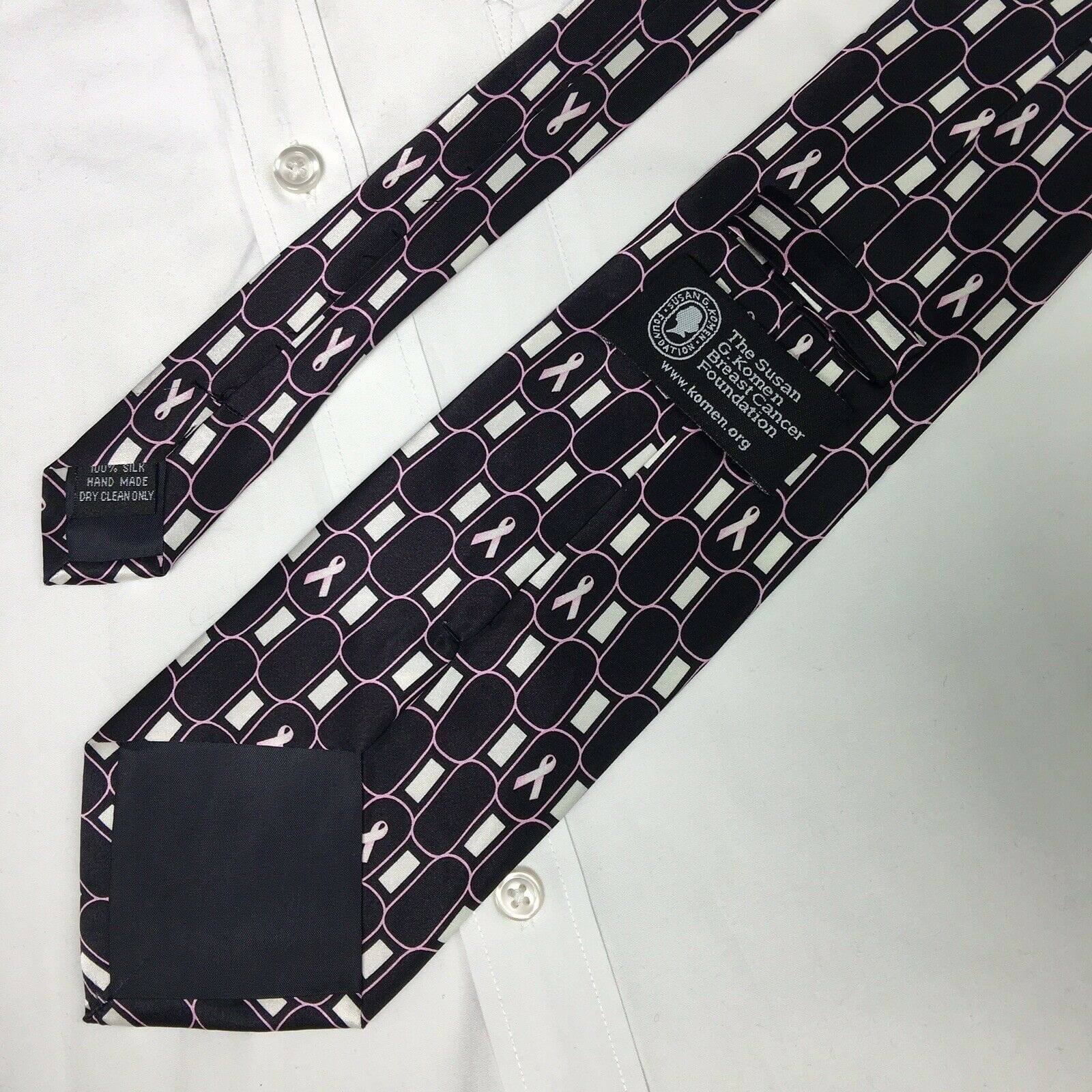 Stand out and show your support with this stylish Susan G. Komen Mens Black W/ Pink Breast Cancer Awareness Silk Necktie. Made with 100% silk, this tie is not only fashionable but also supports a great cause. Join the fight against breast cancer and make a statement with this very good condition necktie.