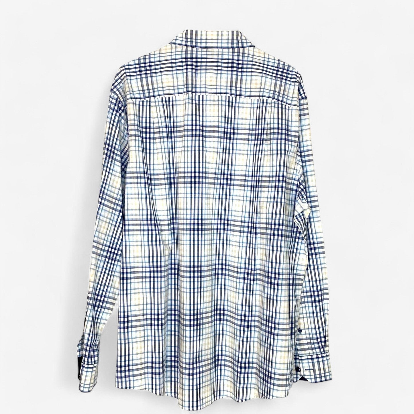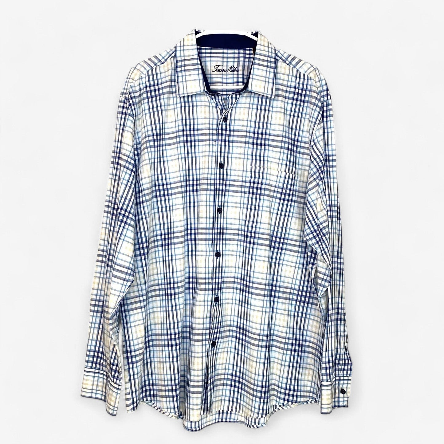Tasso Elba Men's White and Blue Plaid Button-Up Long Sleeve Shirt - Size XL - Pre-Owned