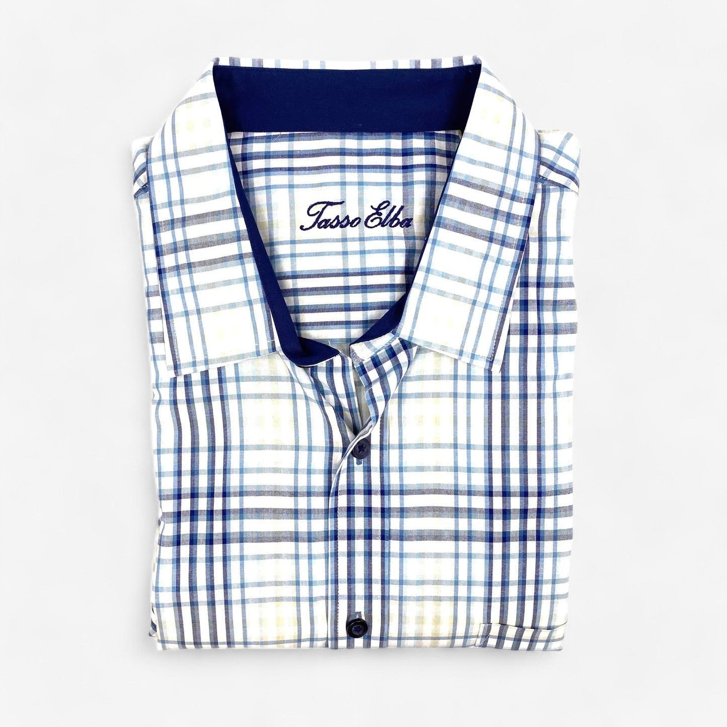Tasso Elba Men's White and Blue Plaid Button-Up Shirt - Size XL