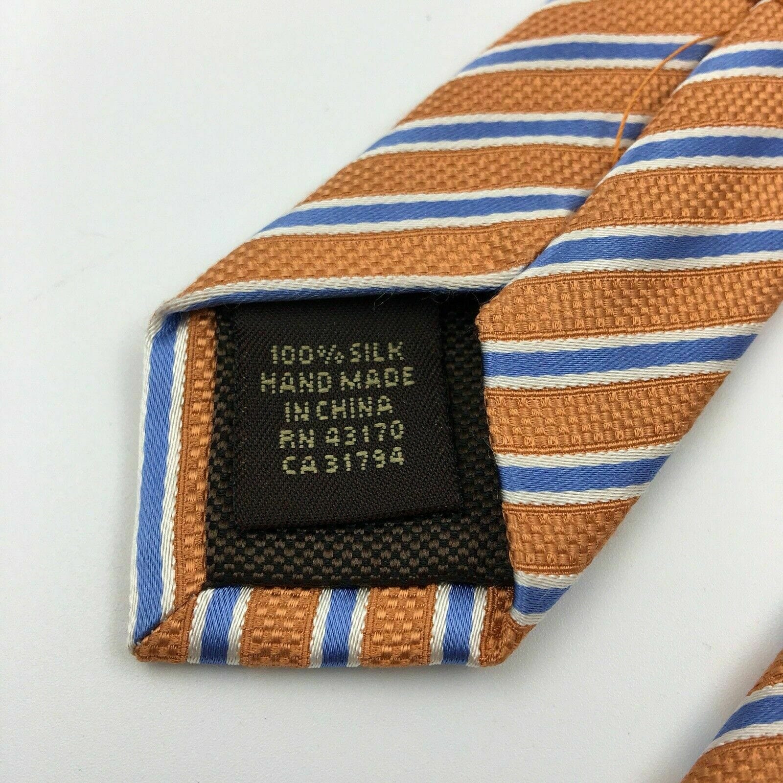 Tasso Elba Spa Mens Pastel Orange And Blue Striped 100% Silk 58” Necktie