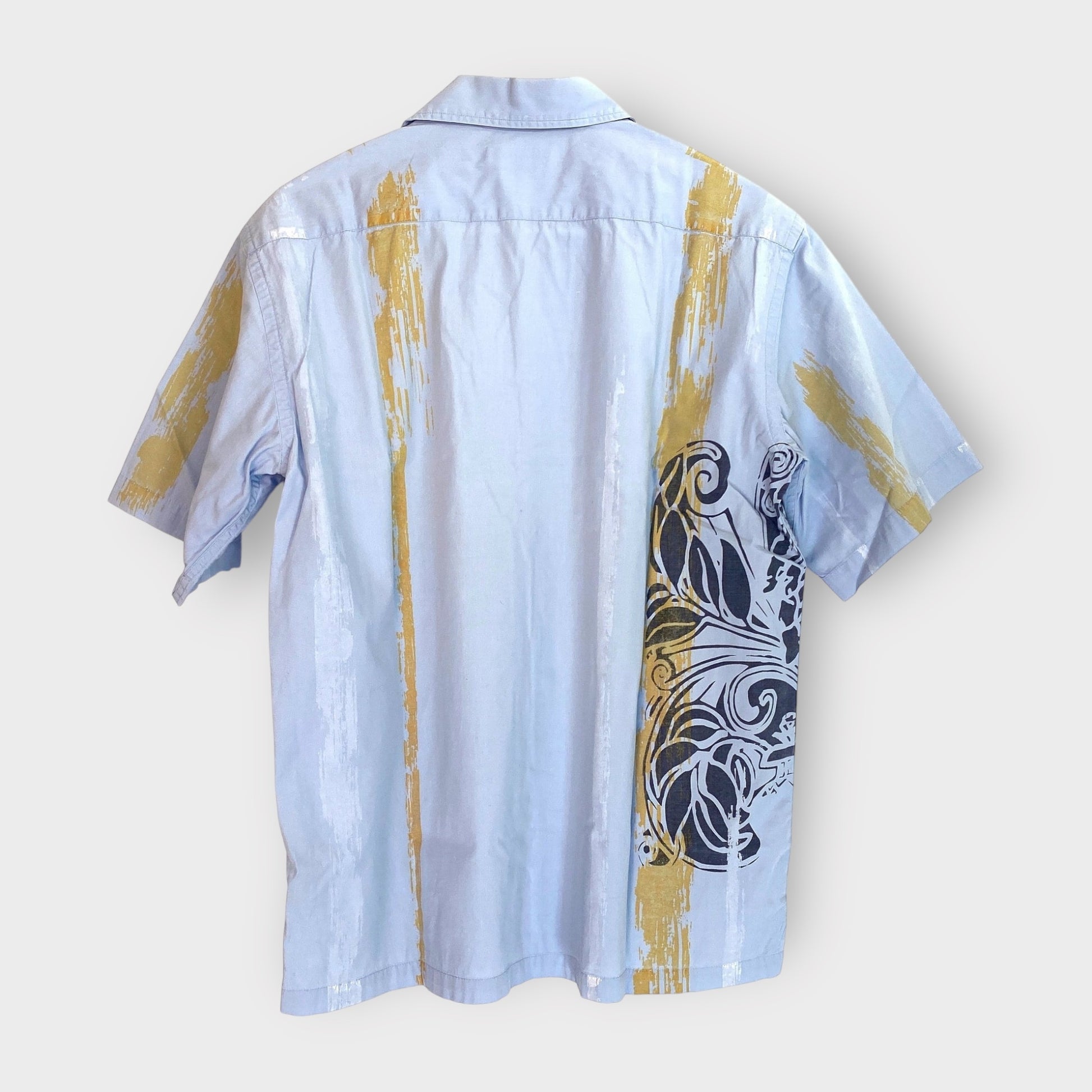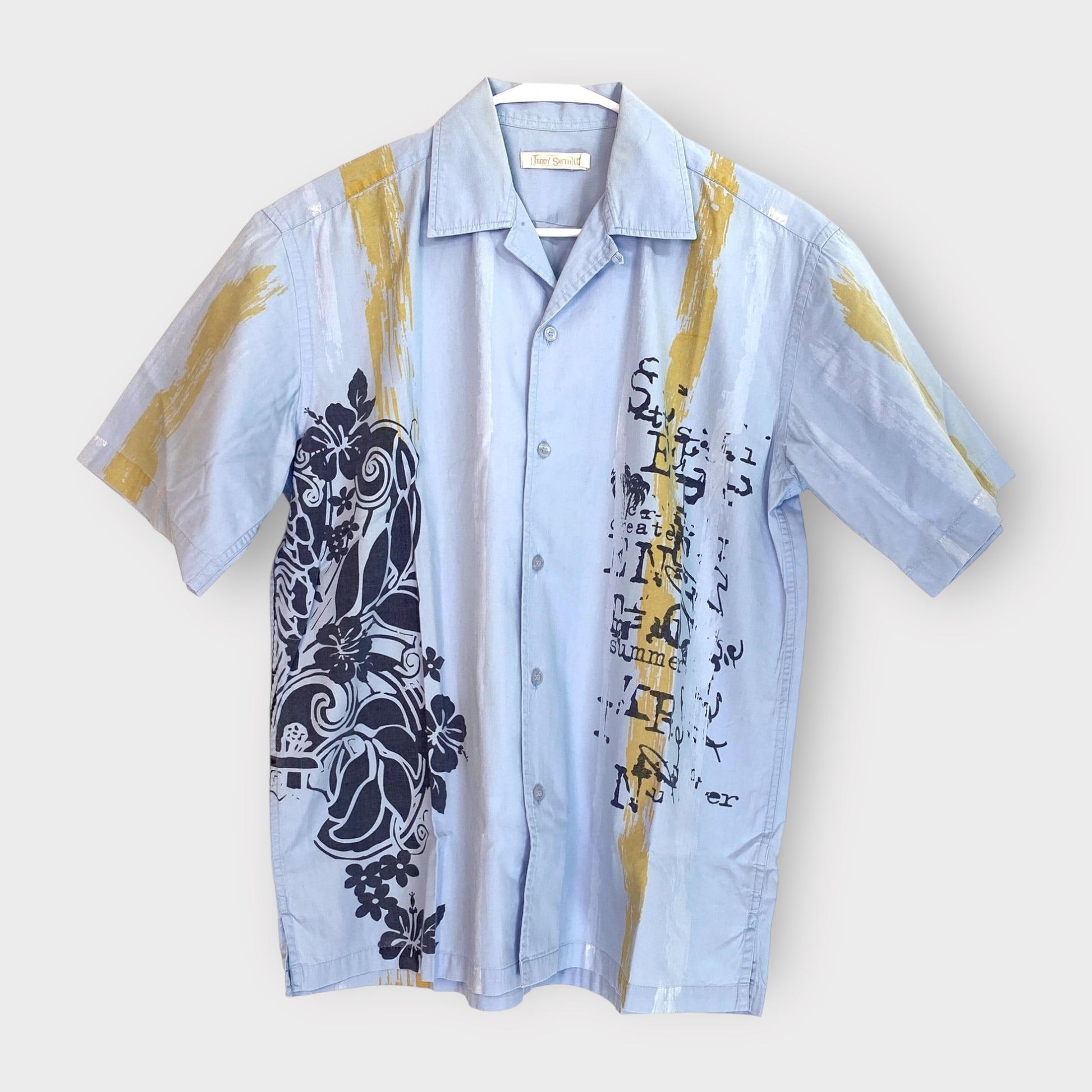 Teddy Smith Men's Blue Floral & Script Short Sleeve Club Shirt - Size M