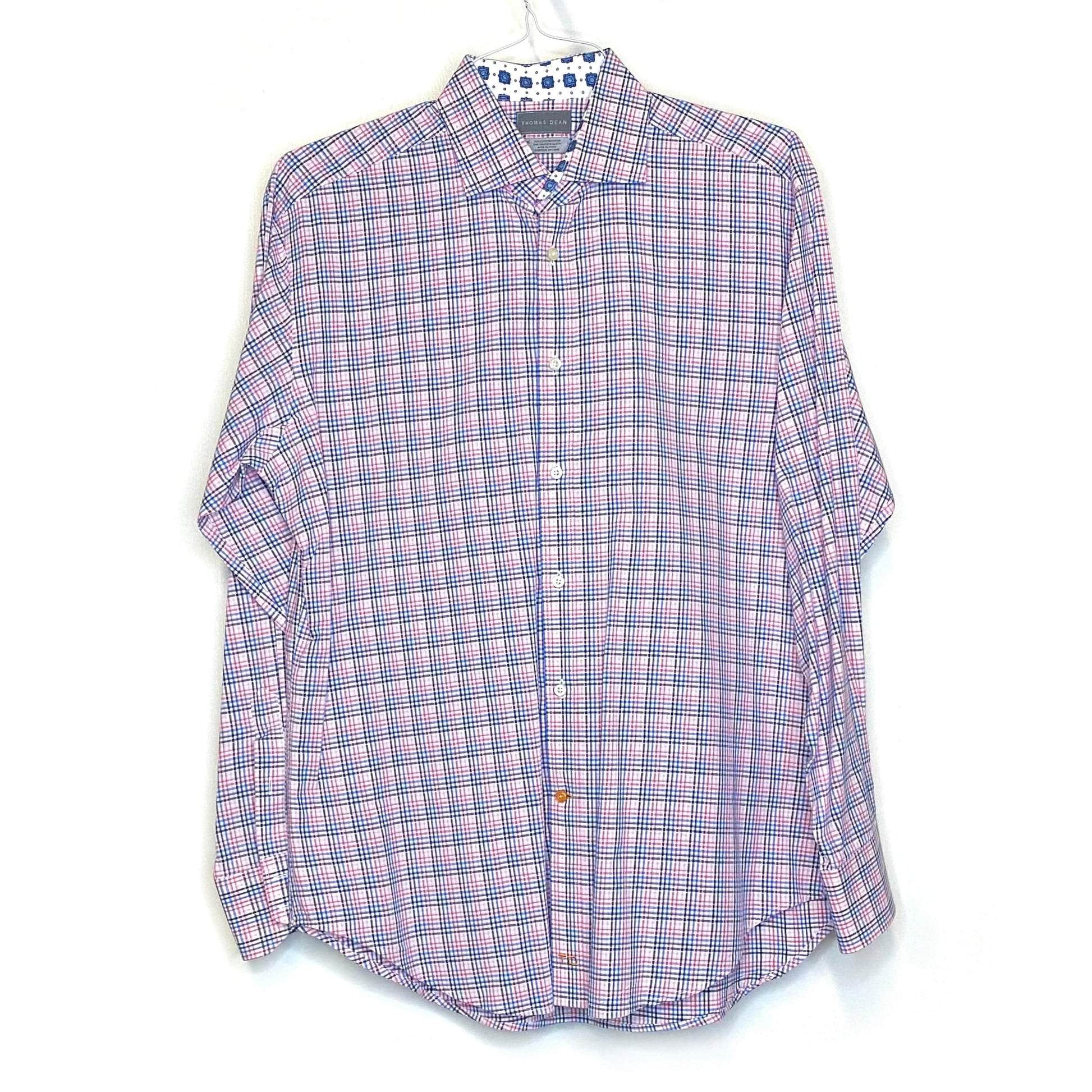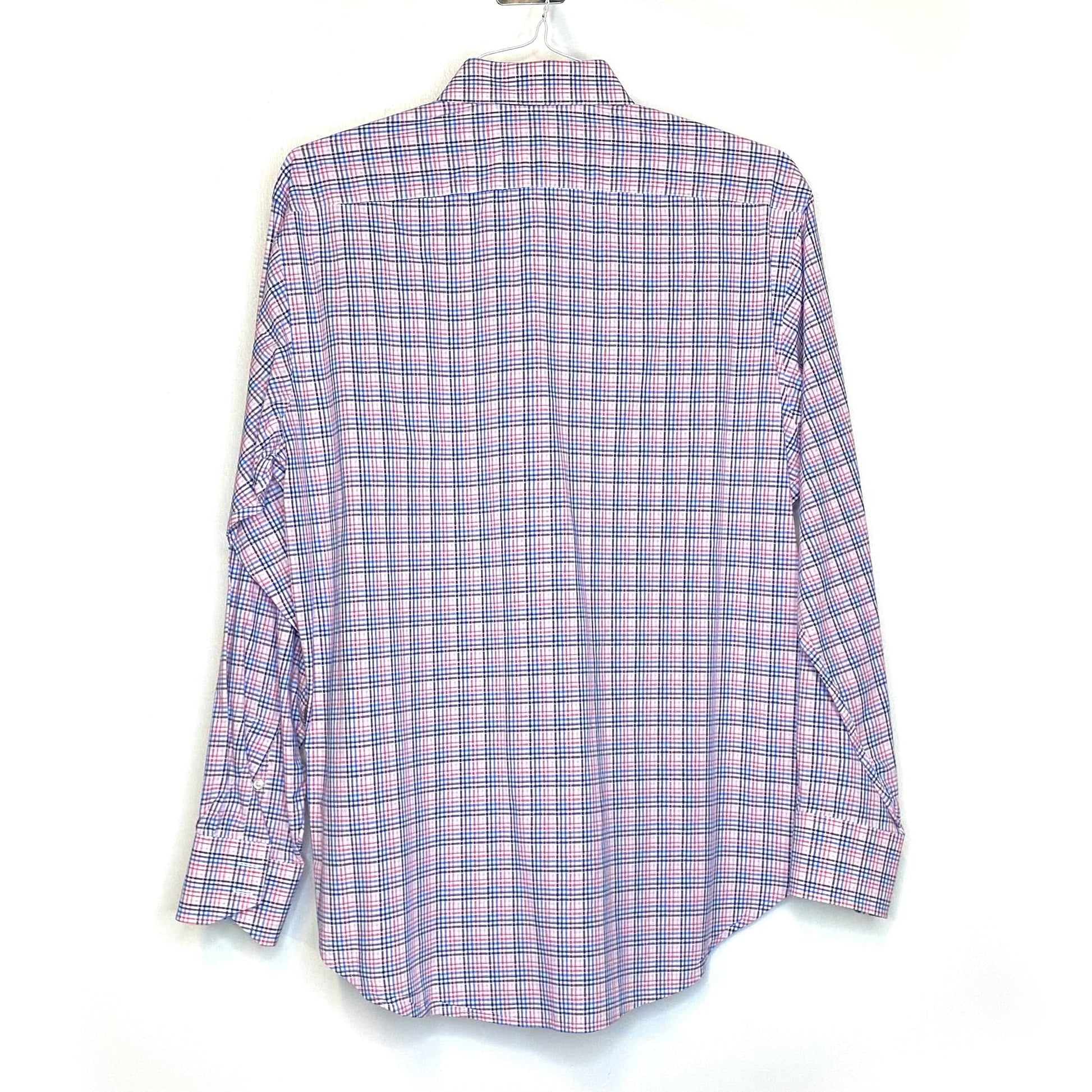 Thomas Dean Men's Blue and Orange Plaid Dress Shirt - Size M - Long Sleeve
