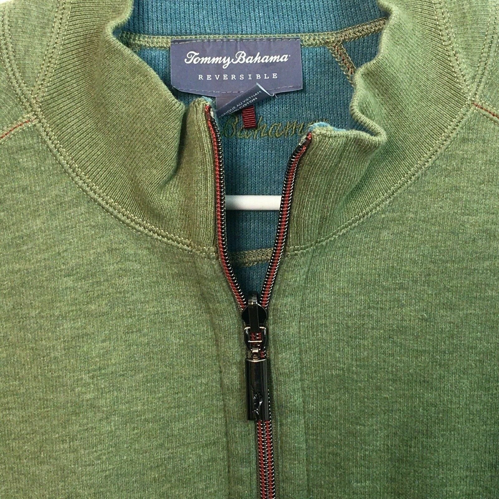 Tommy Bahama Men's 1/4 Zip Pullover Sweater - Reversible Green/Blue - Size L - Pre-Owned