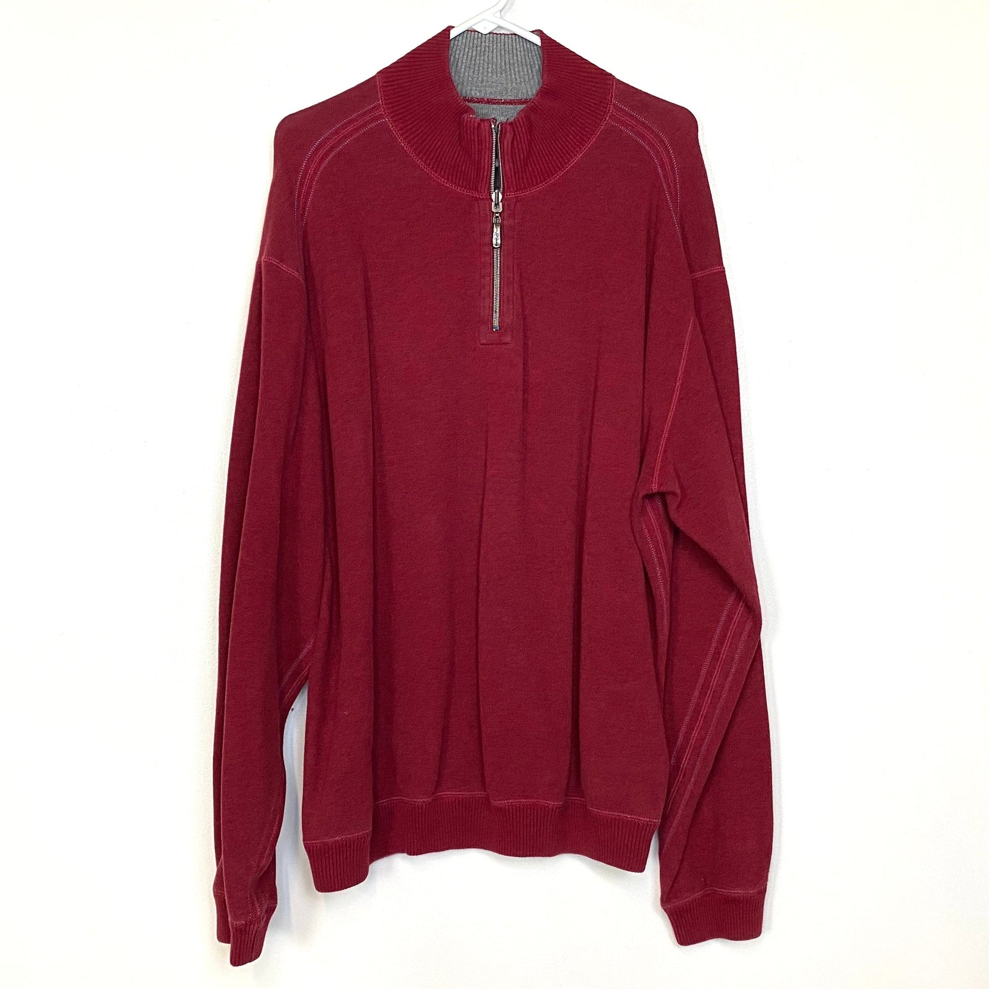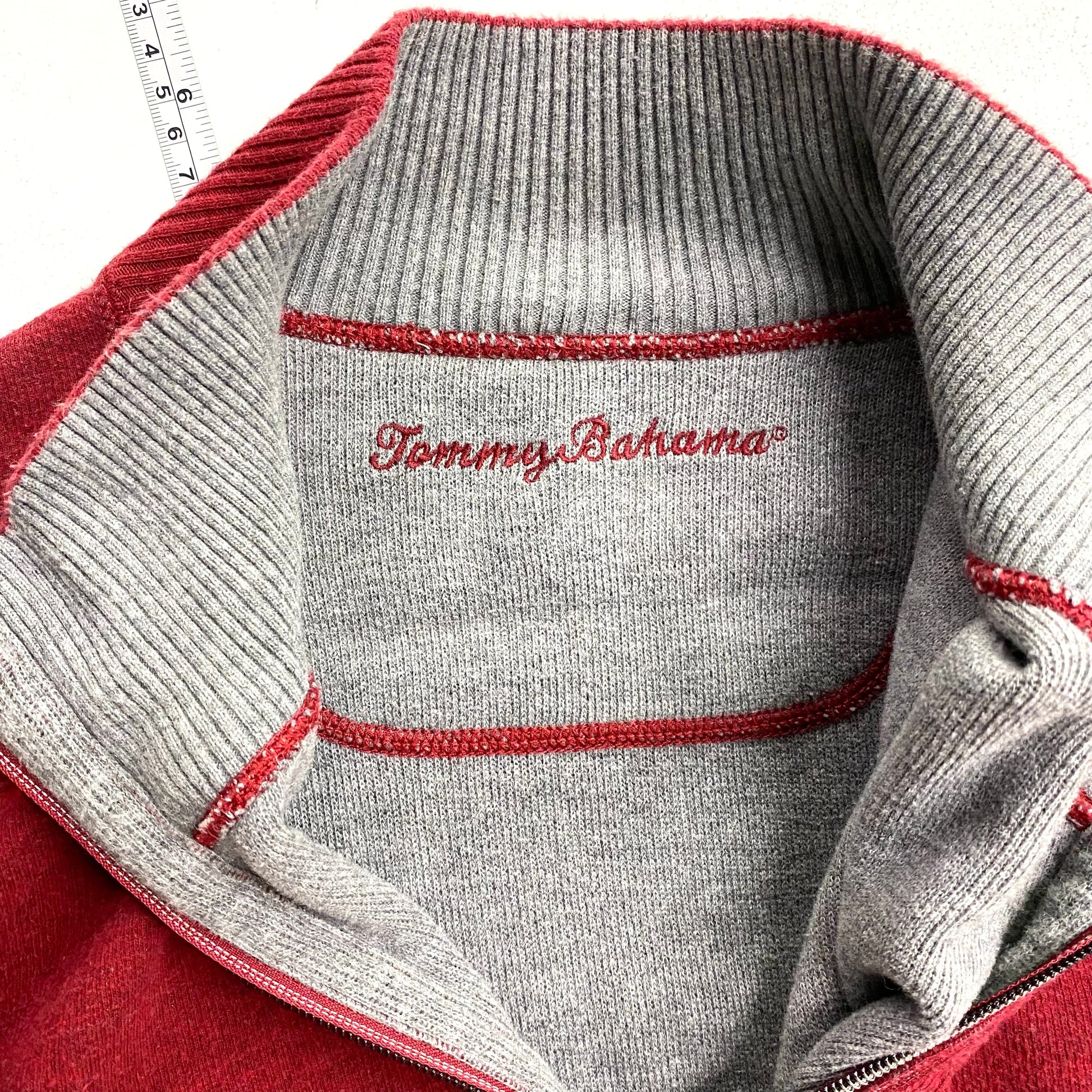 Tommy Bahama Mens Full Zip Up Sweater Burgundy Red, 2XL Pre-Owned