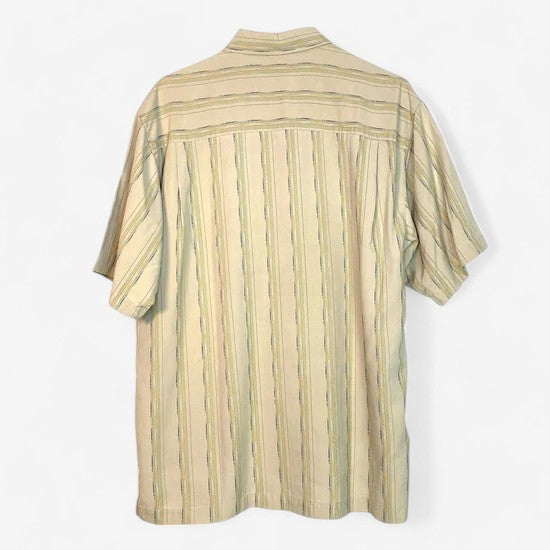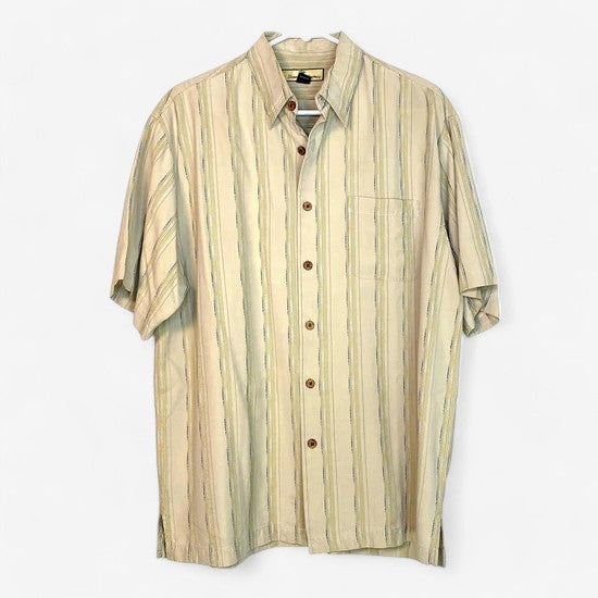 Tommy Bahama Men's Size M Khaki Textured Stripe 100% Silk Short Sleeve Shirt