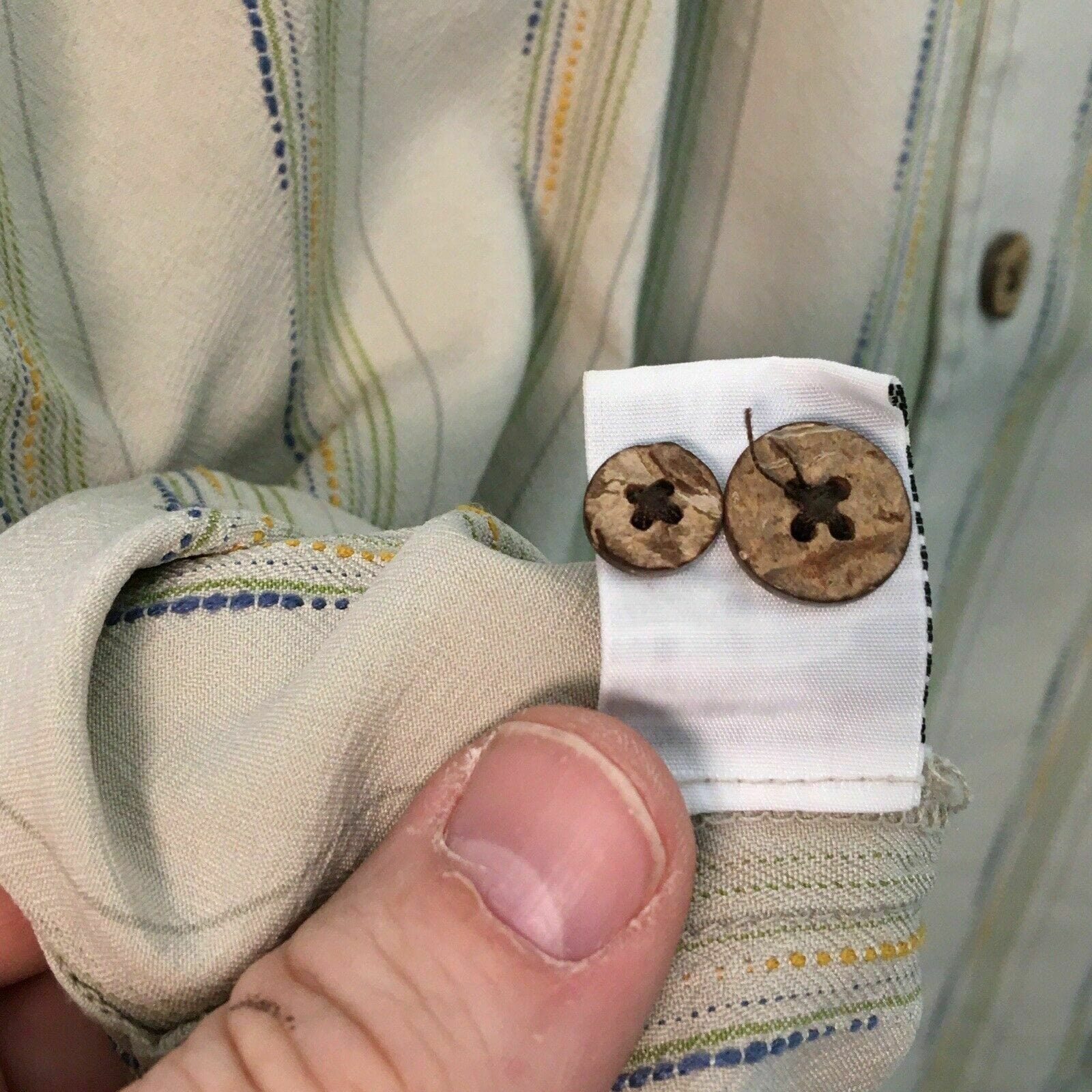 Elevate your casual wardrobe with this Tommy Bahama Men's Size M Khaki Textured Stripe Short Sleeve Shirt, crafted from luxurious 100% silk. Perfect for warm weather occasions, this shirt combines comfort and sophistication.