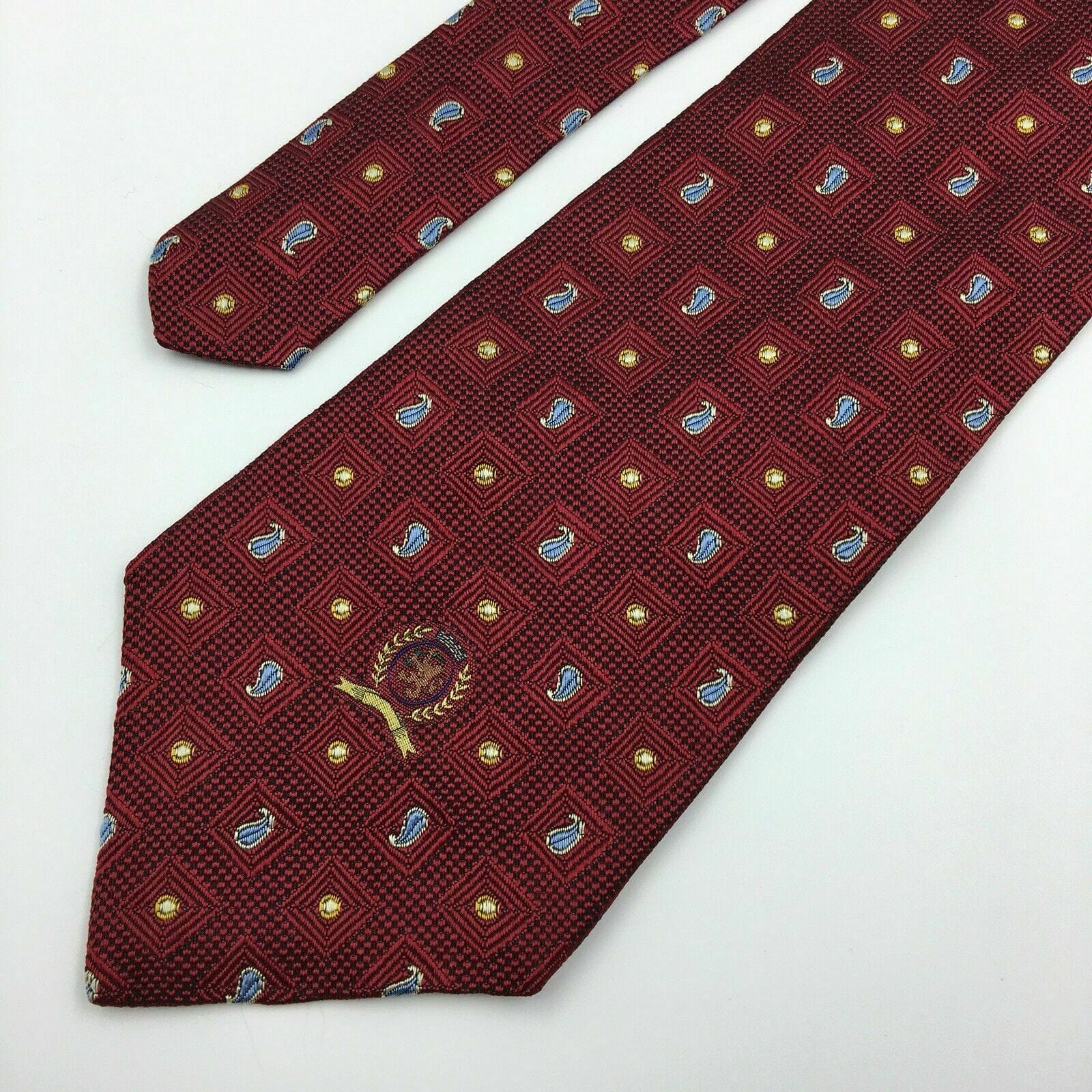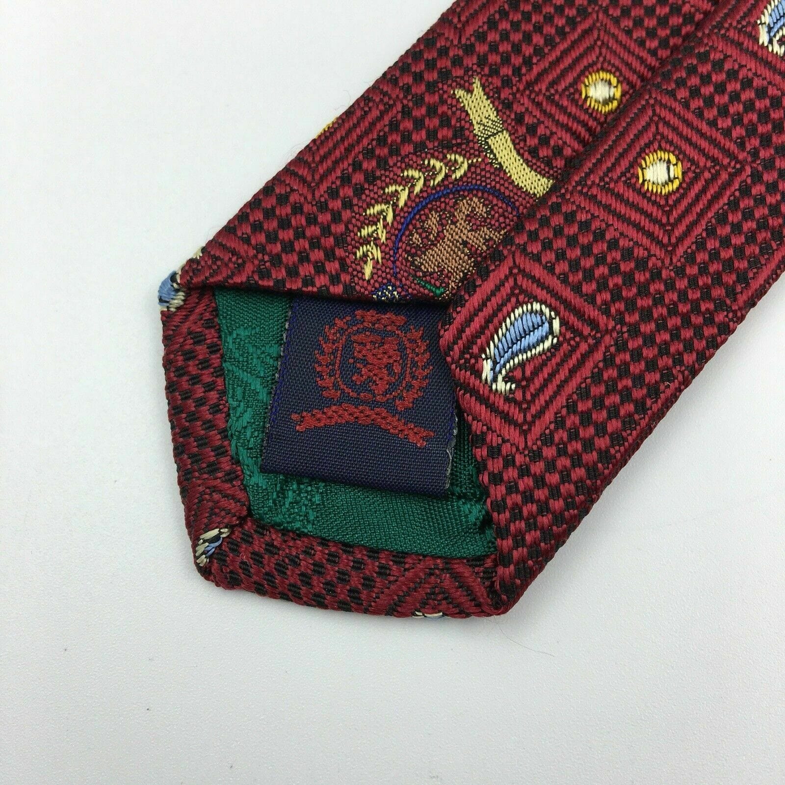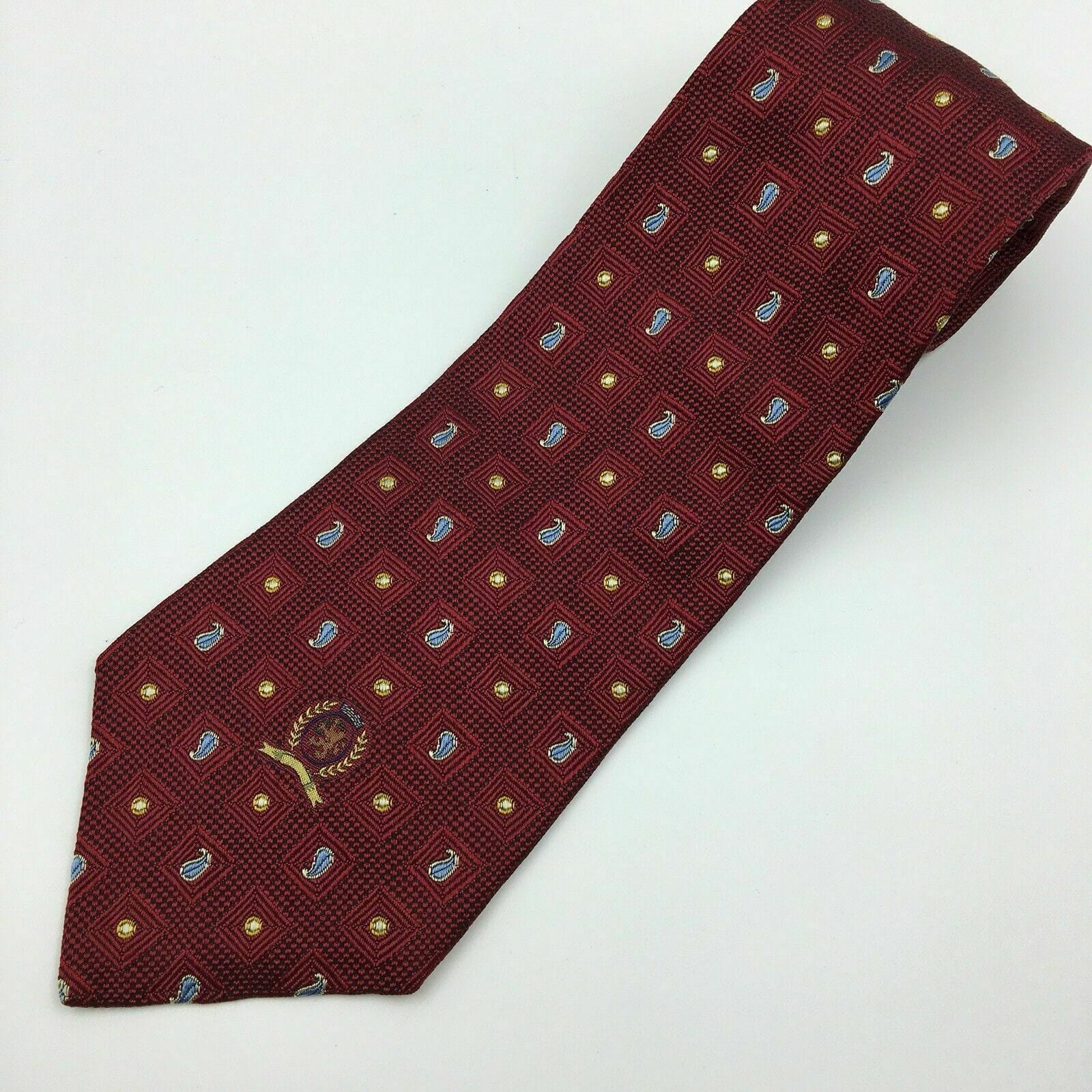 Tommy Hilfiger Mens Red Paisley Logo Square Pattern 100% Silk Neck Tie 58” X 4”