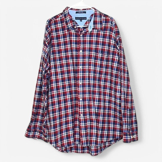 Tommy Hilfiger Men's Red, White, and Blue Flannel Button-Up Shirt - Size XXL - Long Sleeve