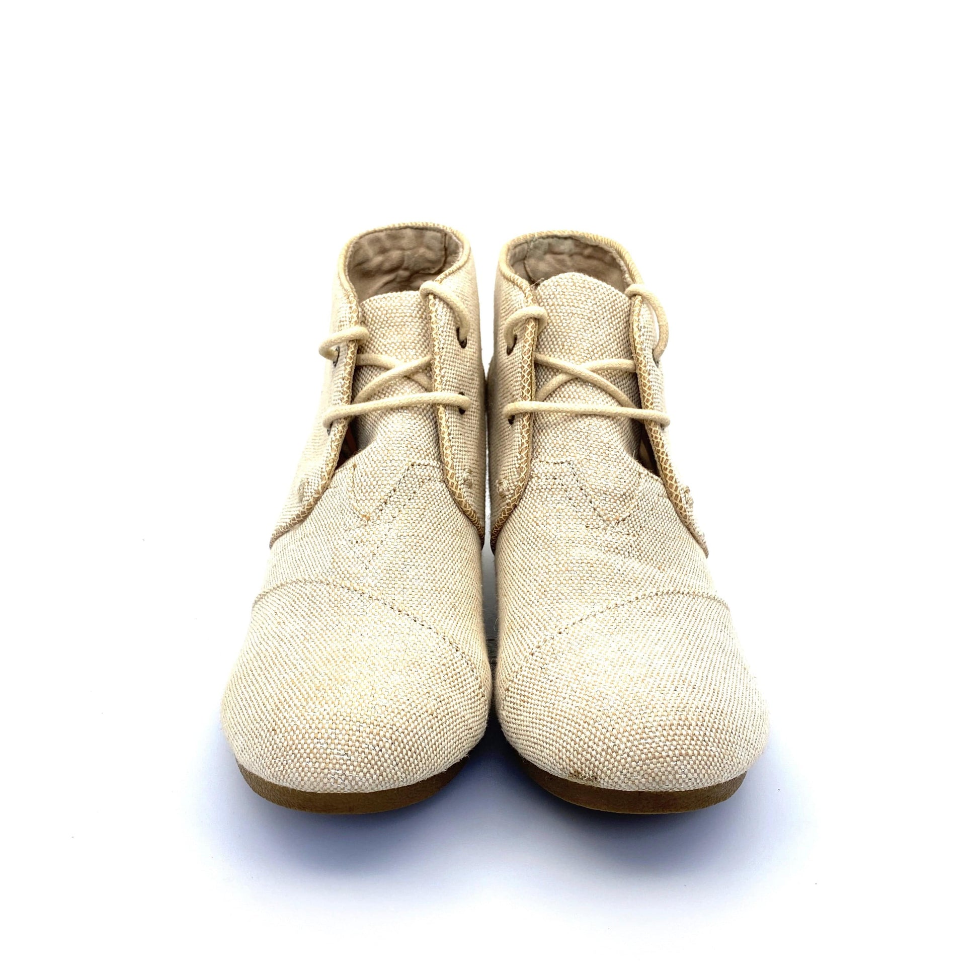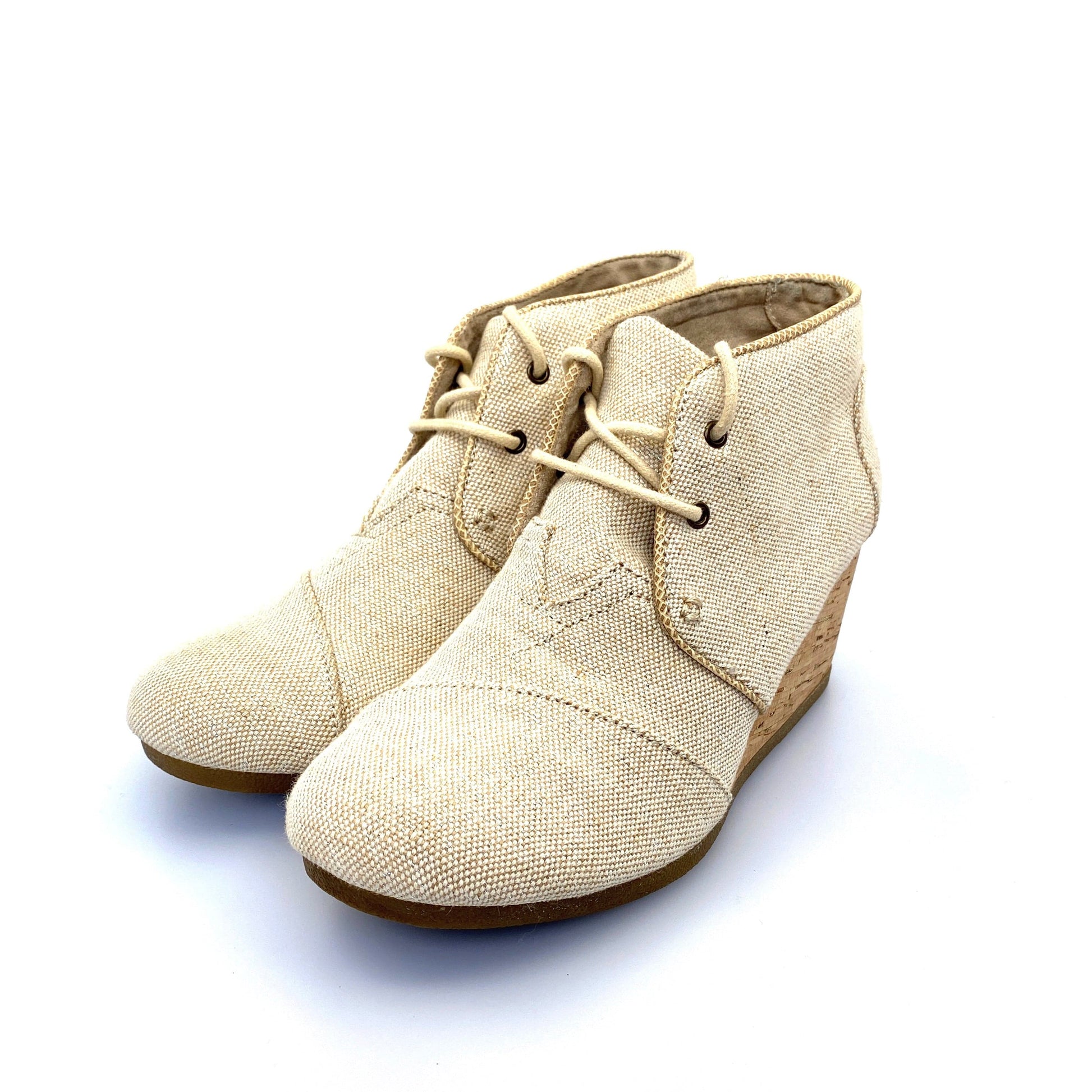 Toms Womens Desert Wedge Ankle Bootie Silver-Beige Canvas Cork Lace-Up
