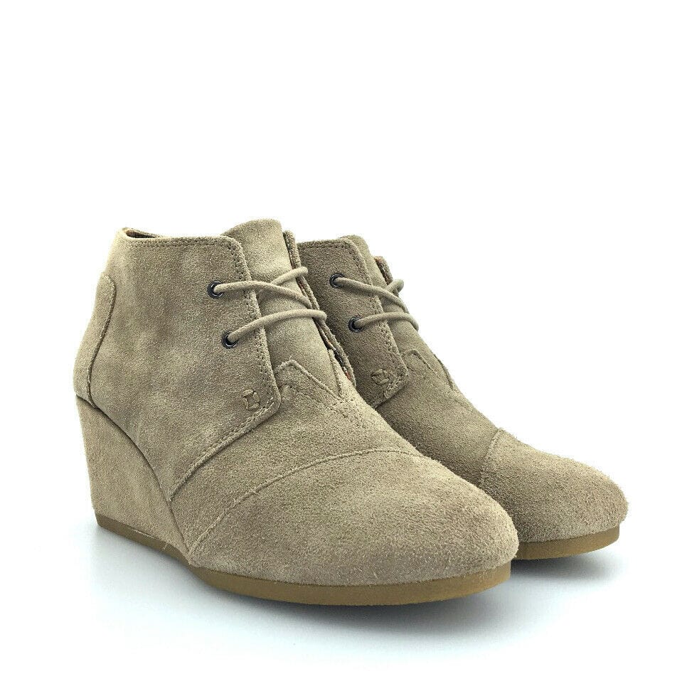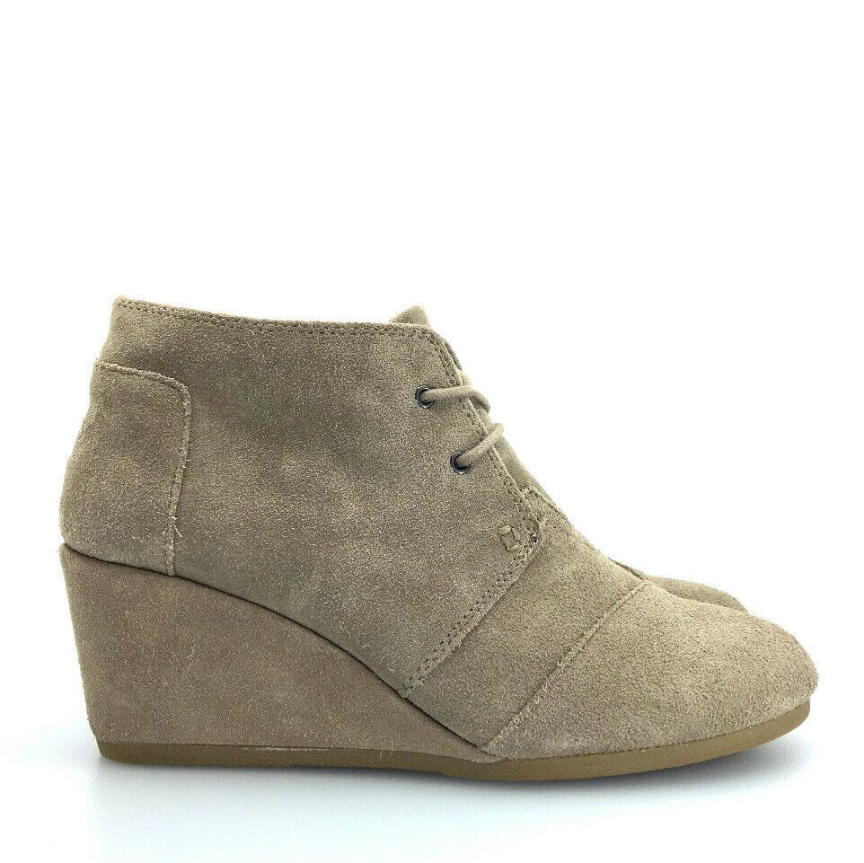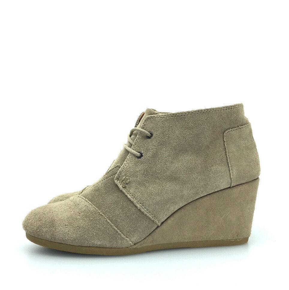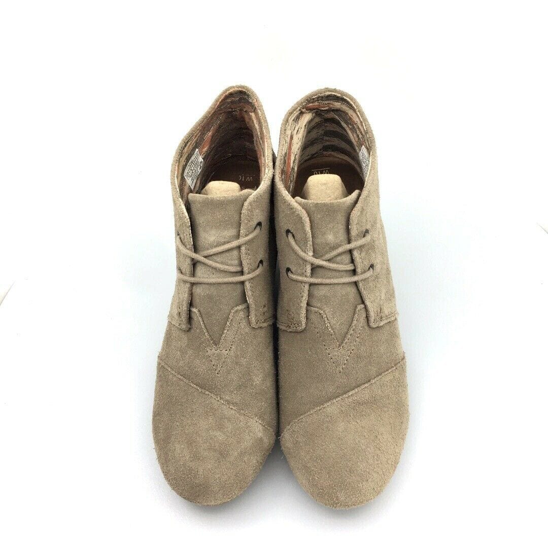 Toms Womens Shoes Size 10 Beige Suede Lace Up Wedge Booties