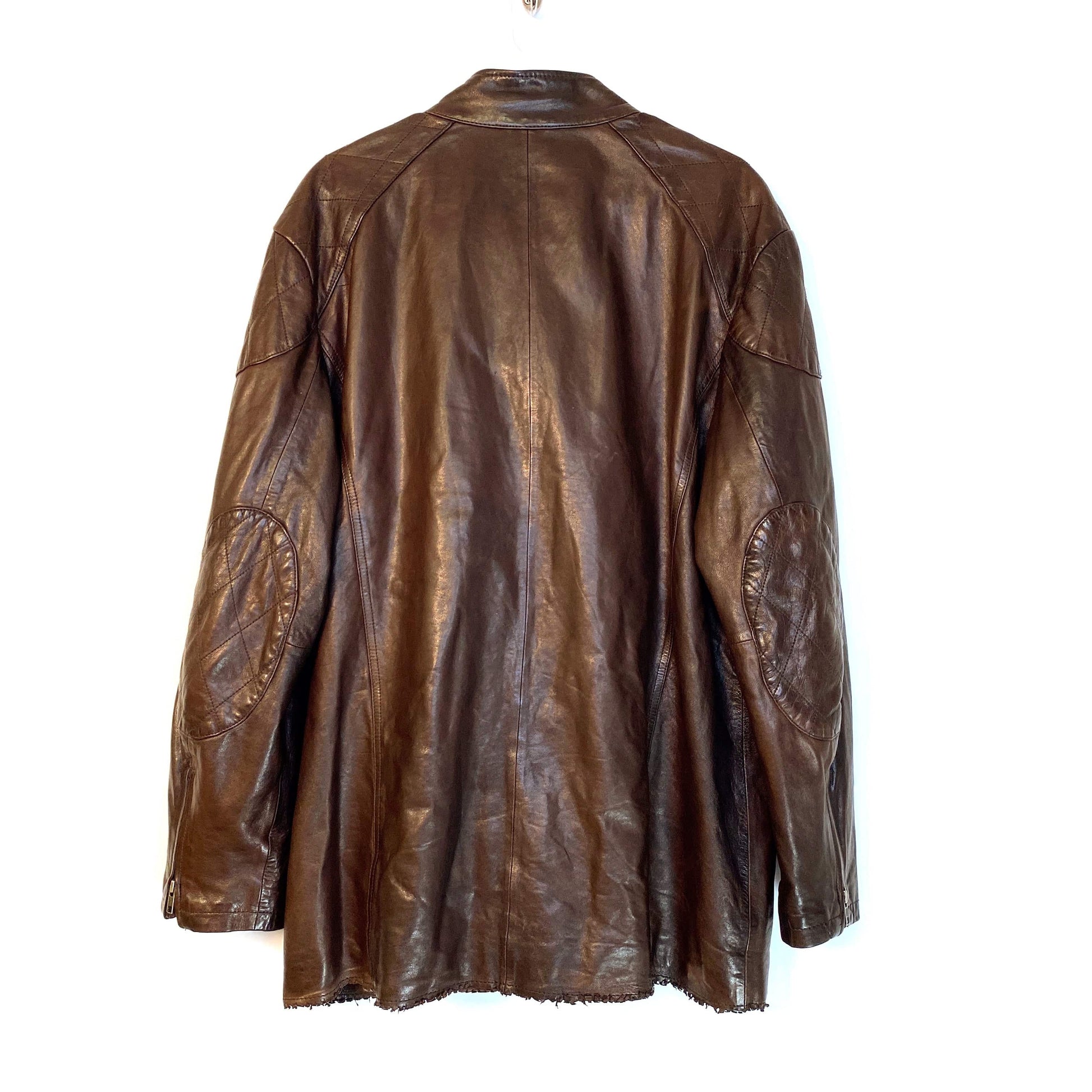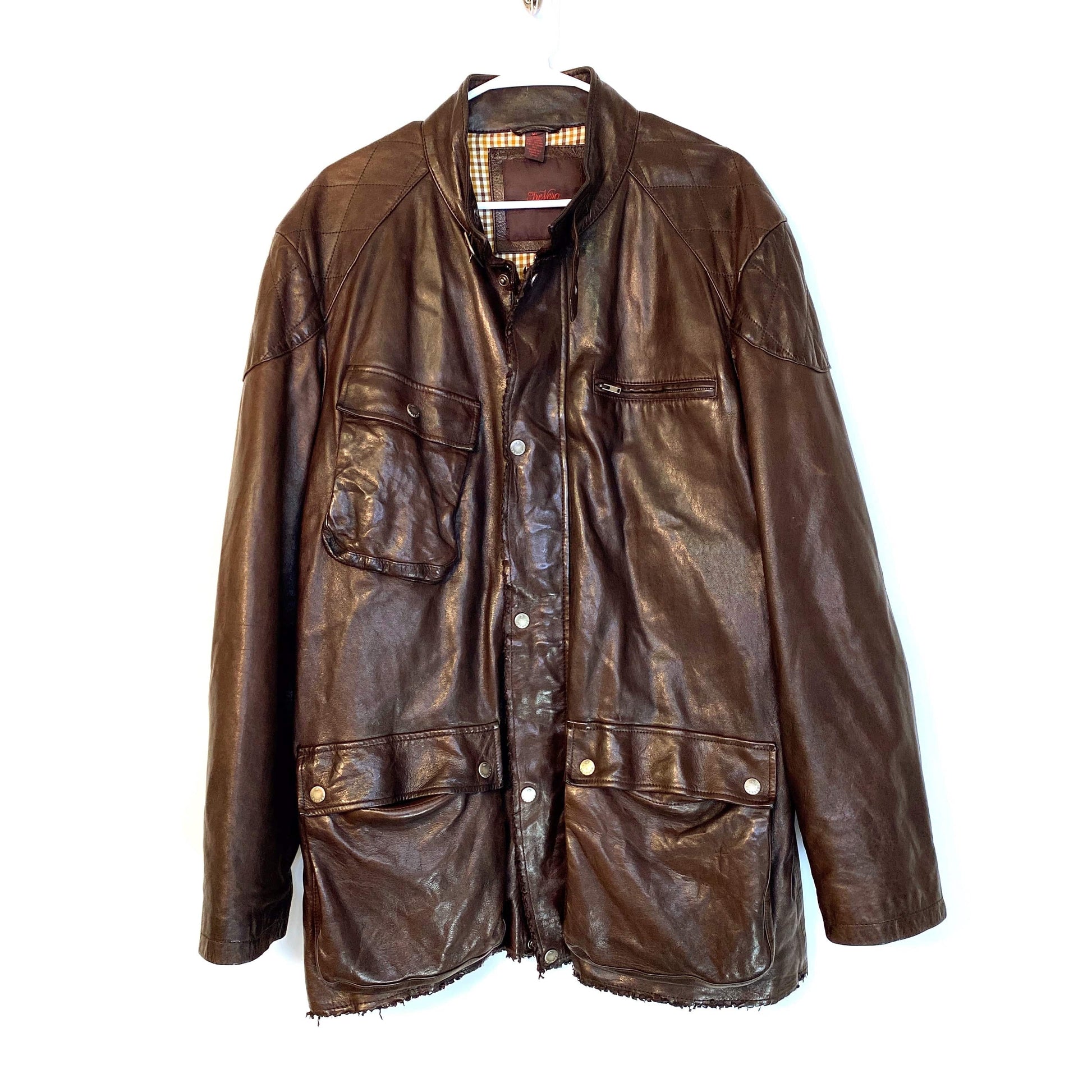 Tre Vero Mens Size XL Brown Leather Biker Jacket Zip-Up L/s