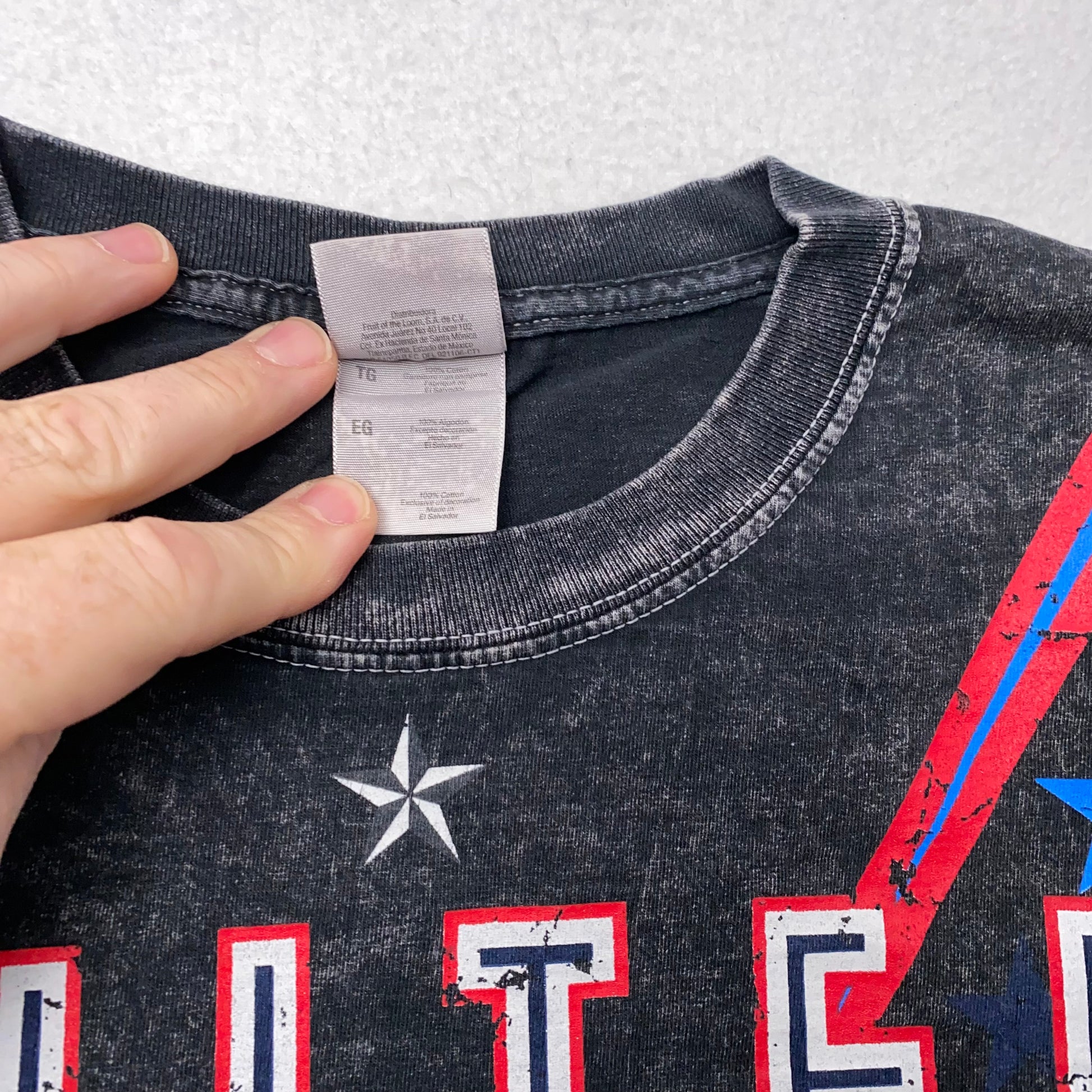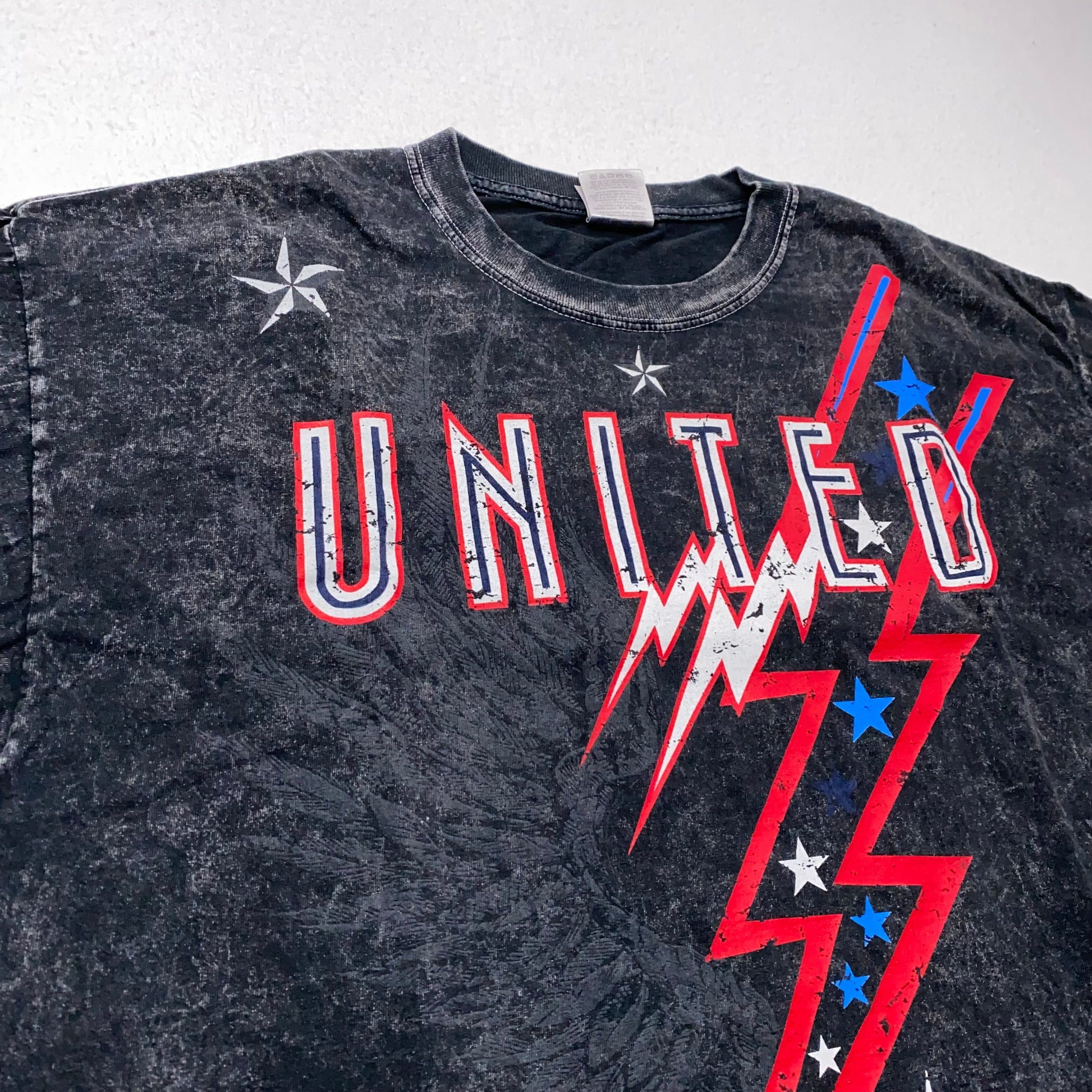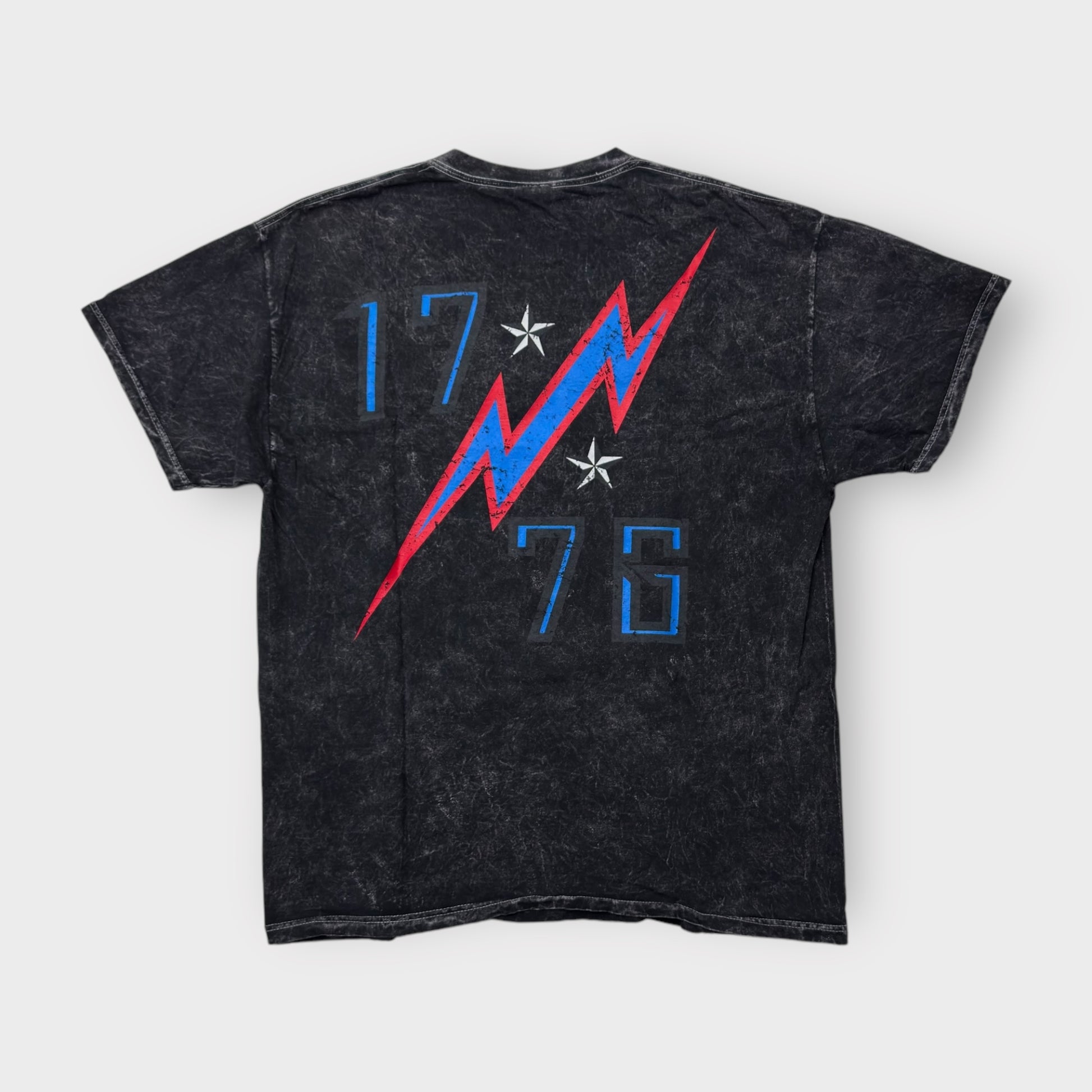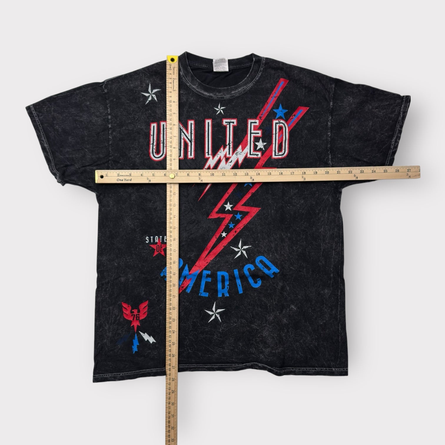 United States of America Graphic T-Shirt - Black with Lightning and Stars - Size Large