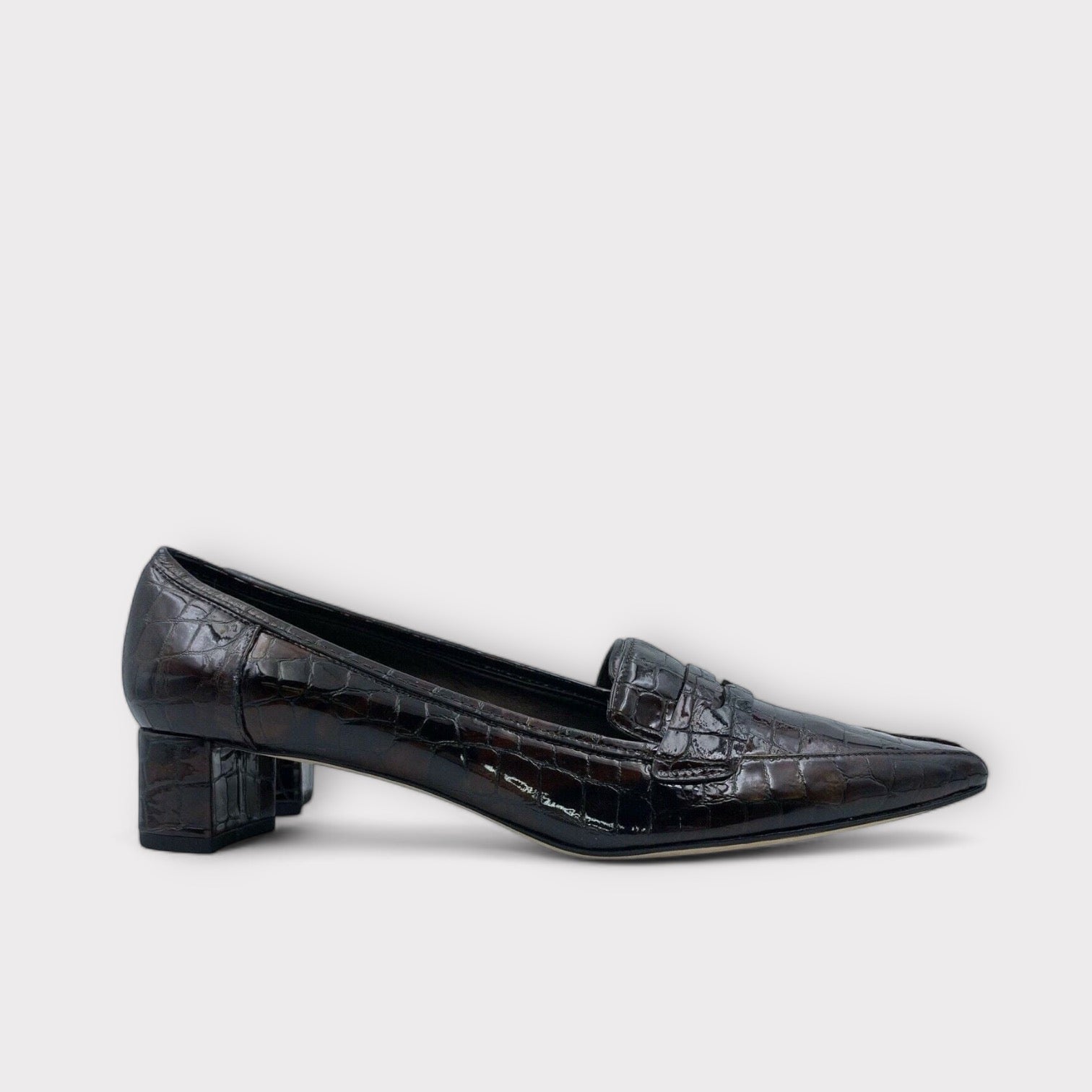 Step into elegance and comfort with the VANELi Helyet Heels, designed for the modern woman who values both style and practicality. Crafted from luxurious patent leather in a rich Tmoro Brown, these croc embossed pumps are perfect for any casual outing or office wear. The unique texture and glossy finish not only elevate your outfit but also provide a sophisticated touch that turns heads. Experience the perfect blend of fashion and function with every step you take!