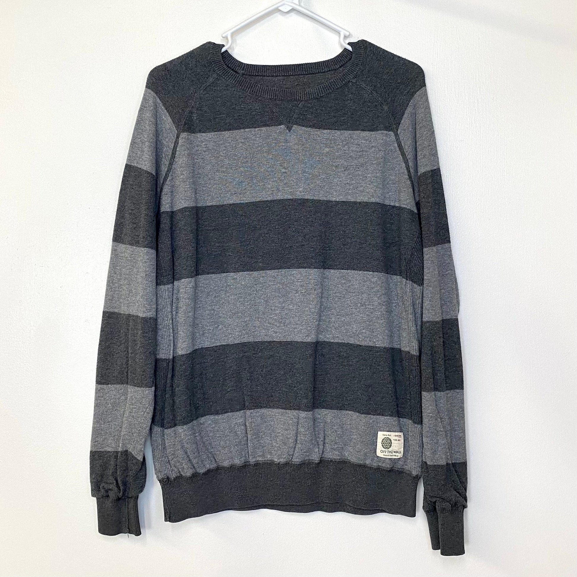 Vans Mens Size M Reversible Gray Striped Sweater L/s Pre-Owned