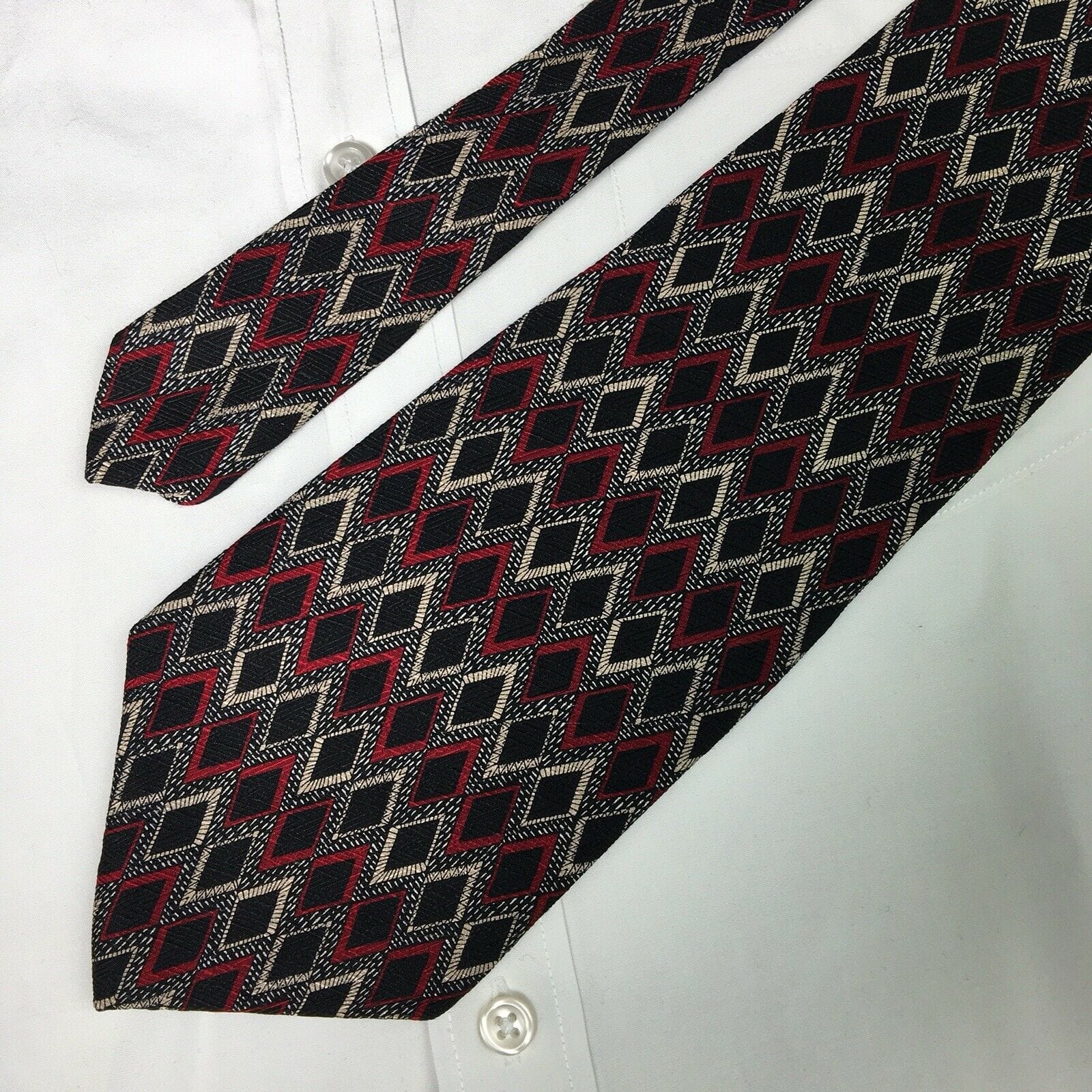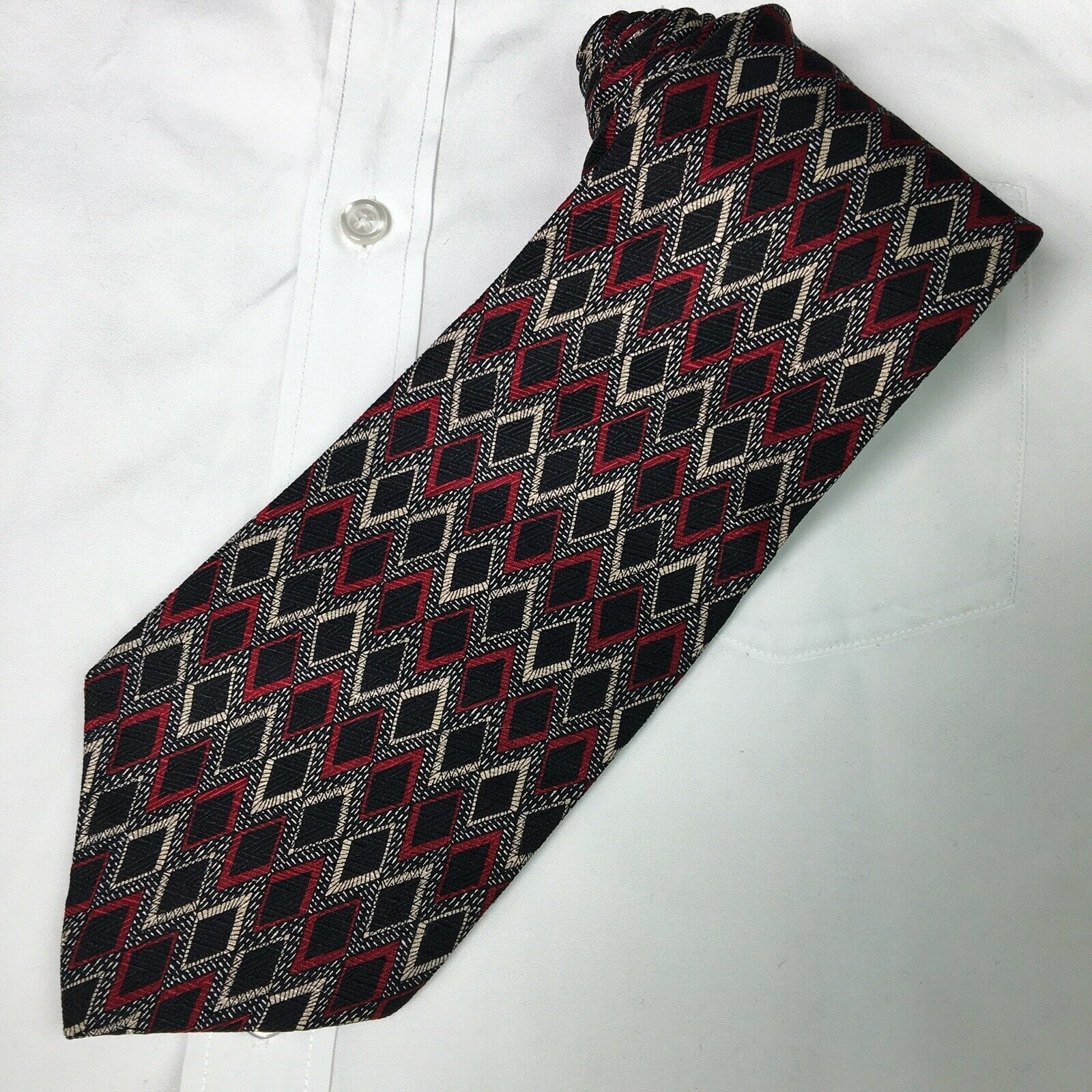 Venanzi Mens Black W/ Red & Tan Diamond Pattern Print 100% Silk Neck Tie